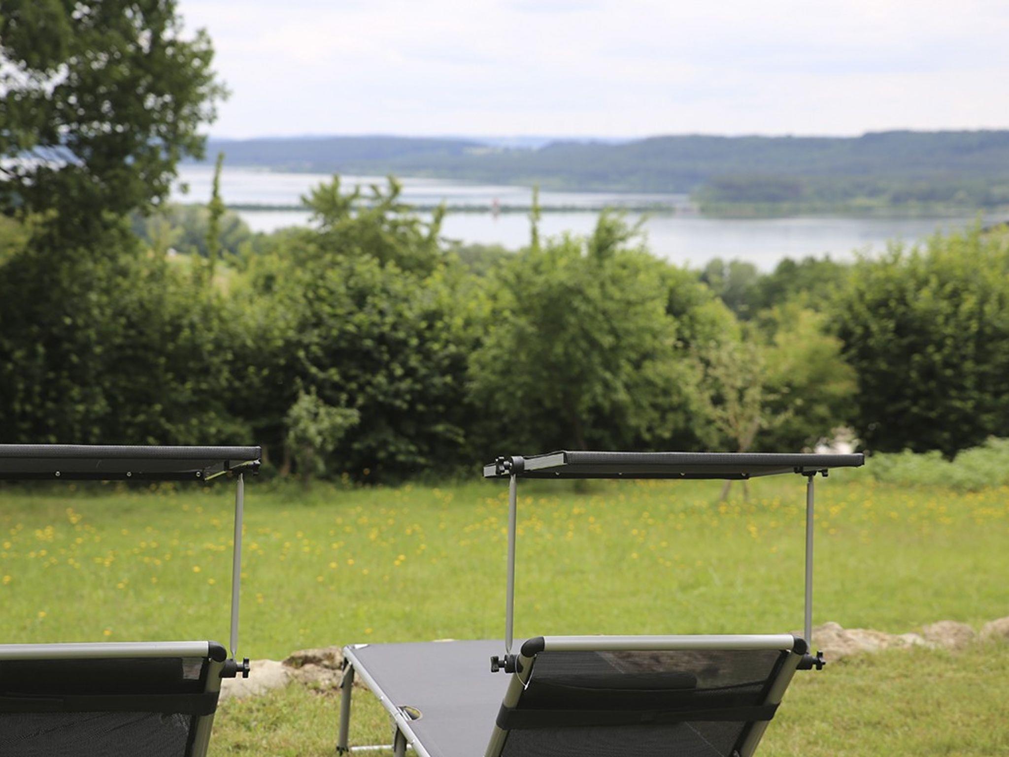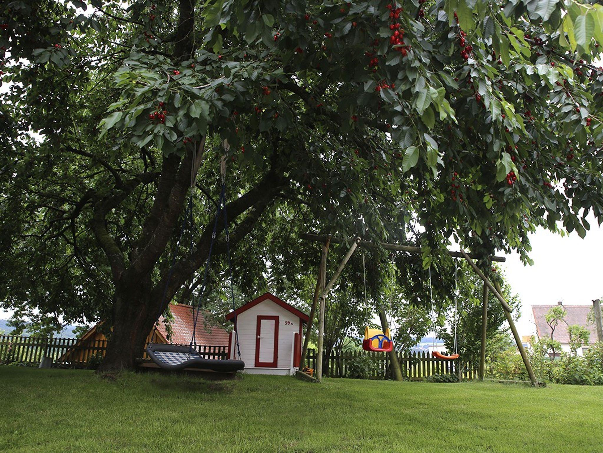 Unsere großzügige Wiese mit Blick über beide Seen lädt zum Toben für große und kleine Kinder ein. Im abgeschlossenen Hofraum befinden sich Sitzmöglichkeiten, Rutsche, Sandkiste, Spielhaus, Gartentrampolin etc.