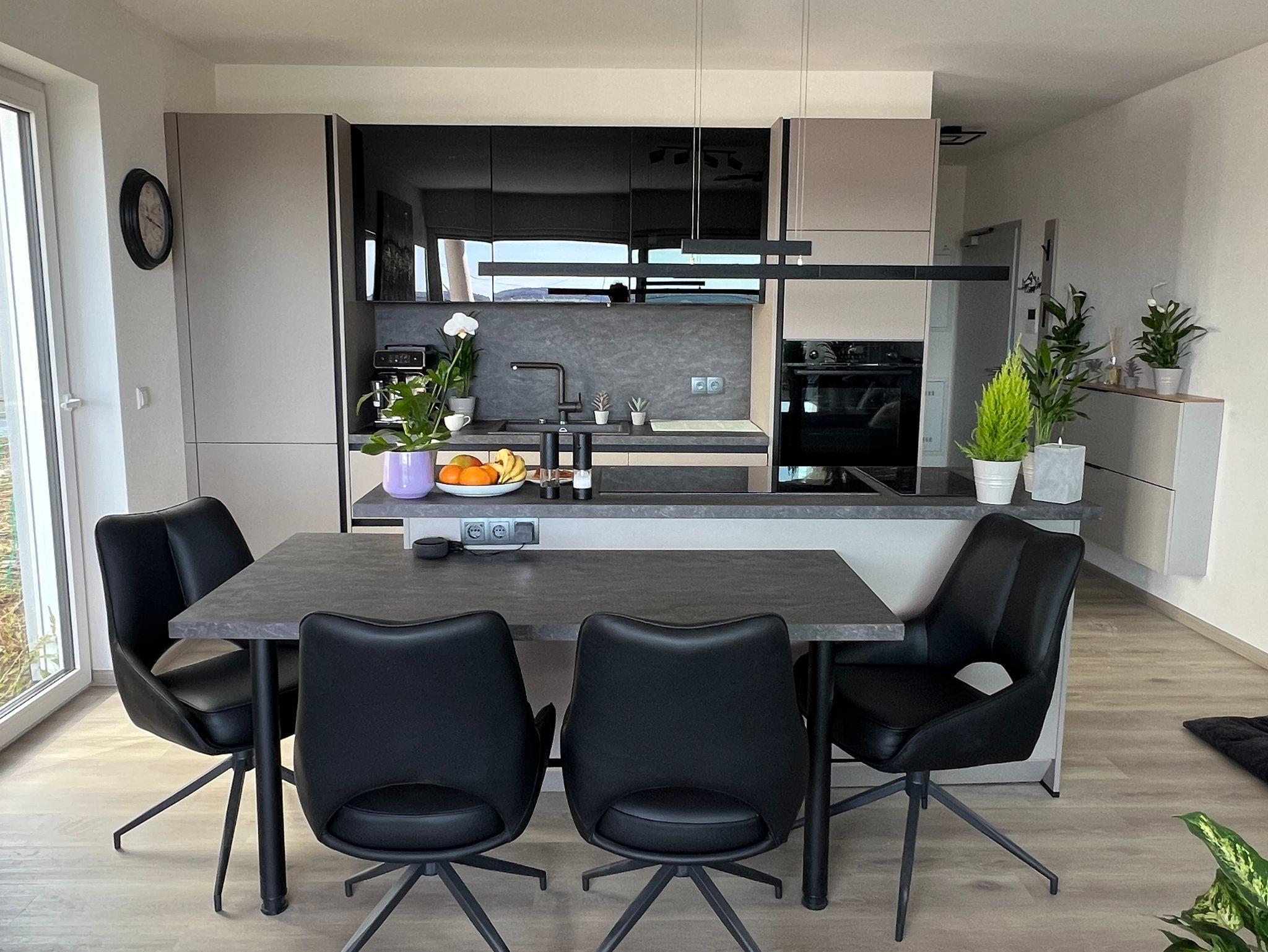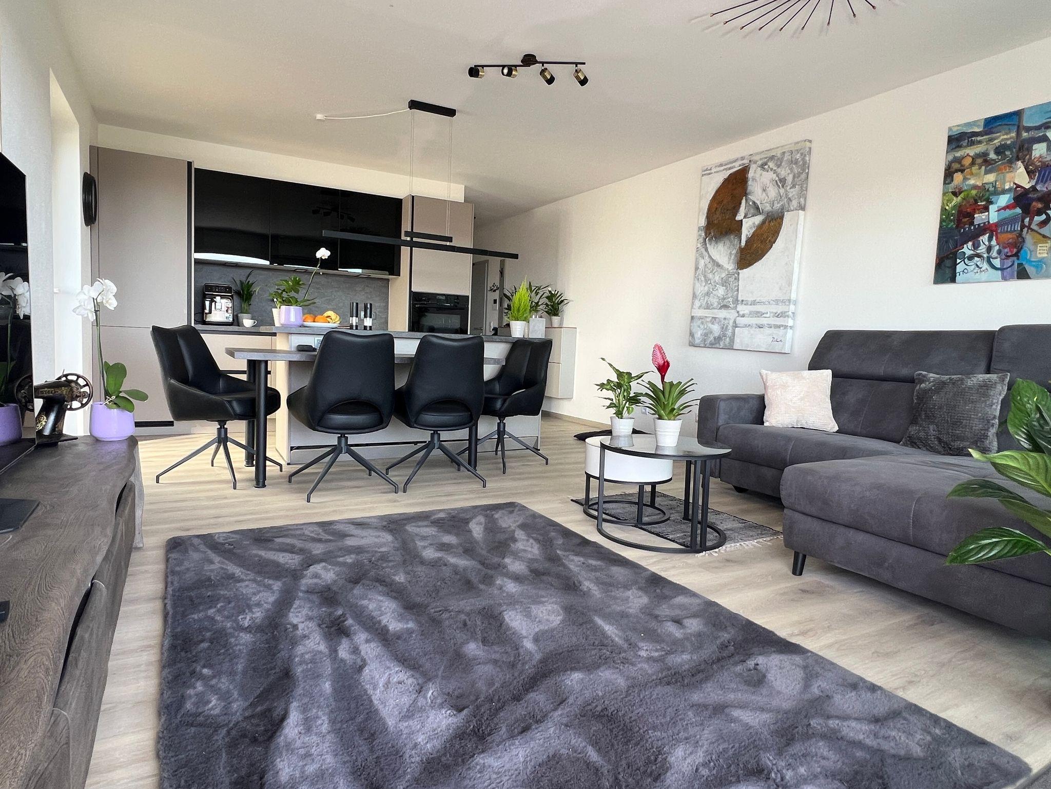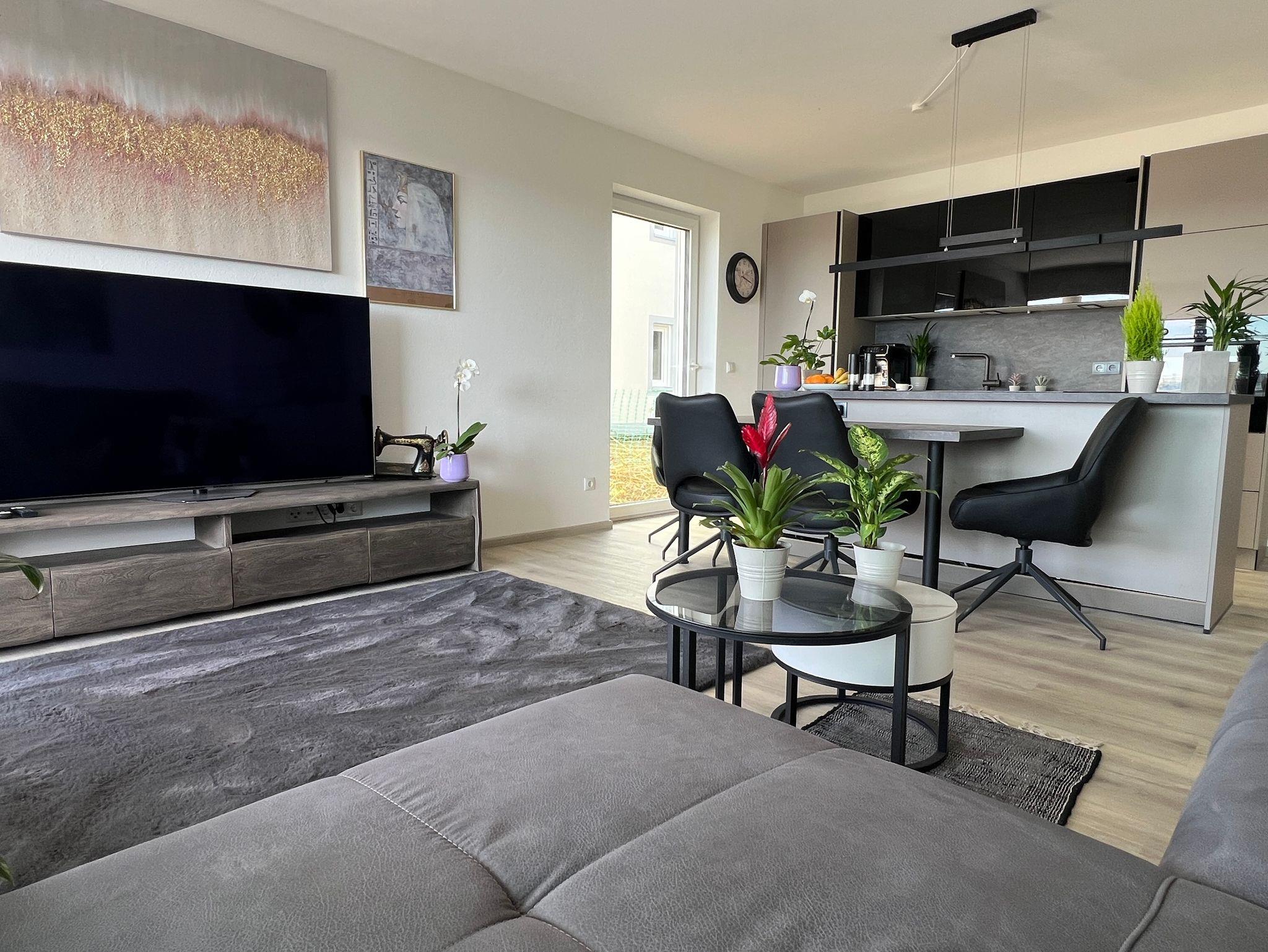 Die moderne Ferienwohnung bietet 65?m² Wohnfläche mit einem offen gestalteten Schlafzimmer sowie einer großzügigen Wohnküche – perfekt für entspannte Tage in stilvollem Ambiente. Eine überdachte Terrasse lädt zum Verweilen im Freien ein, zusätzlich steht Ihnen ein Gartenanteil zur alleinigen Nutzung zur Verfügung (bitte beachten Sie: dieser wird zu Beginn der Vermietung noch nicht vollständig fertiggestellt sein). Die Wohnung befindet sich in einem hochwertigen neuen Wohnhaus mit Tiefgarage, ein Stellplatz ist inklusive. Ein Aufzug bringt Sie barrierefrei direkt ins Erdgeschoss. Auch Ihre Haustiere sind bei uns herzlich willkommen. Die Wohnung verfügt über eine moderne Fußbodenheizung. Die Küche ist mit Kaffeevollautomat (Kaffee, Tee, Cappuccino, Espresso etc.), Wasserkocher und Toaster komplett ausgestattet. Außerdem stehen Softgetränke zu Verfügung. Im Badezimmer steht ein Waschtrockner für Ihre Wäsche bereit. Ein Tresor sowie ein Erste-Hilfe-Kasten sind ebenso in der Wohnung. Eine E-Ladesäule befindet sich in der Tiefgarage (kostenpflichtig) mit einer Steckdose für die Ladung von E-Bikes. W-Lan ist kostenlos. Die Alexa freut sich Ihnen Ihren Lieblingssender abzuspielen.
