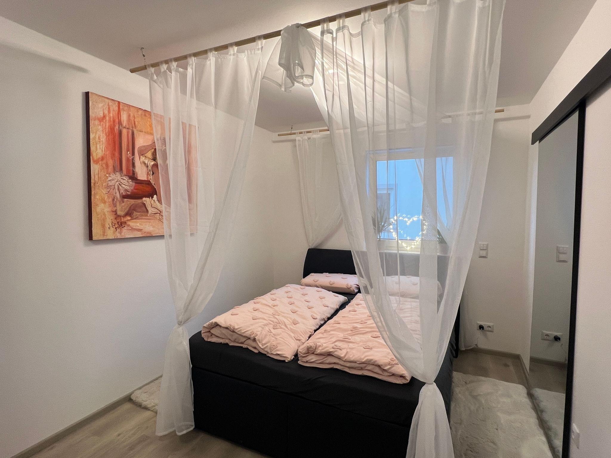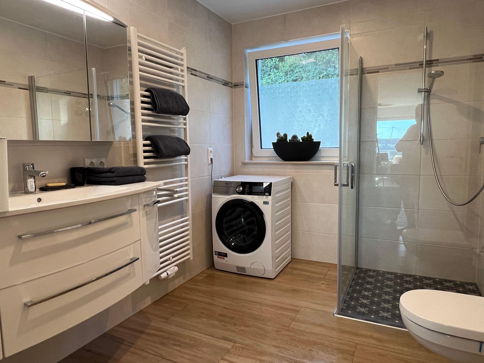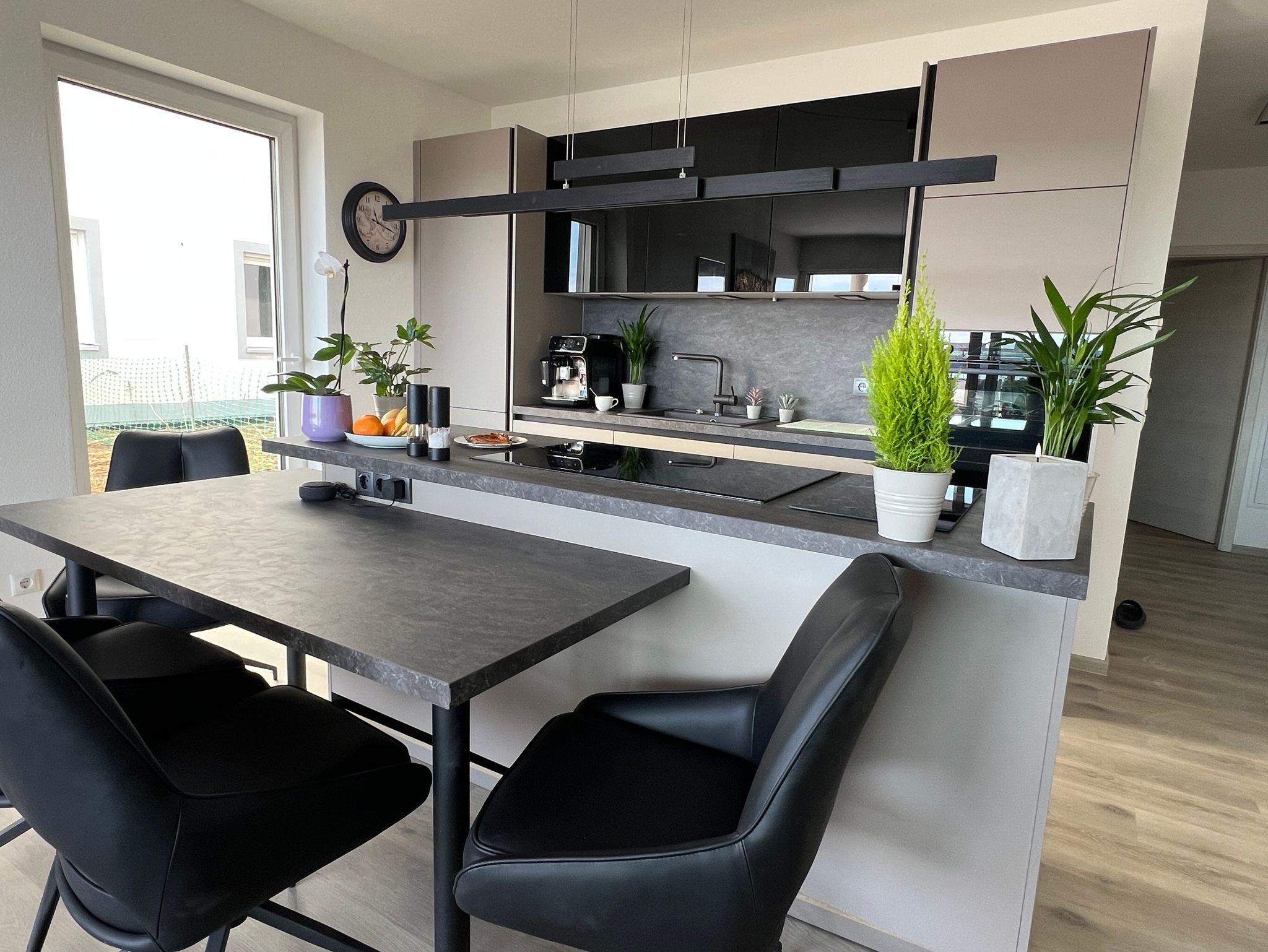 Die moderne Ferienwohnung bietet 65?m² Wohnfläche mit einem offen gestalteten Schlafzimmer sowie einer großzügigen Wohnküche – perfekt für entspannte Tage in stilvollem Ambiente. Eine überdachte Terrasse lädt zum Verweilen im Freien ein, zusätzlich steht Ihnen ein Gartenanteil zur alleinigen Nutzung zur Verfügung (bitte beachten Sie: dieser wird zu Beginn der Vermietung noch nicht vollständig fertiggestellt sein). Die Wohnung befindet sich in einem hochwertigen neuen Wohnhaus mit Tiefgarage, ein Stellplatz ist inklusive. Ein Aufzug bringt Sie barrierefrei direkt ins Erdgeschoss. Auch Ihre Haustiere sind bei uns herzlich willkommen. Die Wohnung verfügt über eine moderne Fußbodenheizung. Die Küche ist mit Kaffeevollautomat (Kaffee, Tee, Cappuccino, Espresso etc.), Wasserkocher und Toaster komplett ausgestattet. Außerdem stehen Softgetränke zu Verfügung. Im Badezimmer steht ein Waschtrockner für Ihre Wäsche bereit. Ein Tresor sowie ein Erste-Hilfe-Kasten sind ebenso in der Wohnung. Eine E-Ladesäule befindet sich in der Tiefgarage (kostenpflichtig) mit einer Steckdose für die Ladung von E-Bikes. W-Lan ist kostenlos. Die Alexa freut sich Ihnen Ihren Lieblingssender abzuspielen.