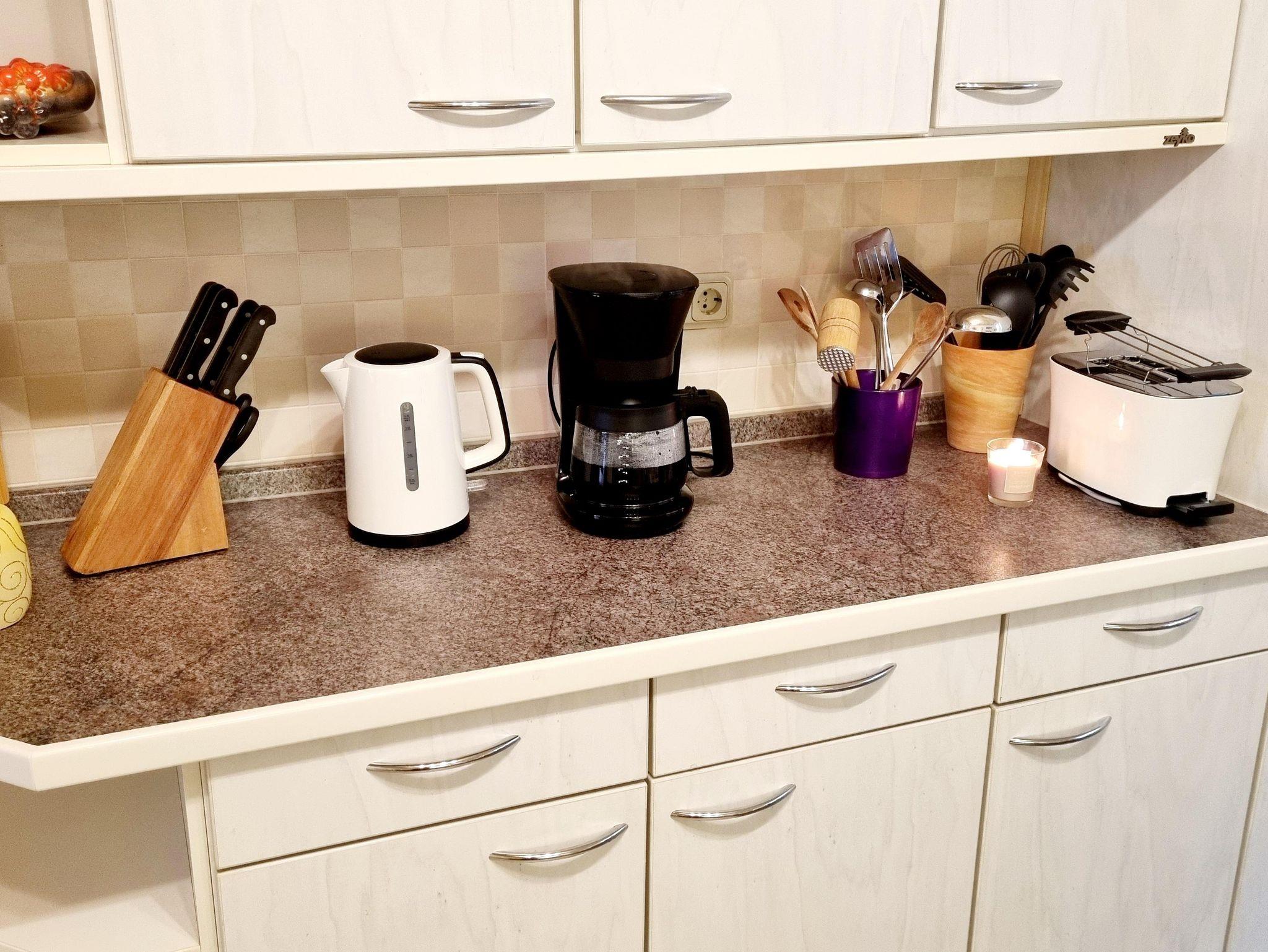 • Grundausstattung mit Essig, Öl, Salz und Pfeffer sowie Kaffee und Tee für die Ankunft
