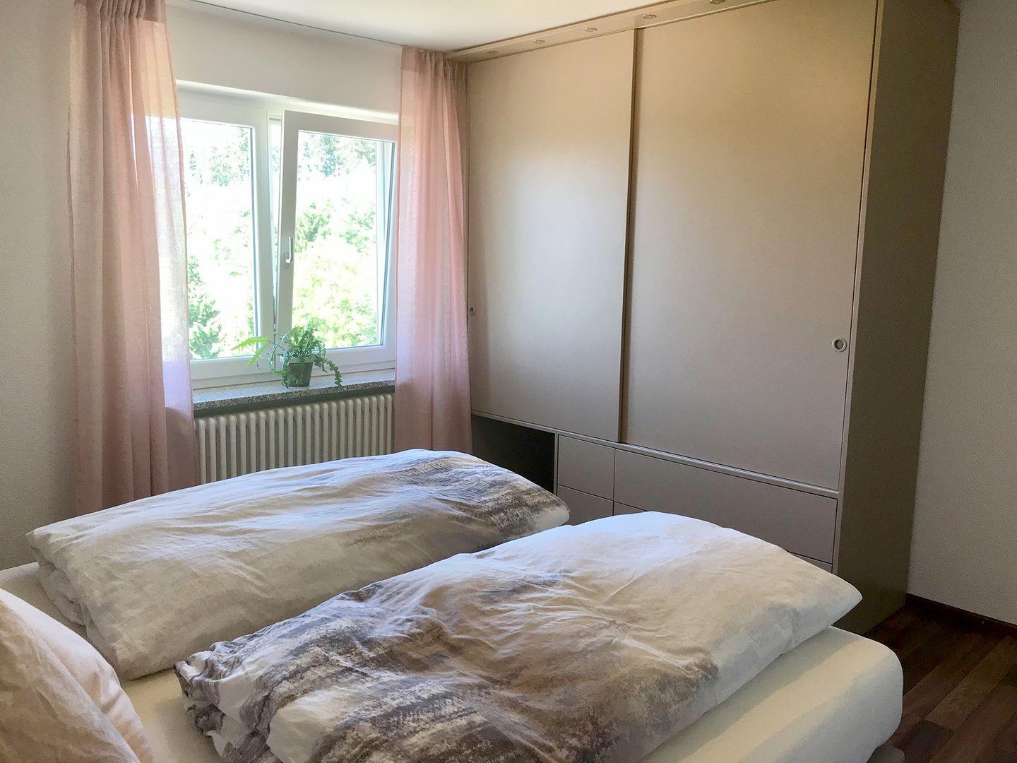 Die familienfreundliche Wohnung ist ideal für Paare oder Familien. Sie verfügt über einen großen Wohnbereich mit Esstisch, Schlafcouch und Fernseher. Die voll ausgestattete Küche umfasst Spülmaschine, Cerankochfeld, Backofen, Kaffeemaschine, Wasserkocher, Toaster und reichlich Geschirr. Das Schlafzimmer bietet ein komfortables Doppelbett (1,80 m x 2 m) und einen geräumigen Kleiderschrank.