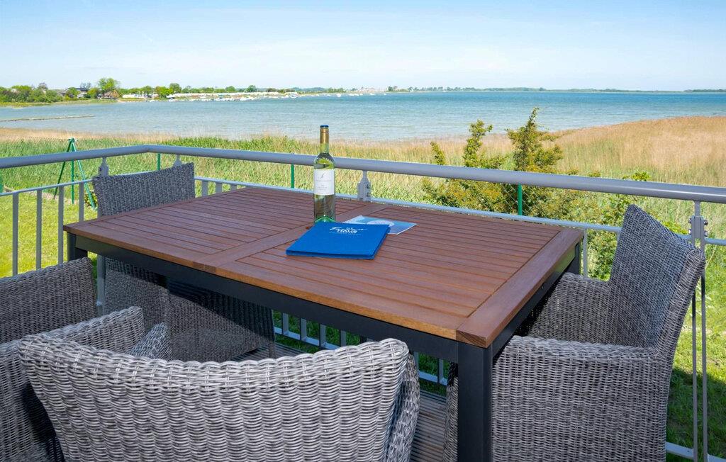 Vand overalt, hvor I ser. Feriehuset Achtern Schilf ligger direkte på den idylliske bredde af Slien i ferieområdet Olpenitz med fri udsigt over østersøfjorden Slien. Ud over den direkte vandbeliggenhed imponerer denne ferieejendom med sin højkvalitets indretning og smagfulde indretning. Tre terrasser, en romantisk pejs og den private wellness-oase med sauna og spabad gør jeres ferie perfekt og sikrer komfort i hver sæson. Den åbne stue/spisestue i stueetagen imponerer med gulv-til-loft vinduer, hvorigennem man kan se Sleiufers siv svaje i vinden og udstrækningen af Slien, som giver et betagende panorama direkte foran vindue. Siddeområde, pejs og et stort spisebord sikrer komfort og hygge. Direkte ved siden af stuen er terrassen med panoramaudsigt over Sleien. Uanset om det er en hyggelig grillaften med Weber Grill eller med vin og en bog, gør den umiddelbare nærhed til vandet jeres ferie uforglemmelig. Et Bose Sound Touch musiksystem og en Play Station 5 sørger for underholdning Det højkvalitets og fuldt udstyrede køkken lader intet tilbage at ønske og tilbyder alt hvad angår madlavningskomfort, en feriegæst kan ønske sig. Den eksisterende Sodastream tilbyder jer frisk mousserende vand til enhver tid. På øverste etage gør master bedroom drømme til virkelighed, da gæster kan vågne op og falde i søvn her med en betagende udsigt over Sleien. Om morgenen byder Sliens bredder på et sandt naturligt skue: Når ænderne og svanerne vågner, kan I starte dagen på terrassen ved siden af soveværelset. Et andet soveværelse byder på plads til to voksne med to enkeltsenge, mens en komfortabel lænestolsseng med et liggeareal på 92 x 196 cm tilbyder endnu et sted at sove for et barn. Der er også et andet fladskærms-tv med hjemmeunderholdningsprogram i dette soveværelse. Også på første sal er hovedbadeværelset med et personligt program: boblebad, sauna med udsigt til vandet og bruser gør dette badeværelse til et privat område. Et gæstetoilet i stueetagen giver ekstra komfort. Højdepunktet i feriehuset Achtern Schilf er den store tagterrasse, som byder på panoramaudsigt over vandet over Sleien og havnen i feriestedet Østersøen. Vores yndlingssted: At se sivene blæse i vinden og den blide drivende moskus om morgenen. Feriehuset Achtern Schilf er den ene halvdel af et hus. Der er parkeringsplads og cykelskur lige foran huset. I kan finde lademuligheder for el-cykler på terrassen. Bemærk venligst: OstseeResort Olpenitz er meget populært, og der bygges fortsat i parken. Ikke desto mindre kan I se frem til en 5-stjernet standard og et førsteklasses ophold. Byggeaktiviteterne kommer ikke til at forstyrre jer på ferien, og derfor gives der ikke yderligere afslag i prisen.