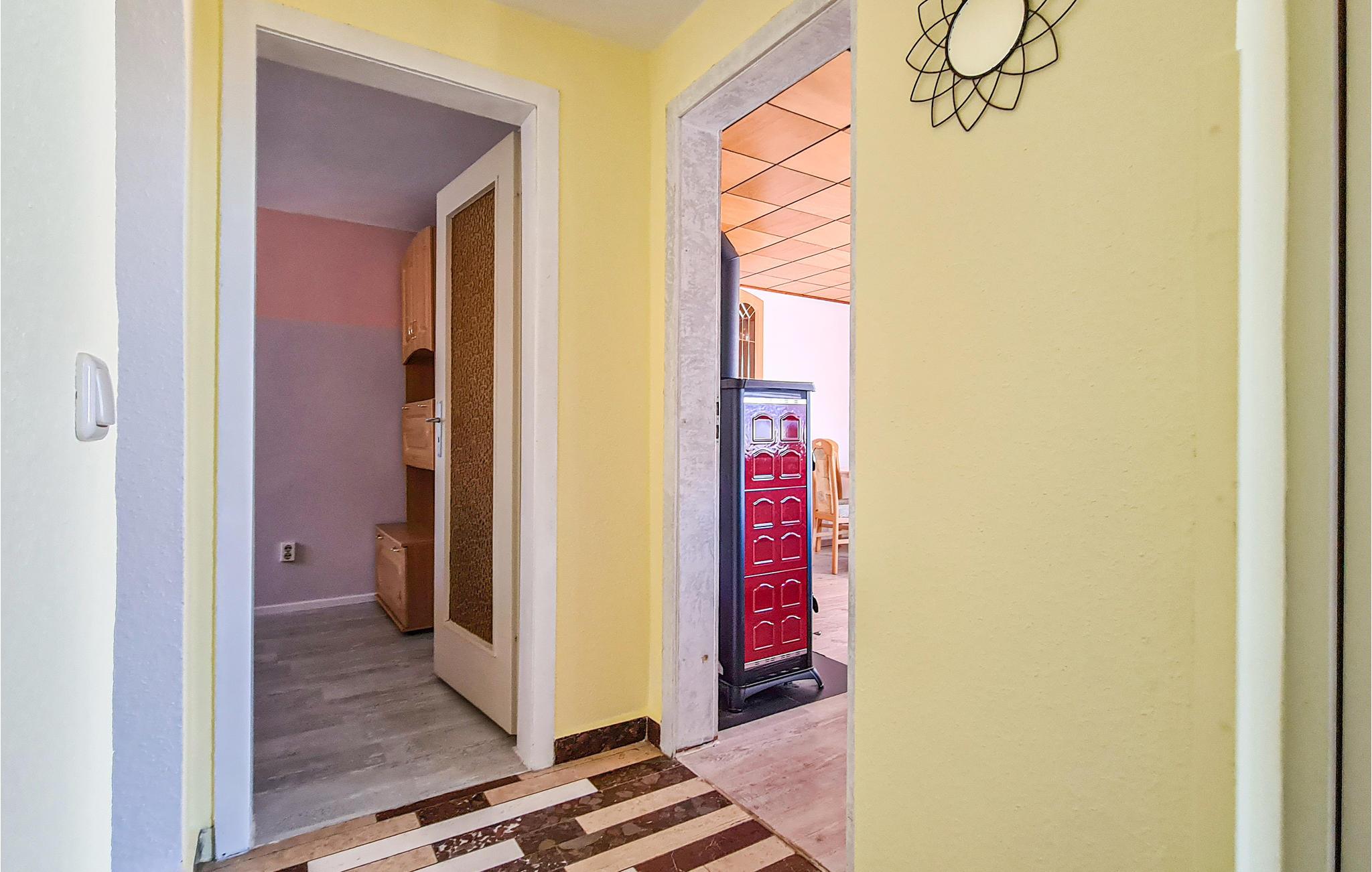 Træd ud på den delvist overdækkede terrasse, og lad blikket glide ud over de omgivende enge og marker. Slap af i havemøblerne, og nyd en lækker middag under åben himmel. Udeområdet byder på en skøn udsigt ud over Erzgebirge.