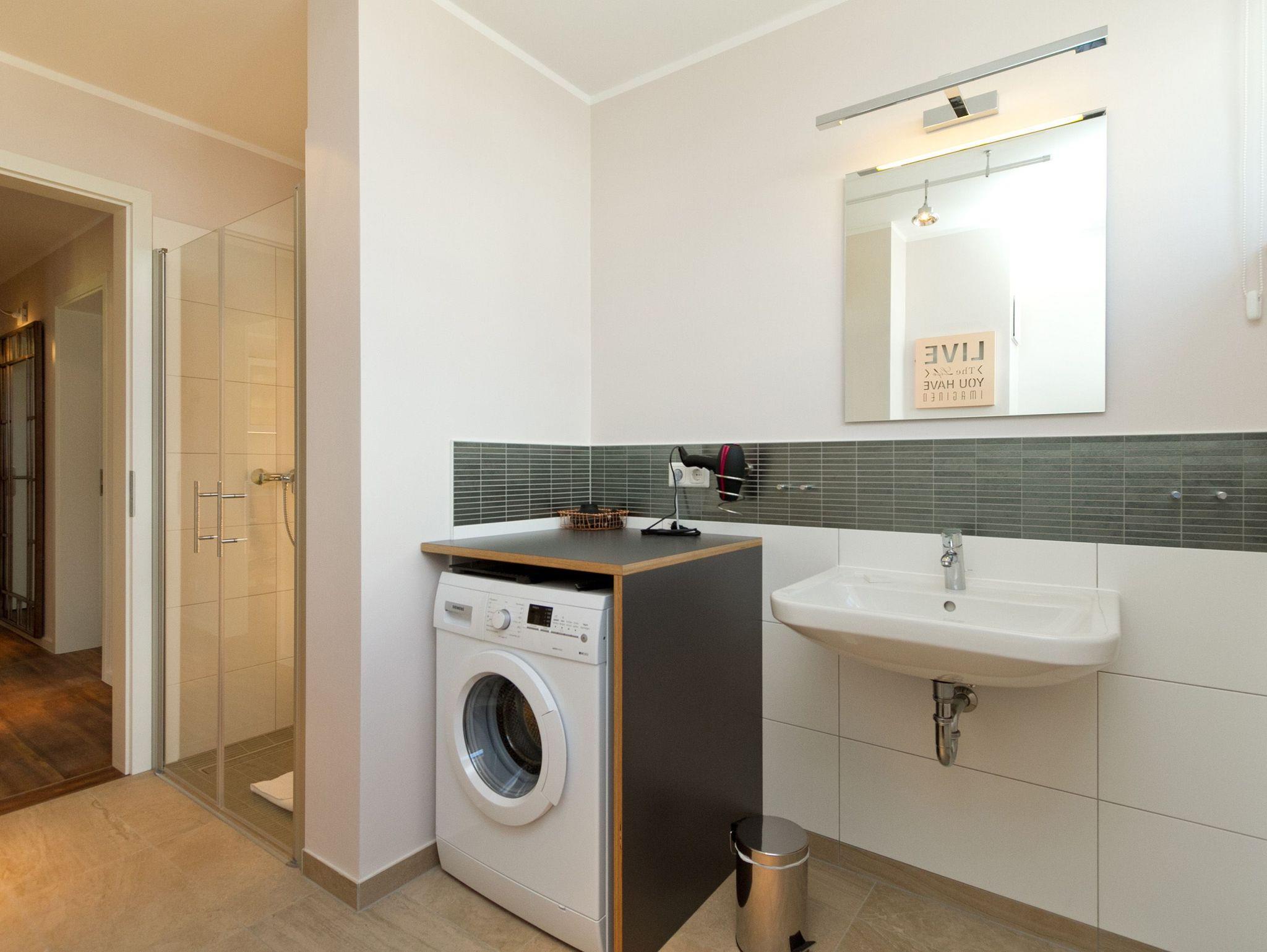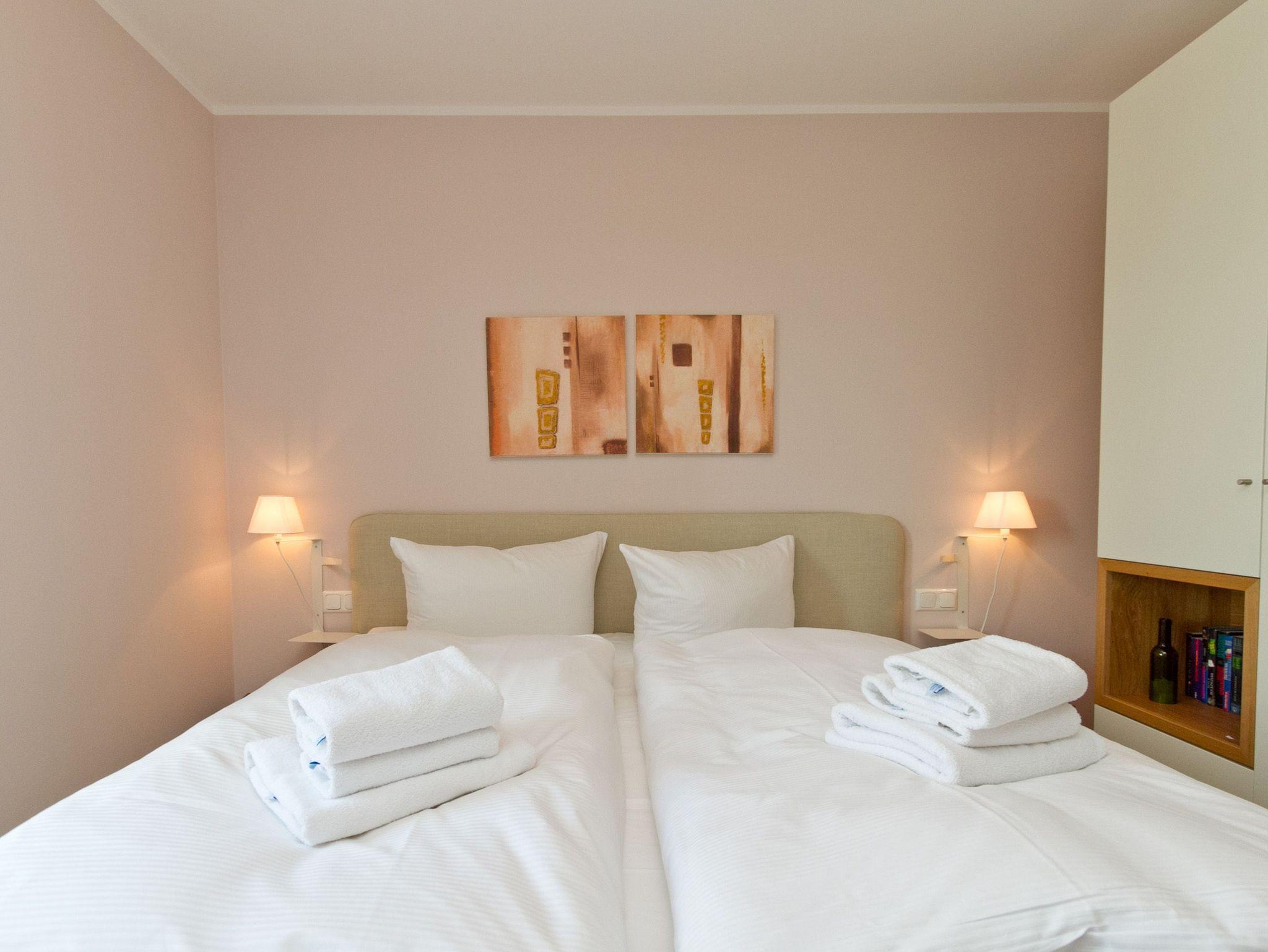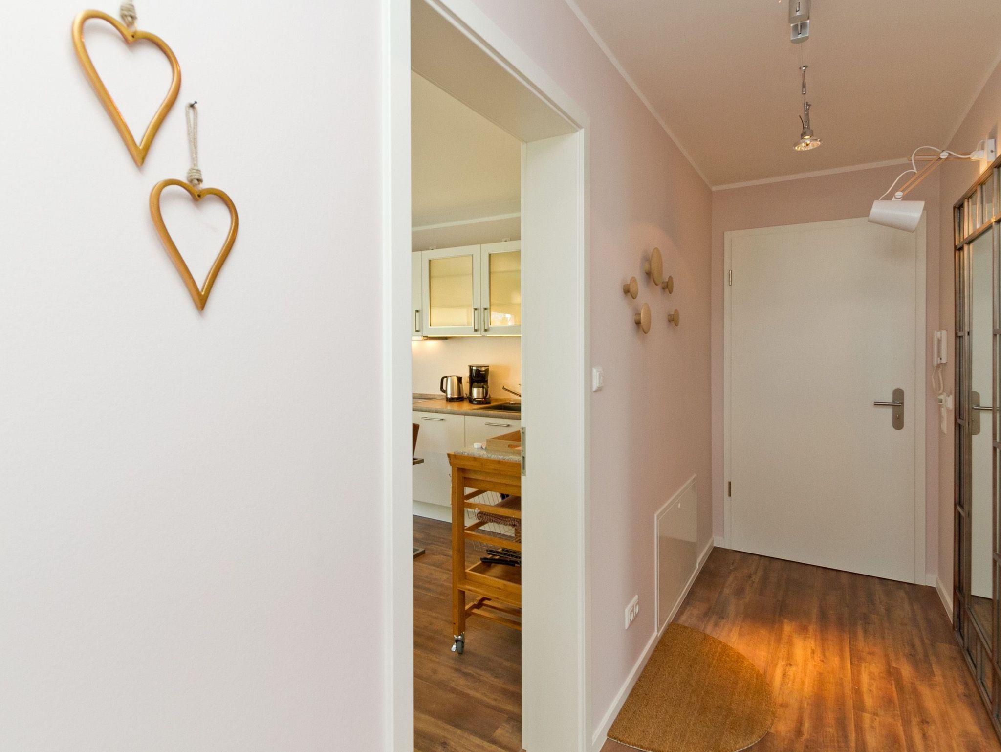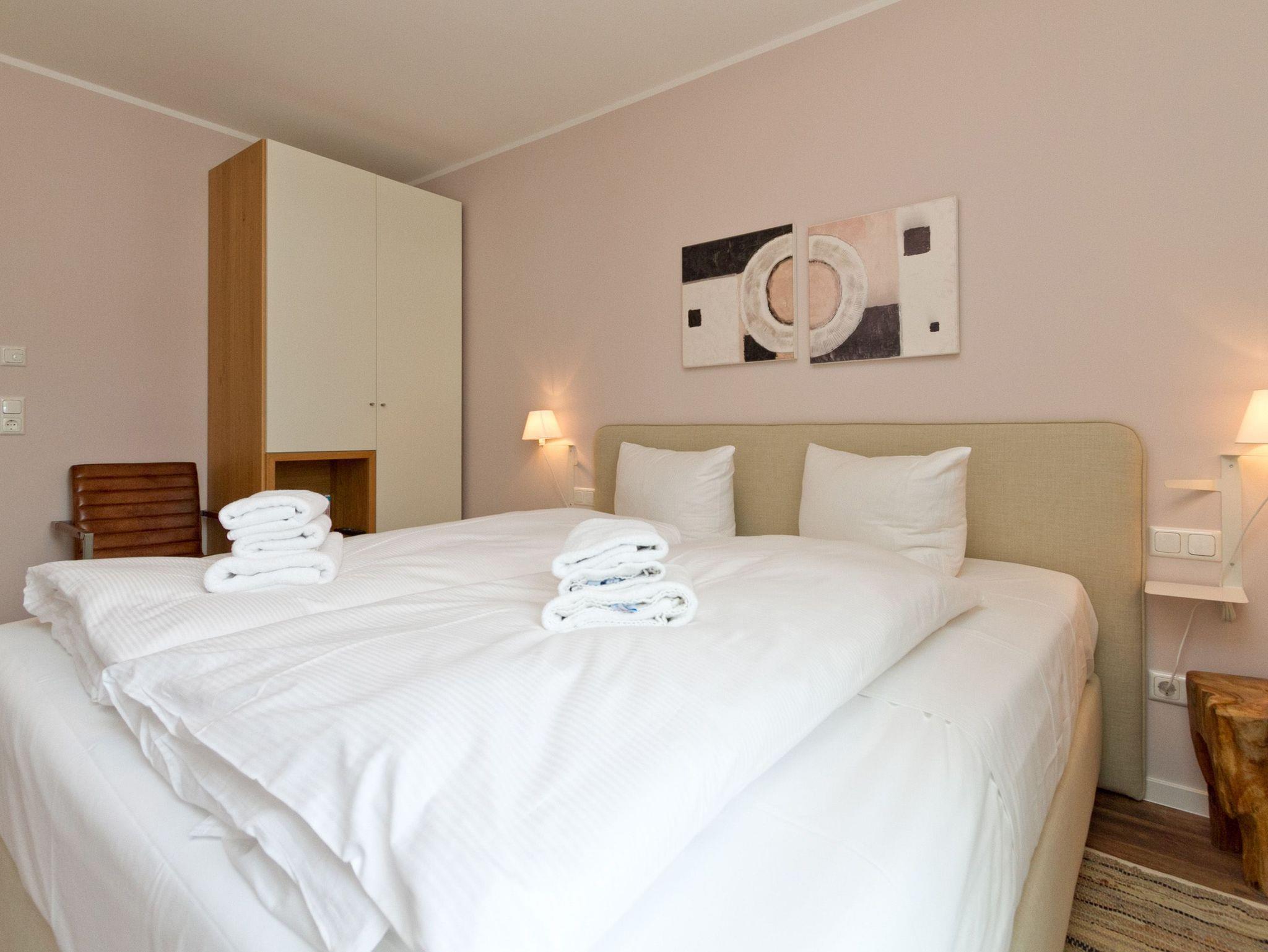 Ein modernes und stylisches Ambiente empfängt die Urlausfreudigen in diesem wunderschönen Appartement Nummer 04 im ersten Obergeschoss. Nordisch nobles Design kombiniert mit Industrial Chic in hellen Pastell- und Braun-Tönen durchzieht die 64 Quadratmeter. Auffallend ist der große und einladende Essbereich mit dem schweren Echtholztisch und den 1960er Retro-Freischwingern aus Echtleder. Hier lässt es sich wunderbar zusammensitzen und gemeinsam essen. Die offene Küche ist dafür mit allen nötigen Geräten und Geschirr ausgestattet. Offen zum Wohnbereich schaut man von der Küche aus auf eine gemütliche Sofalandschaft mit großem Kuschelsessel und einem urigen Kaminofen. Die bodentiefen Fenster lassen viel Licht ein. Durch sie können Sie auf den großzügigen Süd-Ost-Balkon hinaustreten. Hier scheint schon morgens beim Frühstück die Sonne. Und bei günstigem Wind können Sie sogar die Ostsee rauschen hören. So lässt es sich doch Urlauben. Die beiden Schlafzimmer bieten ebenfalls viel Komfort. Die Boxspringdoppelbetten (1,80 m x 2,00 m) sind wunderbar bequem und für erholsame Urlaubsträume bestens geeignet. In allen drei Räumen, in denen bis zu 4 Personen und ein Kleinkind bis 3 Jahre (im Kinderreisebett) wohnen können, gibt es Flat-TVs. Das Tageslichtbad verfügt über eine Dusche und über eine Waschmaschine. Entspannen Sie vom ersten Augenblick an. Denn die Betten sind bei Ihrer Anreise bereits bezogen und Handtücher liegen für Sie bereit. Ein fester Stellplatz vor dem Haus ist für Sie reserviert. Hier gibt es auch die Möglichkeit, ein E-Auto an der Ladestation kostenpflichtig aufzuladen.