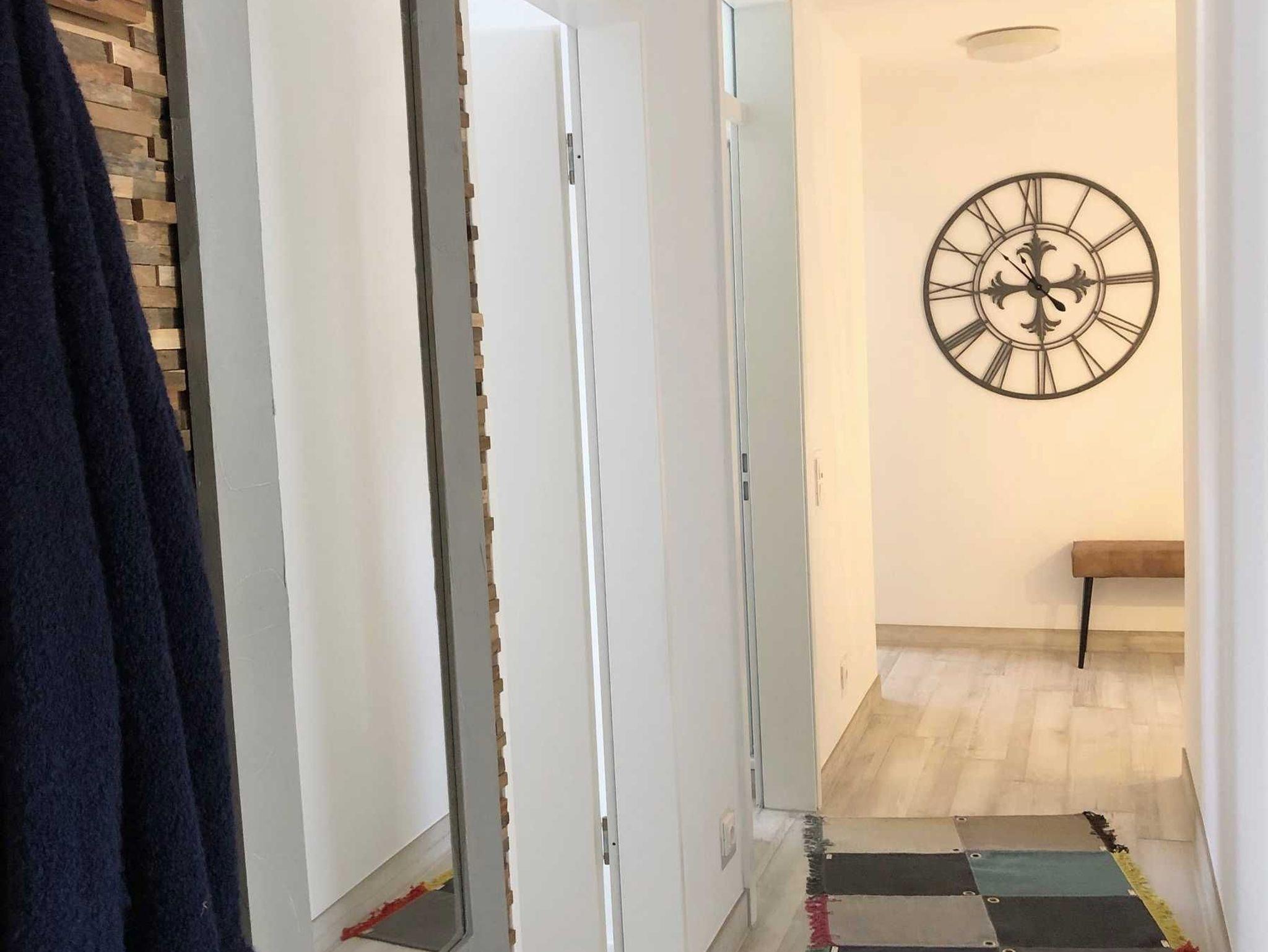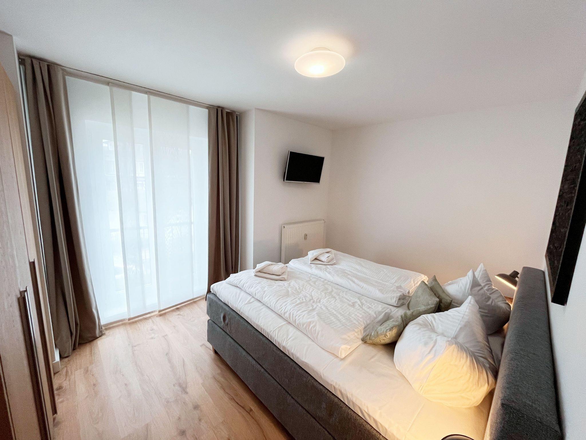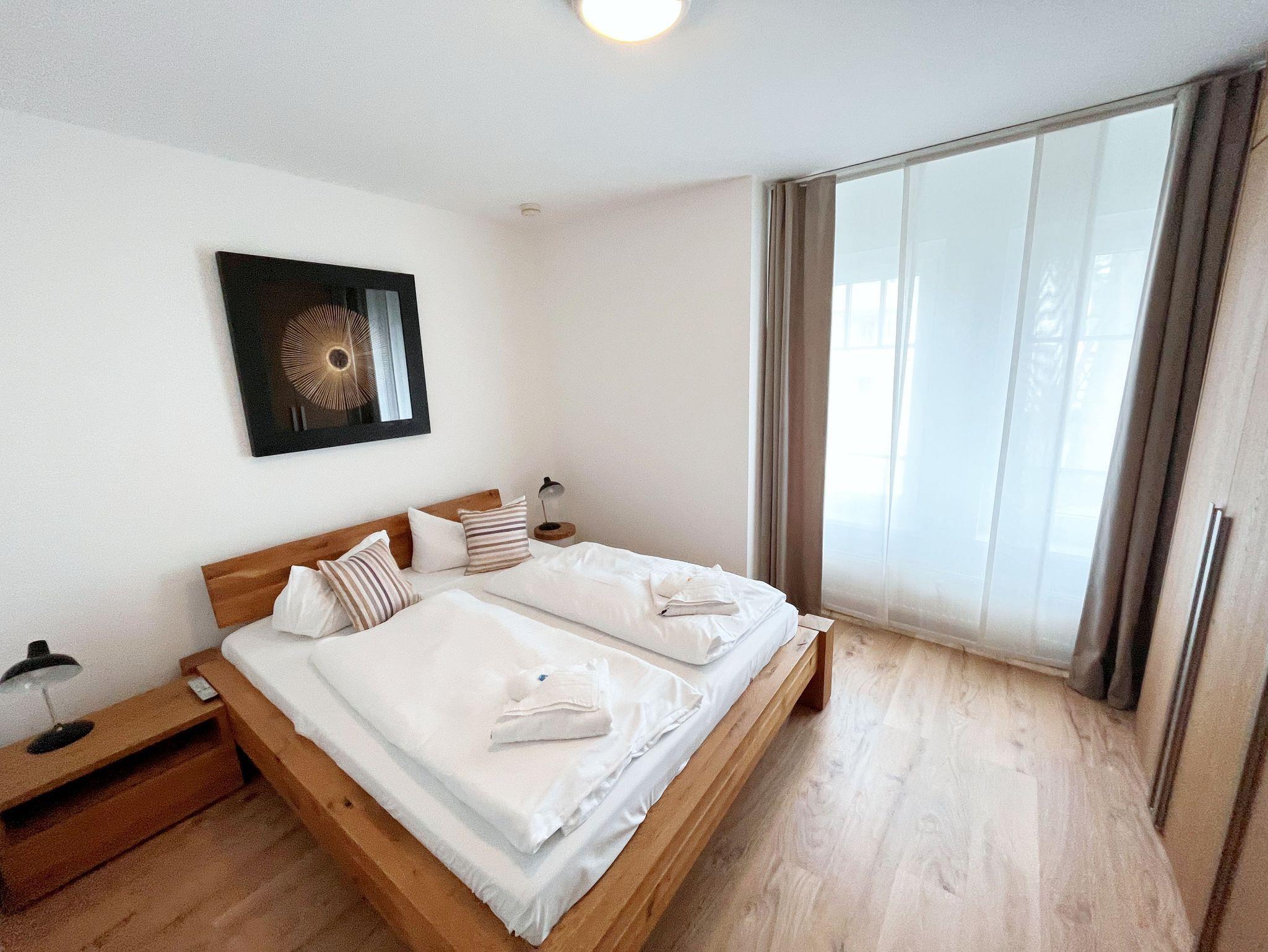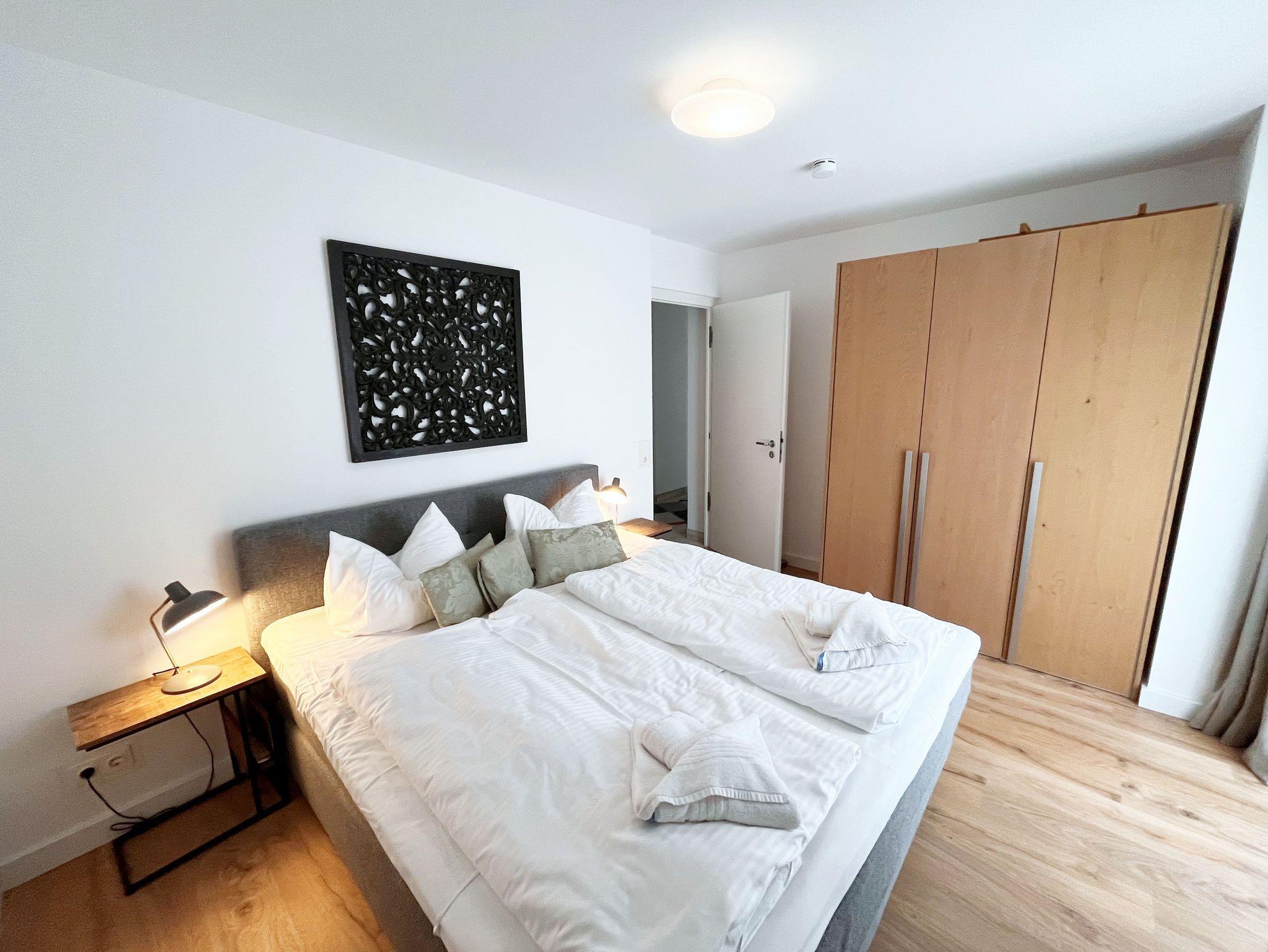 Diese 66 qm große helle und freundliche 3 Raum-Ferienwohnung ist für max. 4 Erwachsene und 1 Kleinkind ausgestattet und ist weitestgehend barrierefrei. Das Wohnzimmer verfügt über eine gemütliche Couch, Sessel und einen Esstisch mit 4 Stühlen. Für die Unterhaltung sorgen ein Flachbild-TV und Stereo-Anlage (bluetoothfähig). Ein elektrischer Kamin (arbeitet mit Wasserdampf) verleiht dem Wohnraum neben dem neuen Lichtkonzept eine besondere Atmosphäre. Die vollständig ausgestattete moderne Küchenzeile mit Ceranherd, Backofen, Mikrowelle, Kühlschrank mit Gefrierfach und Spülmaschine lässt keine Wünsche offen. Im ersten Schlafzimmer befindet sich ein gemütliches französisches Doppelbett und Flachbild-TV, das zweite Schlafzimmer verfügt über ein Boxspringbett und ebenfalls einen Flachbild-TV. Das moderne Tageslicht-Bad ist mit Dusche/WC und Haarfön ausgestattet. Ein Balkon (Süd-Ost-Lage) lädt zum Sitzen und Verweilen ein. Hier können Sie bei schönem Wetter schon morgens Ihren Kaffee genießen oder den Abend bei einem Glas Wein ausklingen lassen. Gratis W-LAN steht Ihnen in der gesamten Wohnung zur Verfügung. Ein Kinderbett mit Wäsche sowie ein Hochstuhl können auf Anfrage gegen eine Gebühr von einmalig 50 € vom Verwalter zur Verfügung gestellt werden.