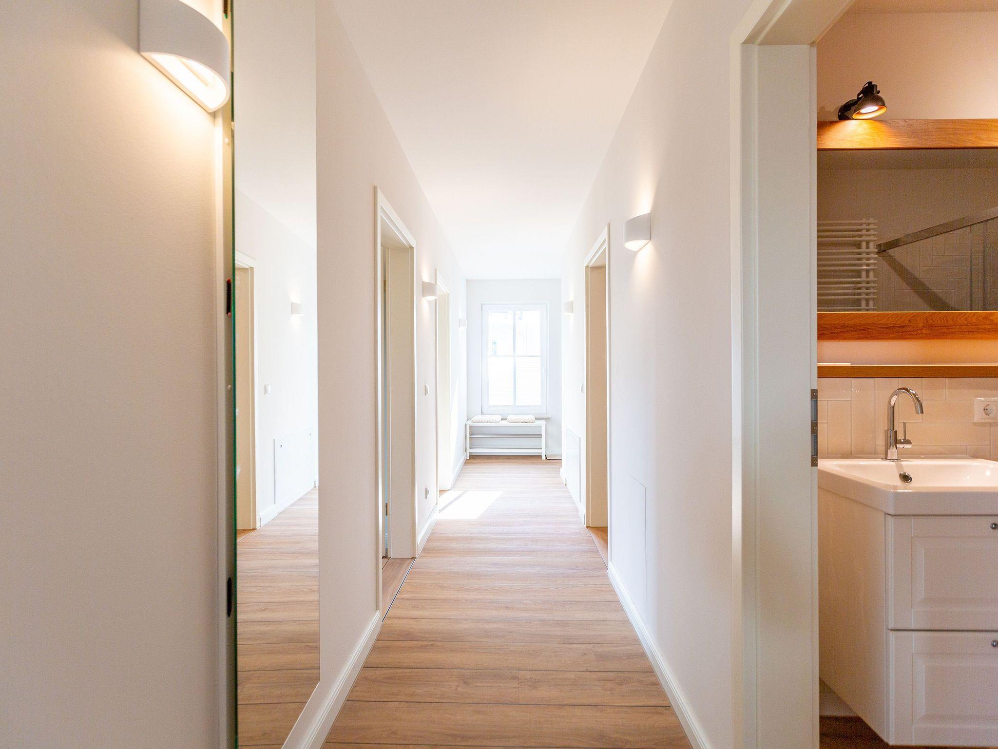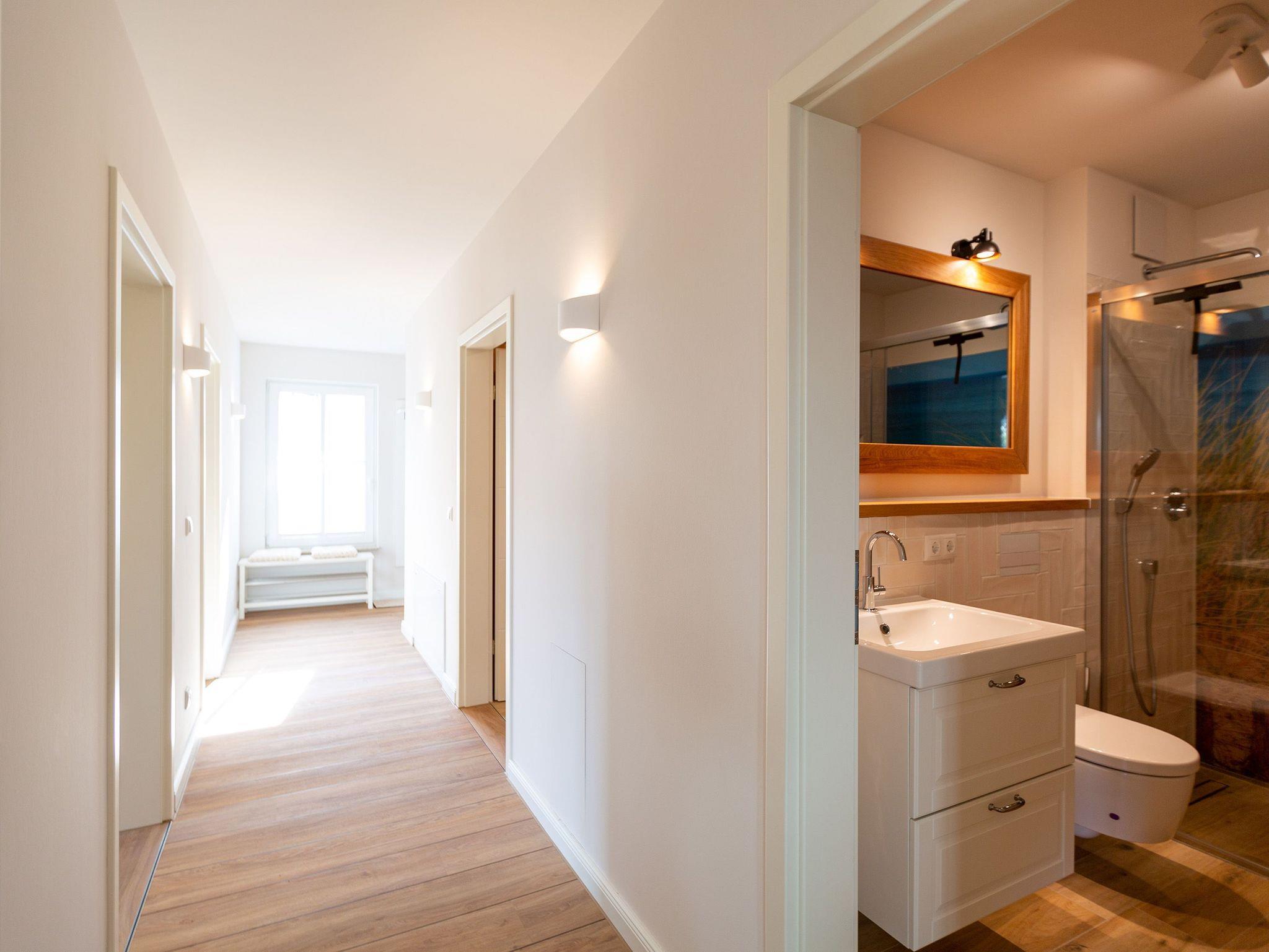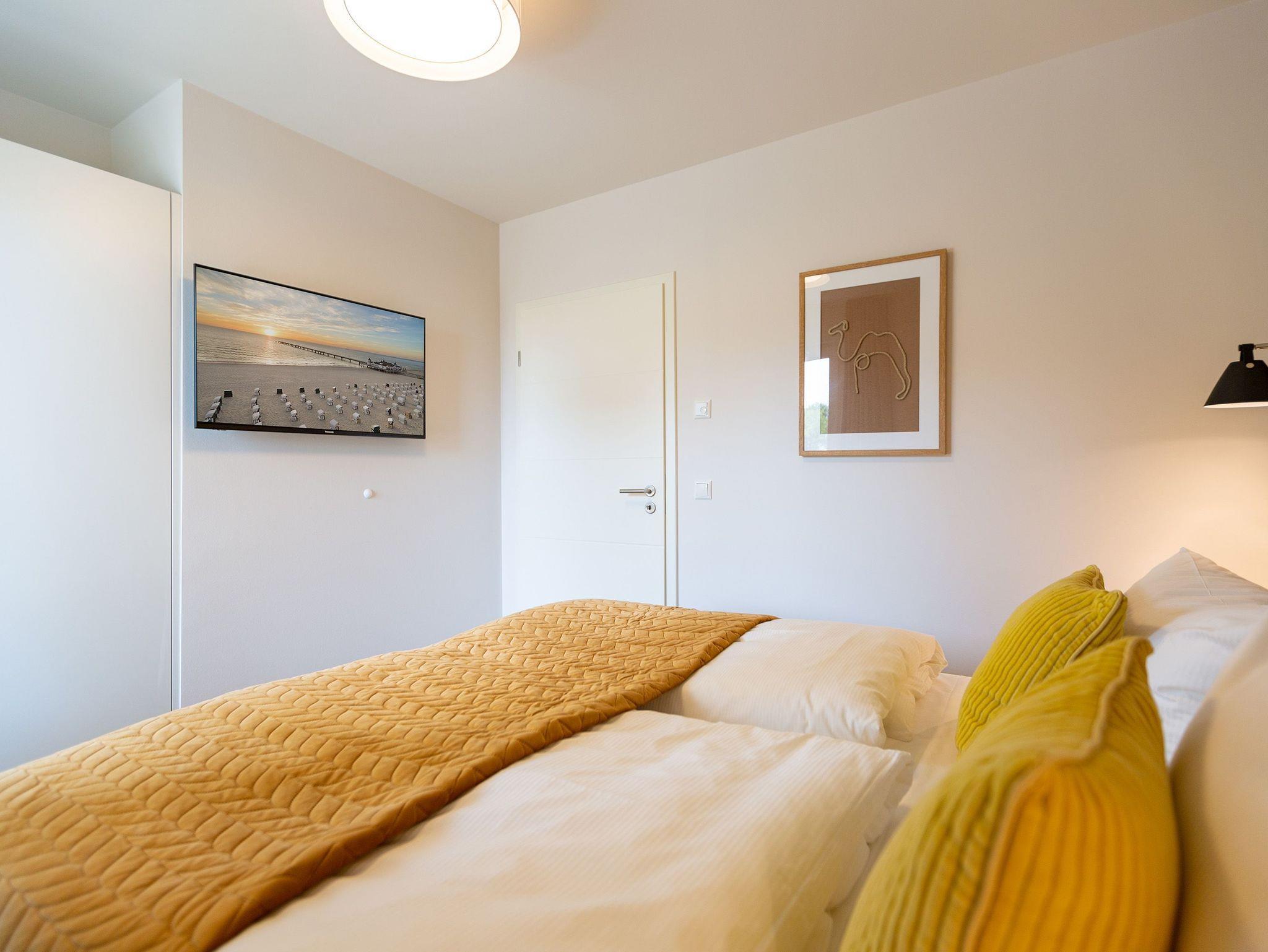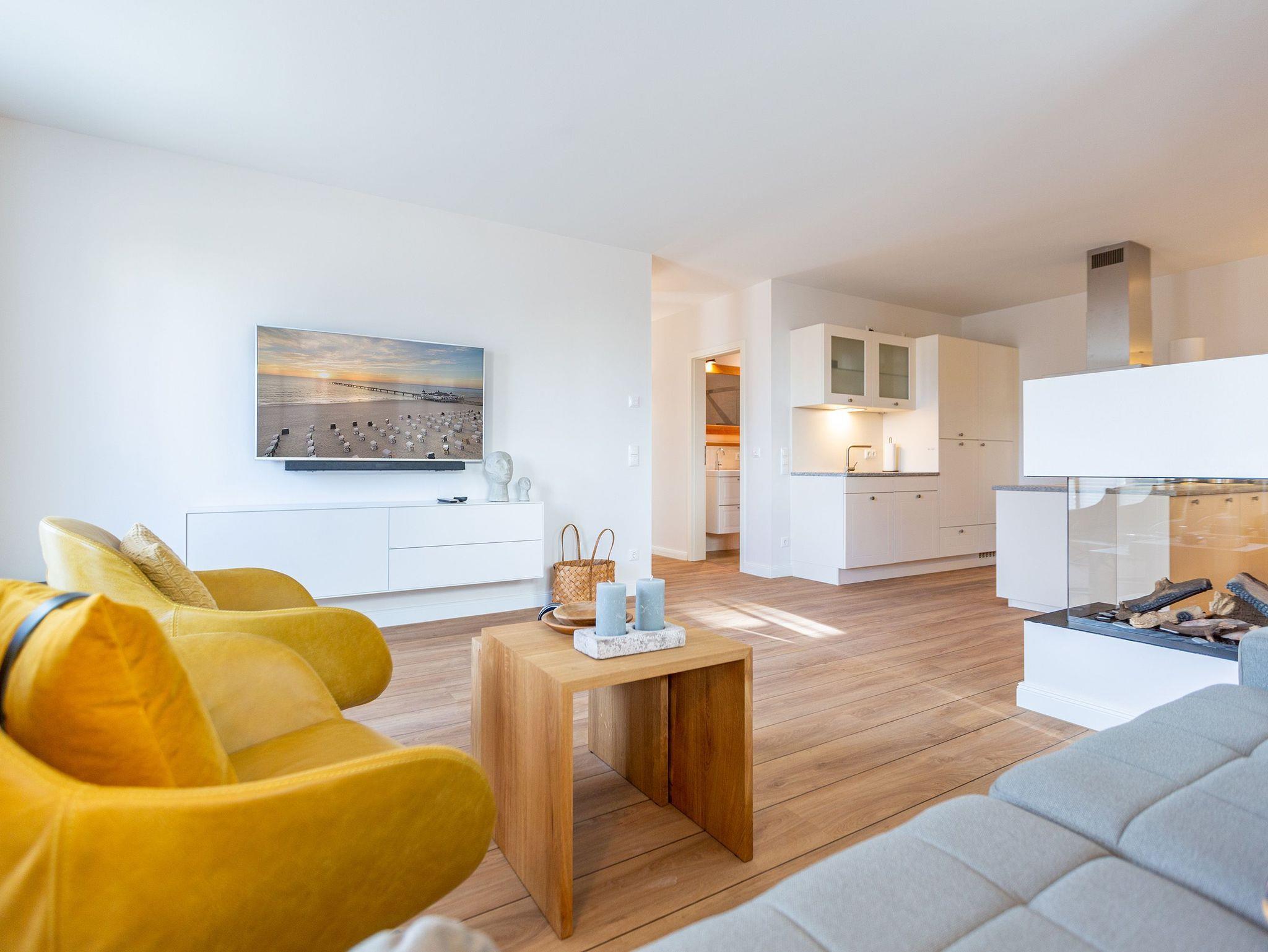 In diesen 2021 errichteten Häusern trifft Helligkeit auf Moderne und bietet Ihnen in seinen stilvoll eingerichteten Zwei- bis Drei-Zimmer Appartements Komfort auf höchster Ebene. Die offen gestalteten Wohn-Ess-Bereiche überzeugen durch ein stylisches Ambiente und ihr großzügiges Raumkonzept. Die teilweise mit Kochinseln ausgestatteten Küchen integrieren sich perfekt in den ebenso schlichten wie modernen Wohnraum. Alle Appartements verfügen über zwei Bäder oder ein Bad und ein zusätzliches Gäste-WC. Um Ihre Auszeit am Meer zusätzlich zu verschönern, wurden alle Appartements mit Gaskamin und Finnischer Sauna ausgestattet. Genießen Sie von den großzügigen Balkonen und Terrassen den Ausblick auf die parkähnliche Grünanlage oder verbringen Sie Ihren Abend auf dem frei zur Verfügung stehenden Grillplatz mit Sitzecke und Grill. Ein kostenloser PKW-Stellplatz in der Tiefgarage (Einfahrtshöhe 1,95m, Anfahrt über die Straße ?Kieferngrund? Höhe Hausnummer 17) gehört ebenso zum Komfort dieser Appartement-Häuser wie kostenfreies W-Lan. Für E-Autos steht am Objekt eine E-Ladesäule mit 2 Ladeplätzen (gesamt 22 kW) auf dem Grundstück kostenpflichtig zur Verfügung. Eine Waschmaschine und ein Trockner können Sie gegen Gebühr über die kostenlose App WeWash nutzen.