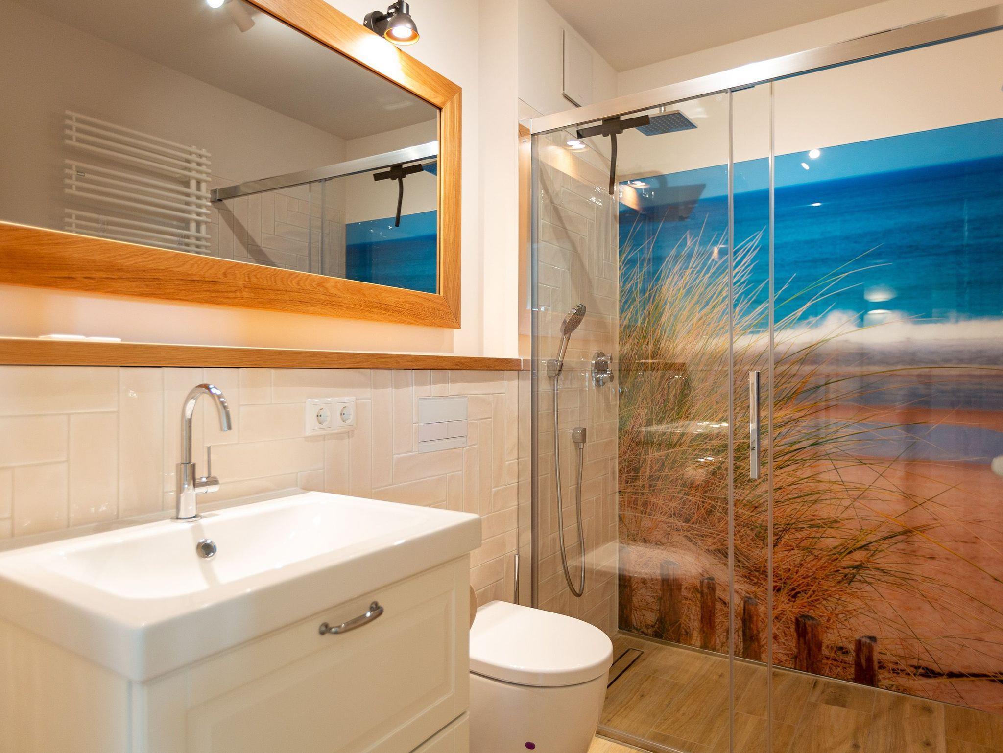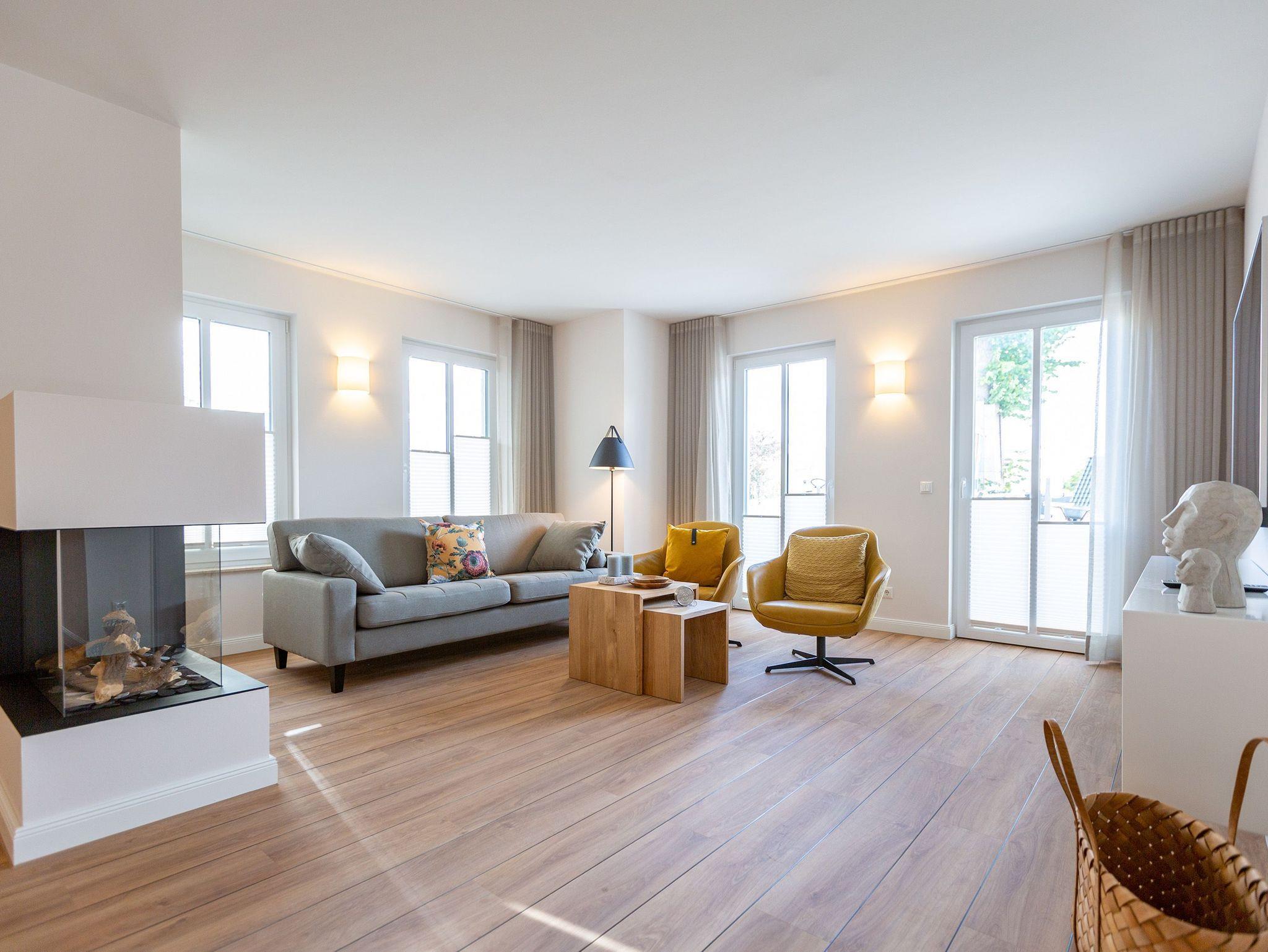Modernes Design und ein perfekt abgestimmtes Farbkonzept erwarten Sie in diesem Drei-Zimmer-Feriendomizil für bis zu vier Personen im Gartengeschoss. Auf den 84qm begrüßen Sie helle Farbtöne in Kombination mit einem dezenten maritimen Look. Der offen gestaltete Wohn-Ess-Bereich besticht durch seine gemütliche Atmosphäre und seine Großzügigkeit. In der voll ausgestatteten Küche mit hochwertigen Siemens-Geräten ist für jeden Komfort beim Zubereiten Ihrer Speisen gesorgt. Eine Granit-Arbeitsplatte sorgt zudem für einfaches Sauberhalten und einen edlen Look. Genießen Sie gemeinsame Fernsehabende vor dem Flat-TV mit Soundsystem und hören Sie dem Knistern des dreiseitigen Gaskamins zu, der vom Wohn- und Essbereich aus für eine wohlige Stimmung sorgt. Den perfekten Start in den Tag können Sie sich auf der 25qm großen Nord-Terrasse gönnen, während Sie den ersten Morgenkaffee genießen. In komfortablen Boxspringbetten (1,80m x 2,00m) lässt es sich am besten von Ihren Urlaubserlebnissen träumen. Und bei richtiger Windrichtung und Wellengang können Sie sich sogar das Meeresrauschen über die Terrassentüren in Ihr Appartement holen. Zwei barrierefreie Regenduschen, beheizte Spiegel und eine Saunalandschaft im Masterbad sorgen für ein erholsames Spa-Erlebnis. Kostenfreies W-Lan und ein Stellplatz in der hauseigenen Tiefgarage runden Ihren perfekten Urlaub auf der Insel Usedom ab.