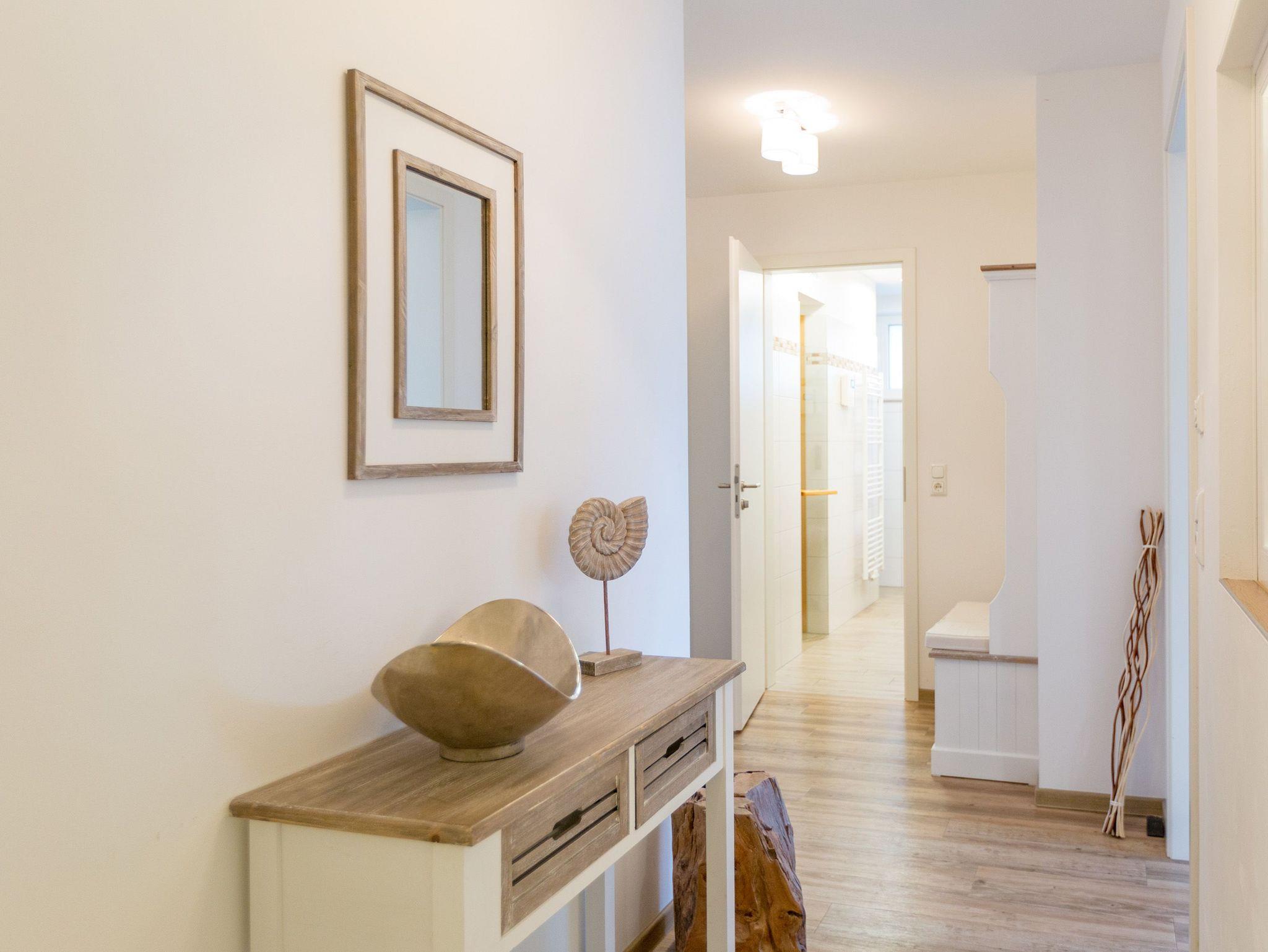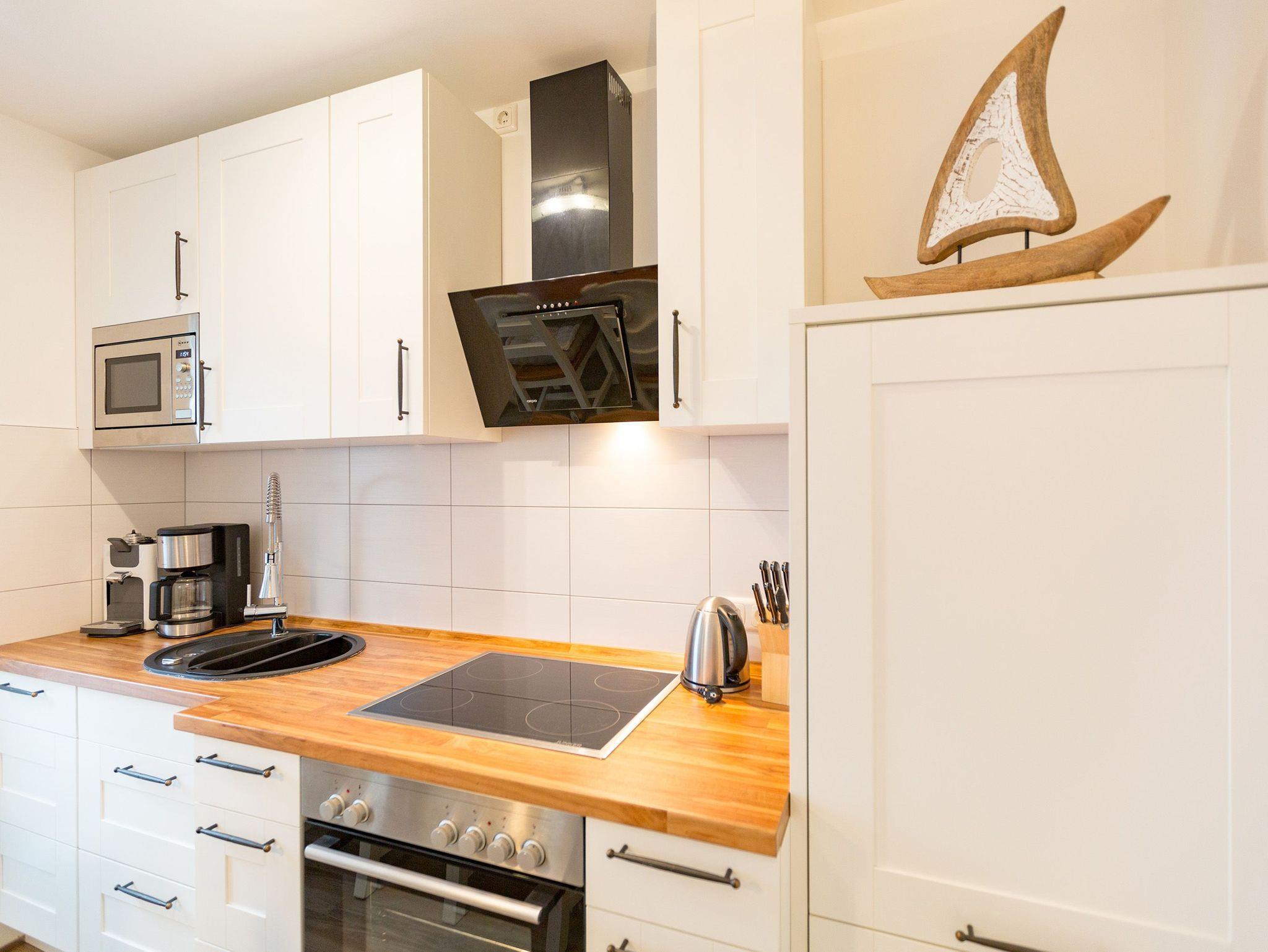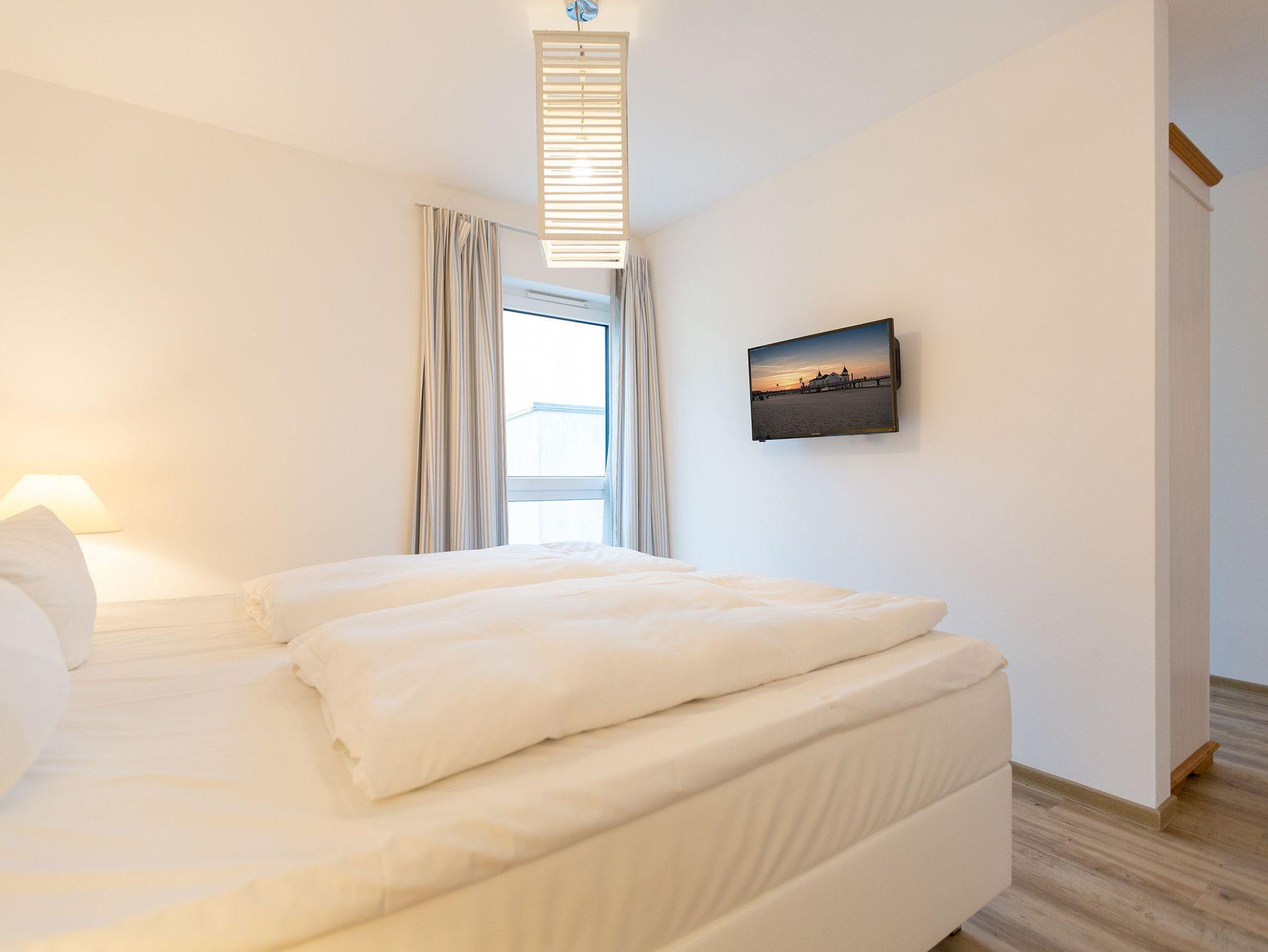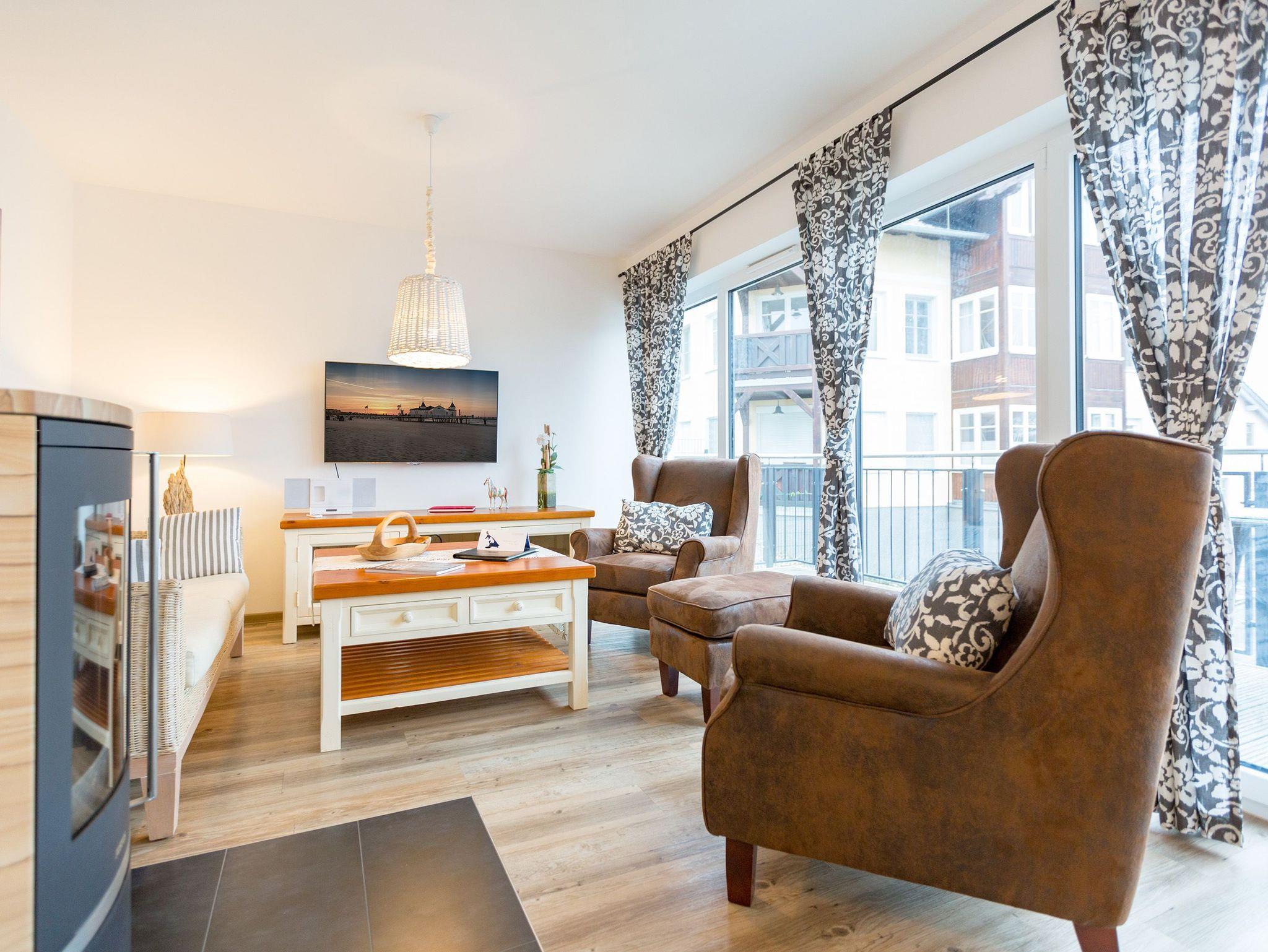 Träumen Sie nicht auch ab und an von einen kleinen Auszeit in ungewöhnlicher und ungewöhnlich schöner Umgebung? Dieses Appartement für bis zu 4 Personen [&] 1 Kleinkind ( bis 2 Jahre im Kinderreisebett) in der ersten Etage des Quartier Ahlbeck ist genau das Richtige für Liebhaber exquisiter Stilmöbel. Denn in diesem 80 Quadratmeter großen Ferienappartement erwartet Sie Landhausstil vom Feinsten. Der helle Wohnbereich mit der offenen Küche ist der ideale Rückzugsort, um neue Energie zu tanken. Ein bequemes Sofa aus Korb und die beiden großen Ohrensessel laden geradezu ein, sich in ihnen zu entspannen. Ein Kaminofen sorgt zusätzlich für Gemütlichkeit. Der Flat-TV besitzt einen Blue-Ray-Player. So wird das Urlaubsdomizil zum echten Heimkino. Durch die bodentiefen Fenster gelangen Sie auf einen lichtüberfluteten Süd-West-Balkon. Genießen Sie die Sonne und vergessen dabei einfach mal den Alltag. Lockt der Appetit, bietet die offene Wohnküche mit wunderschönem Essplatz alles, was das Herz des Hobbykochs höher schlagen lässt. Hochwertige Geräte vom Herd, über die Kaffeemaschine bis zur Mikrowelle und erlesenes Geschirr machen das Zubereiten und Genießen der Speisen zum Vergnügen. Die zwei Bäder sind geräumig und mit Dusche, Waschtisch und WC ausgestattet. Schalten Sie ab und kommen Sie zur Ruhe in der eigenen Finnischen Sauna. Danach bleischwer und völlig entspannt ins Bett fallen? Kein Problem. In den beiden Schlafzimmern warten bequeme Boxspringdoppelbetten (1,80 m x 2,00 m) nur darauf, Ihnen himmlische Träume zu bescheren. Auch hier sind Möbel und Wände wunderbar hell gehalten und geben den Zimmern ein luftig leichtes Ambiente. Große Schränke bieten viel Platz für Ihre Sachen. Damit Ihre Urlaubsauszeit so entspannend wie möglich ist, sind die Betten bei Ihrer Anreise bezogen und Handtücher liegen bereit.