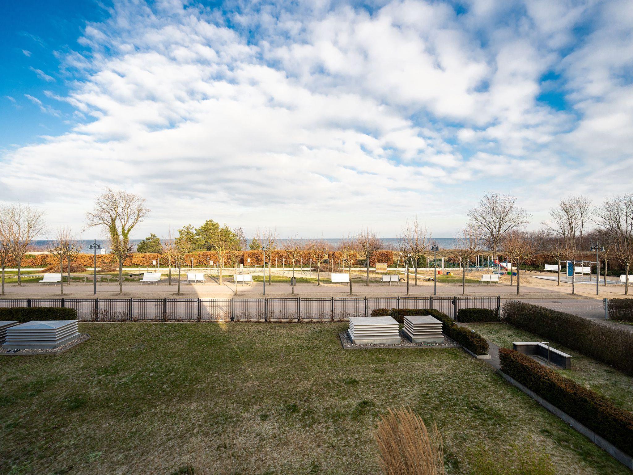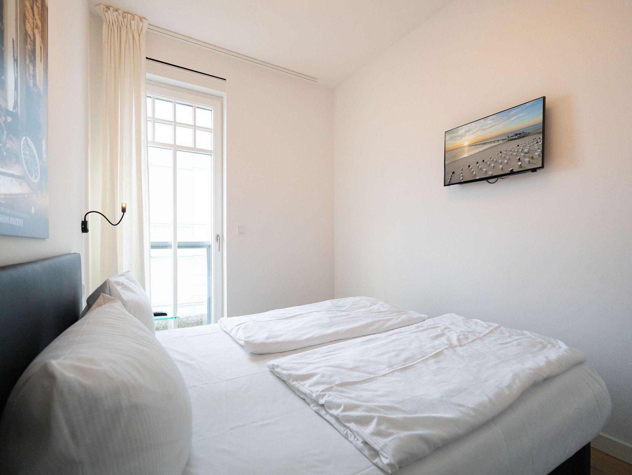 Urlaub beginnt da, wo Sie bereits beim Frühstück aufs Meer blicken! Das 77 Quadratmeter große Appartement 7 im 1. OG erfüllt Ihnen diesen Urlaubstraum. Lichtdurchflutete, helle 3 Zimmer und eine großzügige Raumaufteilung versprechen eine exklusive Auszeit am Meer für bis zu 4 Personen. Dafür sorgt auch der offene Wohn-Essbereich. Genießen Sie vom Balkon oder Design-Sofa aus den direkten Blick auf die Ostsee oder entspannen Sie vor dem Flat-TV. Ein Elektro-Kamin sorgt auch an kühleren Tagen für ein stimmungsvolles Ambiente und dient als Raumtrenner zum angrenzenden Küchenbereich mit Design-Küche. Zur Erleichterung Ihres Küchendienstes wurden hochwertige Geräte verbaut, die keine Wünsche beim Zubereiten Ihrer Speisen offen lassen. Hier befindet sich ebenfalls ein Essplatz für bis zu 4 Personen. Die dezent gestalteten Schlafzimmer sind jeweils mit Flat-TV und offenen Möbeln ausgestattet. Ein Doppelbett im Master-Schlafzimmer (1,80m x 2,00m) und ein Boxspringbett (1,60m x 2,00m) im zweiten Schlafzimmer sorgen für angenehmen Schlafkomfort. Das absolute Highlight bildet das Badezimmer mit Finnischer Sauna und XXL-Regendusche. Ein Bidet und WC sowie ein Doppelwaschtisch runden das Masterbad ab. Ein Gäste-WC ist darüber hinaus ebenfalls vorhanden. Ein Platz in der Tiefgarage ist bei Anreise für Sie reserviert. Für einen sorgenfreien Urlaubsstart sind die Betten bereits bezogen und Handtücher liegen für Sie bereit. Kostenfreies WLAN rundet dieses Appartement ab.