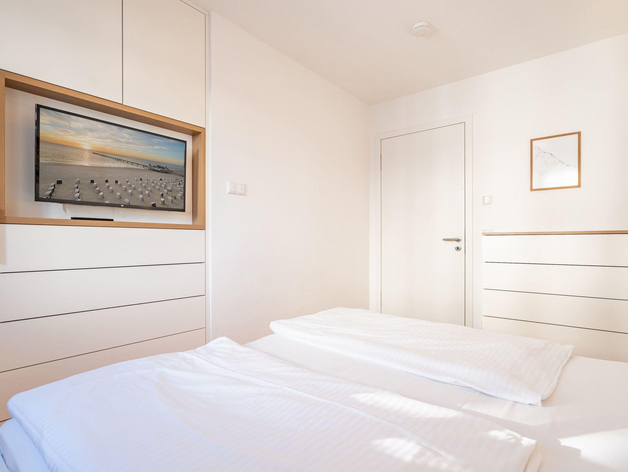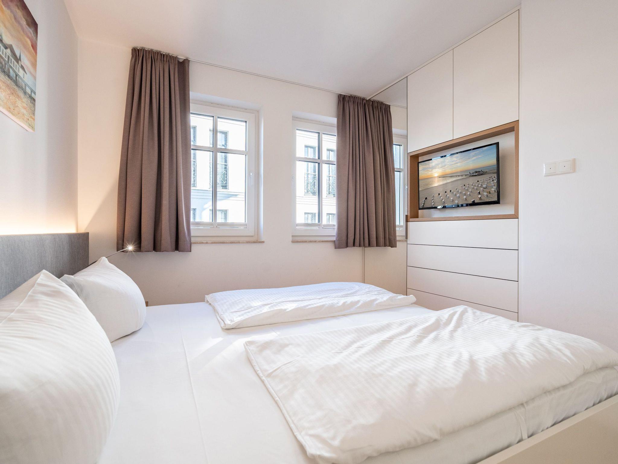 Ankommen, durchatmen, abschalten ? in dieser hochwertigen Ferienwohnung fällt das leicht. Nur wenige Schritte trennen Sie vom feinen Ostseesand und dem weiten Strand der Kaiserbäder. Die Wohnung Nr. 05 befindet sich im ersten Obergeschoss und ist bequem per Aufzug erreichbar. Auf rund 75 Quadratmetern bietet sie bis zu vier Erwachsenen und einem Kleinkind viel Platz, um den Urlaub entspannt zu genießen. Der offene Wohn- und Essbereich ist hell, modern und durchdacht eingerichtet. Die voll ausgestattete Küche mit Backofen, Geschirrspüler, Ceranfeld und Mikrowelle lässt keine Wünsche offen. Am Esstisch finden vier Personen bequem Platz. Im Wohnbereich laden eine bequeme Couch und ein großer Flachbild-TV zu gemütlichen Stunden ein. In der kalten Jahreszeit sorgen Kamin und Sauna für wohlige Wärme. Vom Wohnzimmer aus gelangen Sie auf den Balkon mit südöstlicher Ausrichtung ? hier können Sie die Sonne genießen und über den Dünenaufgang hinweg bis zur Ostsee blicken. Beide Schlafzimmer sind mit hochwertigen Doppelbetten (1,80 x 2,00 m), Einbaukleiderschrank und eigenem TV ausgestattet. Eines der Bäder schließt direkt an ein Schlafzimmer an und verfügt über eine bodentiefe Dusche und ein Fenster. Das zweite, größere innenliegende Bad bietet ebenfalls eine ebenerdige Dusche sowie eine eigene Sauna ? ideal zum Entspannen nach einem Tag am Strand. Für Familien ist alles vorbereitet: ein Babyreisebett und ein Kinderhochstuhl können bei Bedarf dazu gebucht werden. Ihr Auto parken Sie bequem auf dem reservierten Stellplatz Nr. 5 in der Tiefgarage. WLAN ist selbstverständlich kostenfrei verfügbar. Fahrräder können im abschließbaren Fahrradraum untergebracht werden. Hier erwartet Sie eine Wohnung, die Komfort, Lage und Atmosphäre perfekt verbindet ? ideal für erholsame Tage an der Ostsee.