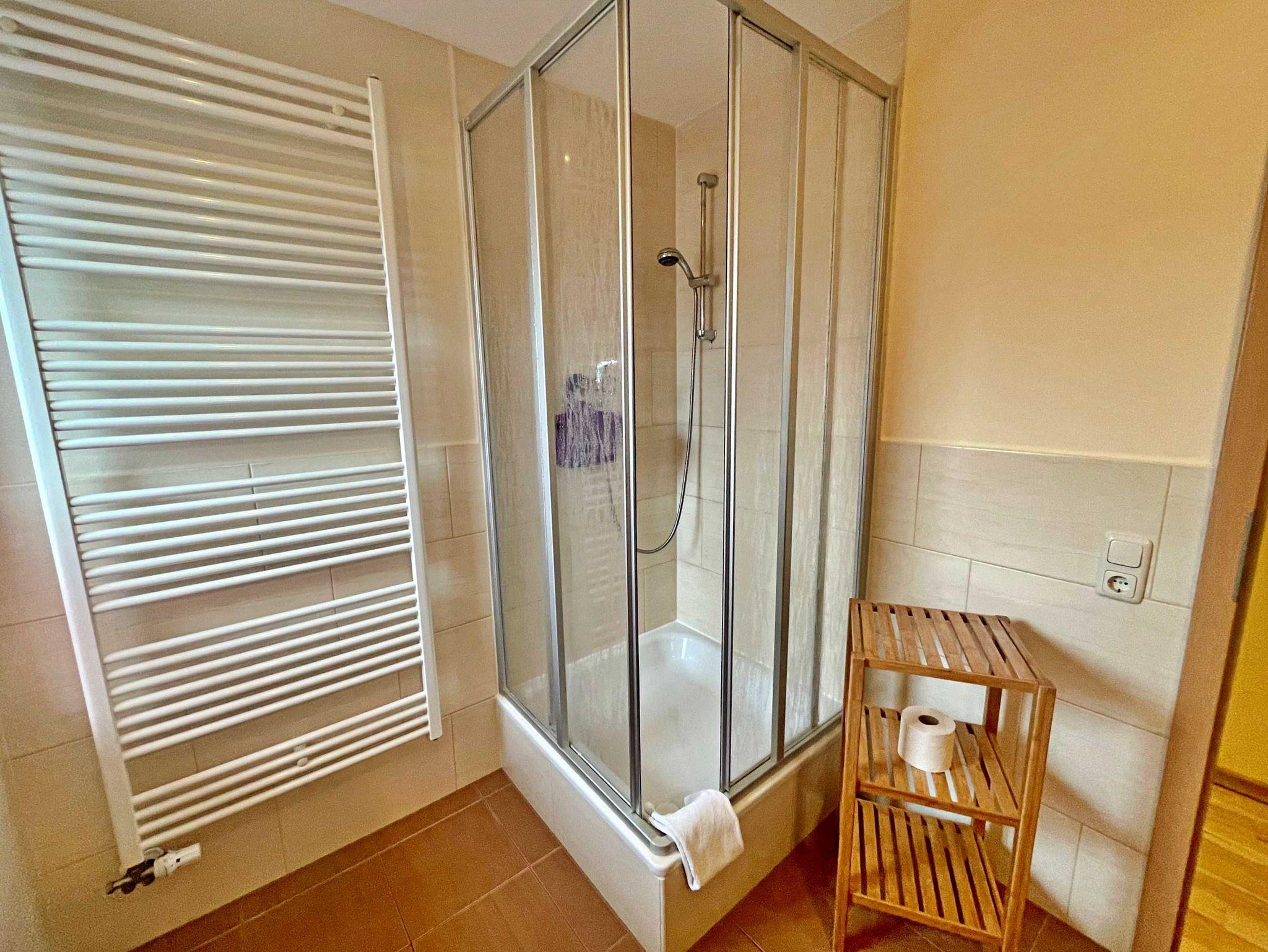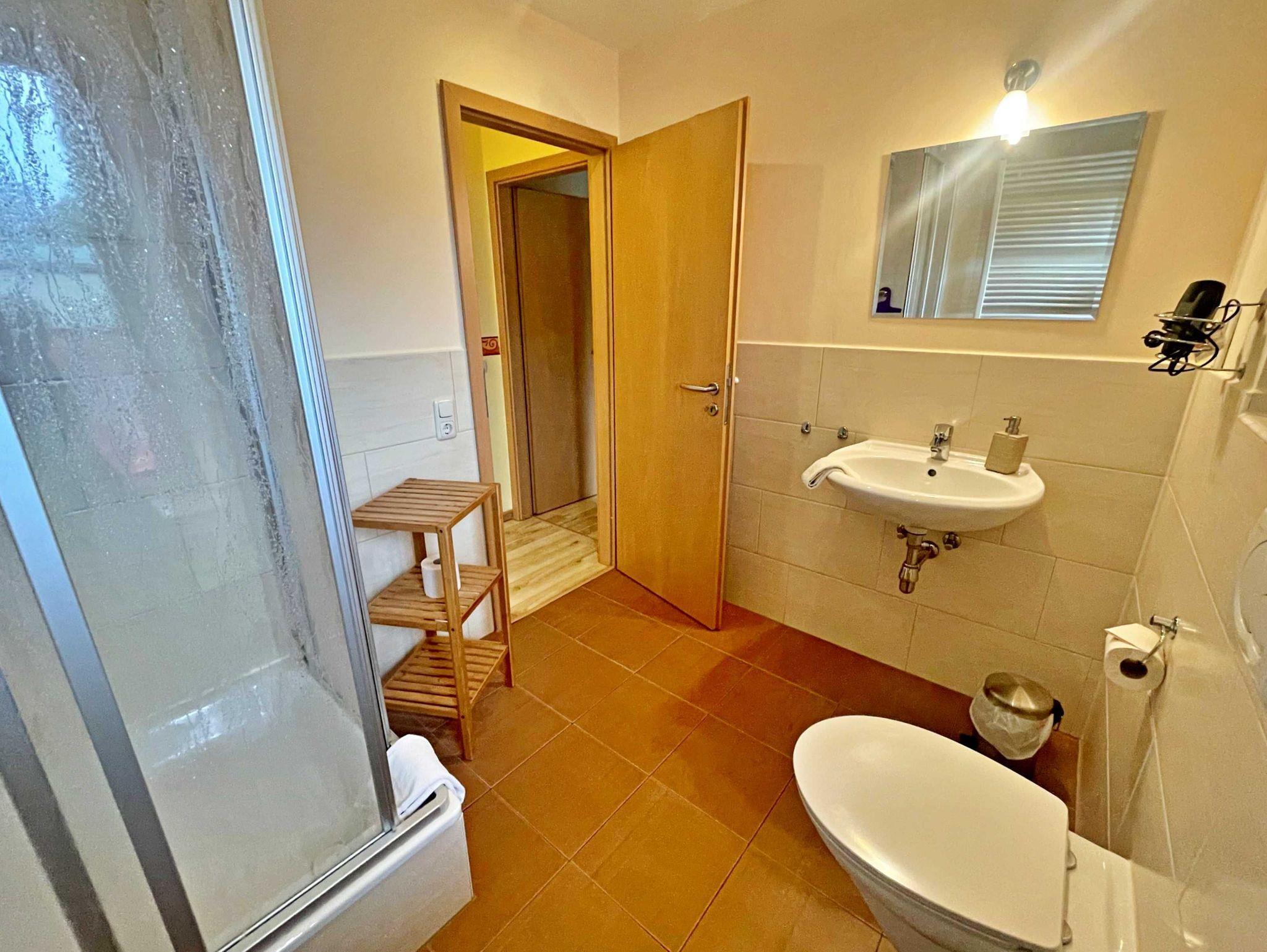 Die 2-Zimmer-Ferienwohnung im Obergeschoss verfügt über ca. 42 m² Wohnfläche aufgeteilt in 1 Schlafzimmer, 1 kombinierten Wohnraum mit Küchenzeile und 1 Bad. Zur Wohnung gehört eine direkt angrenzende Terrasse und ein Kfz-Stellplatz.