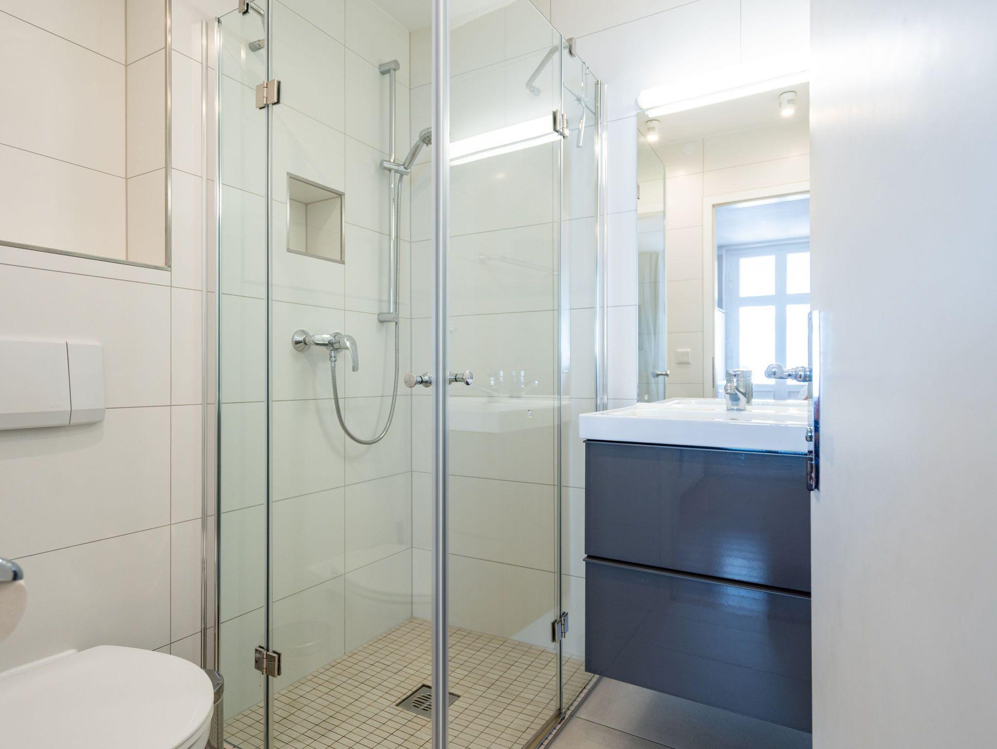 In Ihrer neu renovierten 2-Raum-Ferienwohnung (44 qm) für 2-3 Personen [&] 1 Kleinkind (bis 3 Jahre im Kinderreisebett) im Dachgeschoss logieren Sie in Bestlage mit schönem Ostseeblick! Nach dem Eingangsbereich empfängt Sie ein gemütlicher Wohnbereich mit Schlafsofa (als Aufbettungsmöglichkeit für eine 3. Person), Flat-TV und komplett ausgestatteter Küchenzeile. Genießen Sie von der verglasten Veranda aus den Blick auf die Ostsee. Ein schöner Essplatz und zwei gemütliche Ohrensessel laden zum Lesen, TV schauen oder Entspannen ein. Im Schlafzimmer sorgt ein bequemes Doppelboxspringbett (1,80m x 2,00m ) für Schlafkomfort, auch ein Kinderreisebett findet hier Platz. Ergänzt wird das Appartement durch ein modernes Badezimmer mit Dusche und WC. Ein Pkw-Stellplatz Nr. 8 befindet sich in der Tiefgarage auf dem Grundstück.