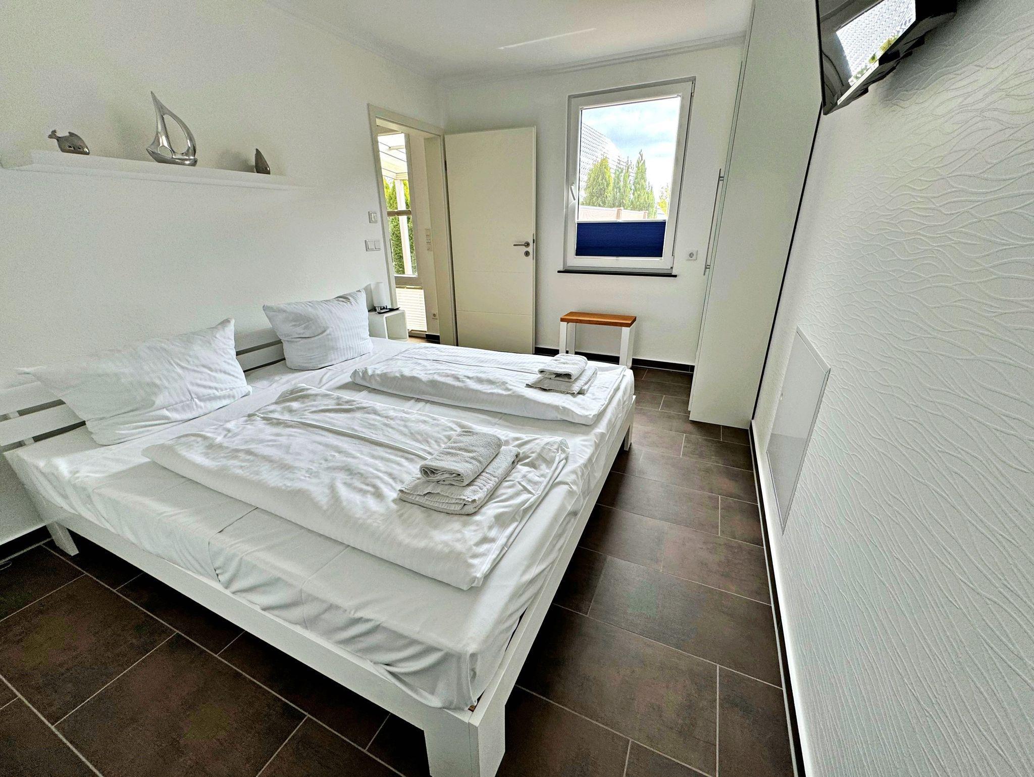 Hell, modern und freundlich - diese charmante Nichtraucher-Ferienwohnung bietet mit 30 qm ein schönes Zuhause auf Zeit für 2 Personen. Der hübsche Wohnbereich verfügt über eine bequeme Couch und Flachbild-TV. Die offene Küchenzeile mit Ceranherd, Backofen, Mikrowelle und Kühlschrank und der Essplatz für 2 Personen lässt keine Wünsche offen. Vom Wohnbereich aus gelangen Sie auf die Terrasse - ideal, um bei schönem Wetter den ersten Kaffee am Morgen zu genießen oder um den erlebnisreichen Urlaubstag ausklingen zu lassen. Das Schlafzimmer ist mit einem Doppelbett, Kleiderschrank und einem zweiten Flachbild-TV ausgestattet. Das Badezimmer mit ebenerdiger Dusche, WC und Fön rundet den Komfort der Wohnung ab.