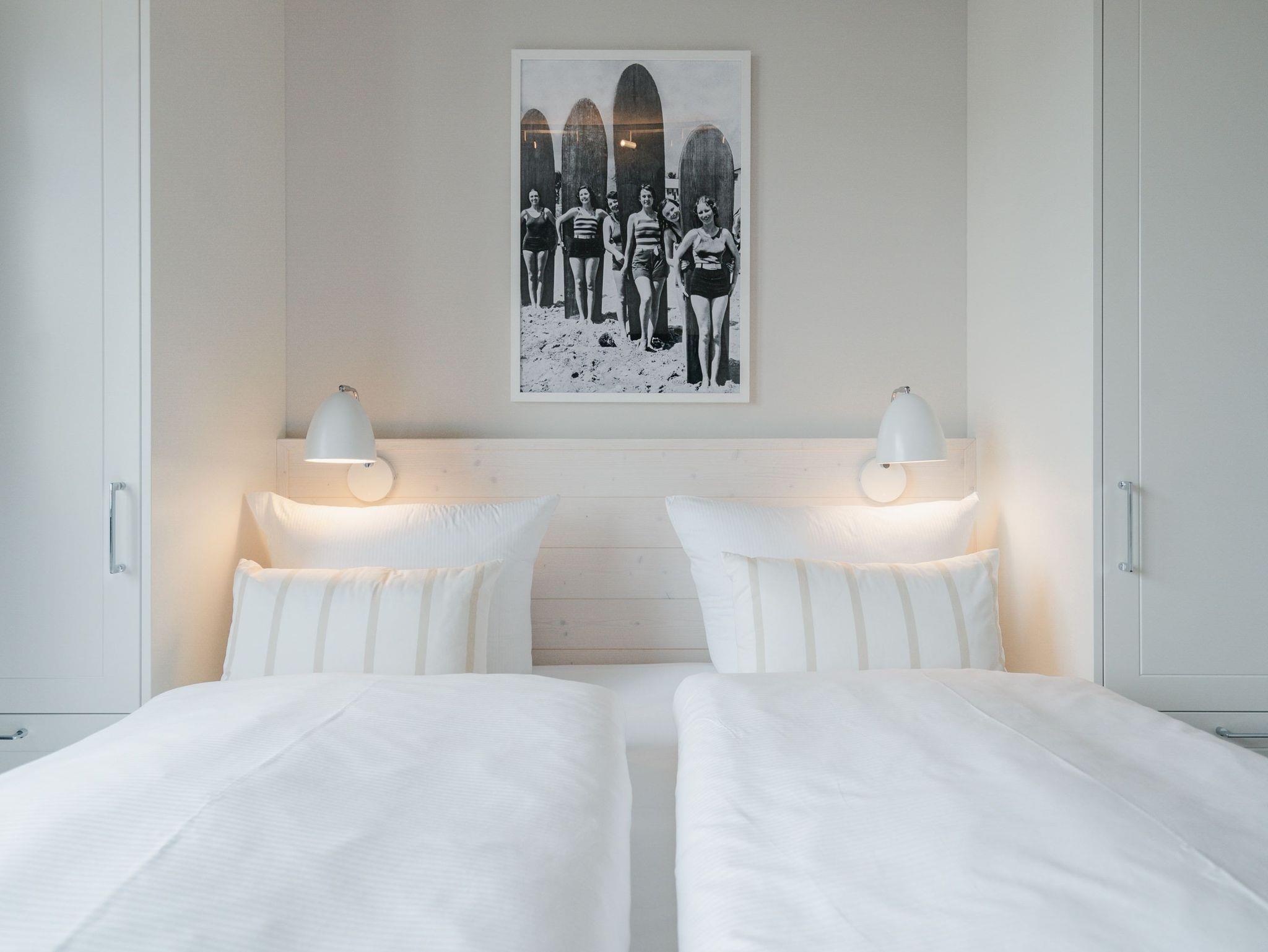Wer nordisches Design mag, wird sich auf Anhieb in dieses stilvolle Urlaubszuhause für bis zu 4 Personen verlieben. Die 62 Quadratmeter des 3-Raum-Appartements B 1.8 im Haus B der Strandterrasse sind ein absoluter Wohntraum. Hier werden Sie sich von der ersten Sekunde an wohlfühlen. Das mit viel Liebe eingerichtete Feriendomizil wartet mit einem geräumigen Wohn-Esszimmer auf. Eine Relaxarea mit Geschmack und viel Komfort. Warme Farben sorgen für viel Gemütlichkeit. Das Sofa nebst superschönem und vor allem bequemem Sessel eignet sich wunderbar zum Entspannen und für Filmabende auf dem Flat-TV (43 Zoll). Eine romantische Atmosphäre verströmt der Elektrokamin (ohne Wärmeabgabe). Die zum Wohnzimmer hin offene Küche ist mit modernen Elektrogeräten ausgestattet. Dazu gehören ein Backofen, ein 4-Platten-Induktionsherd, ein Geschirrspüler, ein Toaster, eine Kaffeemaschine und einer Nespresso-Kapselmaschine. Genießen Sie das Essen gemeinsam am Esstisch, der auch ausreichend Platz für Spieleabende bietet. Was jedoch wäre ein Ostseeurlaub ohne Ostsee? Vom Wohnzimmer aus können Sie auf einen Nord-Ost-Balkon hinaustreten, von dem aus Sie seitlich aufs Meer hinausschauen können. Atmen Sie die frische Luft tief ein. Essen unter freiem Himmel wird am Balkontisch mit vier Stühlen möglich ? wenn nicht gerade der Strand ruft. Da Meeresluft bekanntlich müde macht, werden Sie in den komfortablen Boxspringdoppelbetten (2,00m x 2,00m und 1,80m x2,00m) in den beiden Schlafzimmern ganz sicher wunderbar schlafen können. Jedes Schlafzimmer verfügt zudem über einen großen Kleiderschrank und einen Flat-TV (43 Zoll). Zwei moderne Duschbäder mit Waschtisch und WC bieten Ihnen allen Komfort und Privatsphäre. Parken Sie bequem auf dem zu Ihrer Wohnung gehörenden PKW-Stellplatz. Mehr braucht es für einen erholsamen Urlaub am Meer nicht. Wir wünschen Ihnen ein schönes Ankommen, Auspacken und Wohlfühlen.