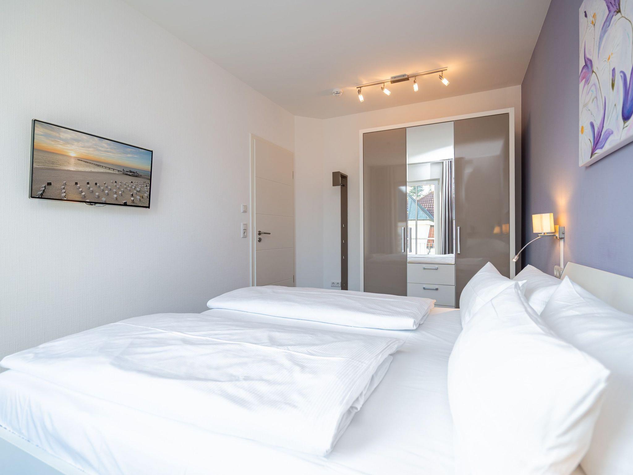 Die Ferienwohnung 20 im Dünenpalais ist einfach schön! Hochwertig und geschmackvoll gestaltet, liegt es im 2. Obergeschoss des Südhauses. Es erwarten Sie 3 Räume (buchbar für 4 Personen und 1 Kleinkind bis 3 Jahre im Kinderreisebett), aufgeteilt auf ein Wohnzimmer mit gemütlicher Sitzgruppe und Flat-TV, ergänzt durch eine komplett ausgestattete Küchenzeile und den Essbereich. Durch seine 2 Schlafzimmer mit Doppelbetten und 2 Bäder mit Dusche und WC eignet sich dieses Appartement besonders für Familien oder befreundete Pärchen. Ein besonderes Highlight ist der Gaskamin, der per Fernbedienung ganz einfach zu nutzen ist. Der großzügige Südbalkon und ein zweiter Ostbalkon bieten auch außen genug Platz zum Wohlfühlen. Auf Wunsch stellen wir ein Kinderreisebett (ohne Matratze [&] Bettzeug) und einen Kinderhochstuhl gegen einen Aufpreis zur Verfügung. Ein PKW-Stellplatz ( Nr.17) steht Ihnen in der Tiefgarage zur Verfügung. Das WLAN-Netz ist kostenfrei nutzbar.