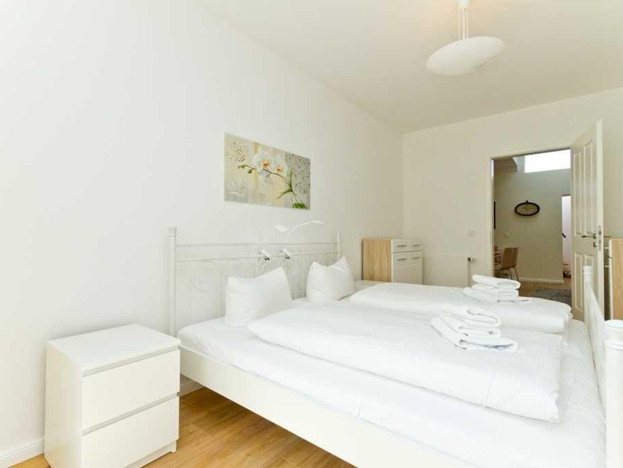 Die 2 geräumigen Schlafzimmer sind jeweils mit einem romantischen Eisenbett (180 cm x 200 cm) ausgestattet und bieten genügend Ablagemöglichkeiten für Ihre Urlaubsgarderobe. Durch die jeweils angrenzenden offenen Loggien entstehen gern genutzte Rückzugsmöglichkeiten mit Blick über die Dächer Ahlbecks. Hier lesen Sie ein schönes Buch oder verfassen die Urlaubsgrüße an die Lieben zu Hause. Zudem bieten die Schlafräume genügend Platz um jeweils ein Kinderreisebett aufzustellen.