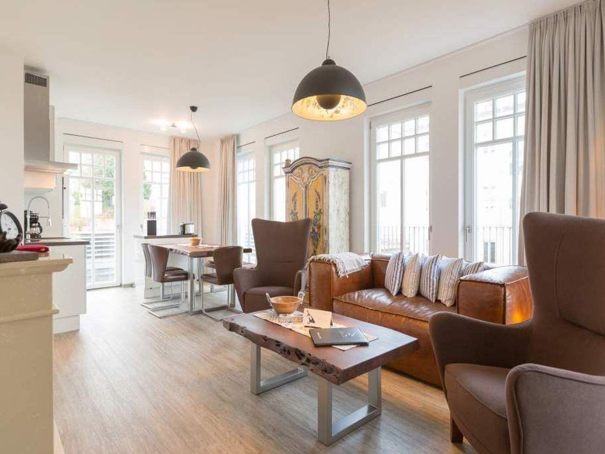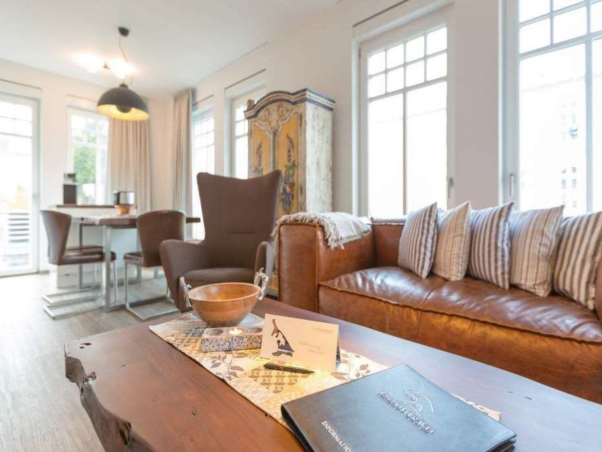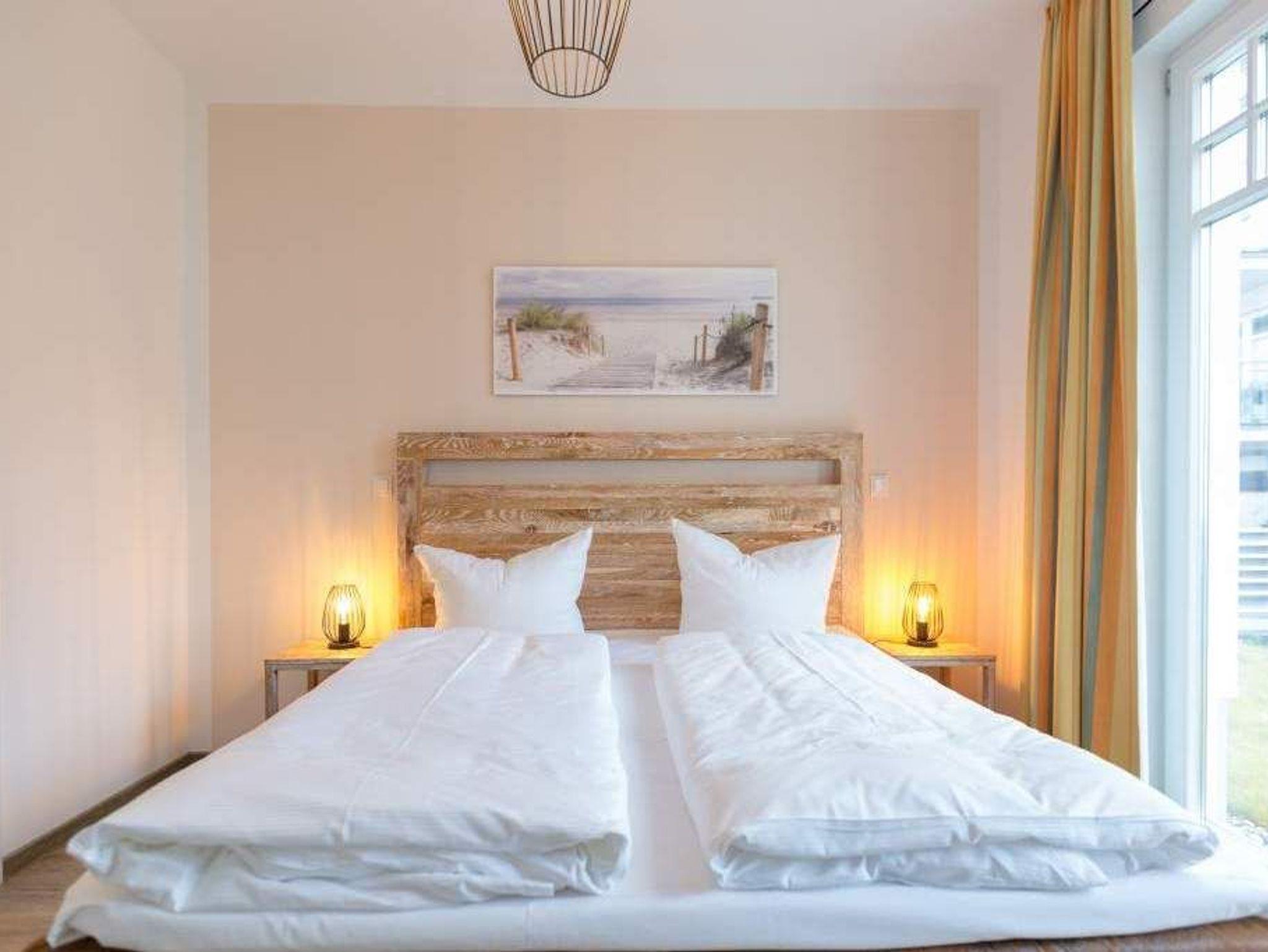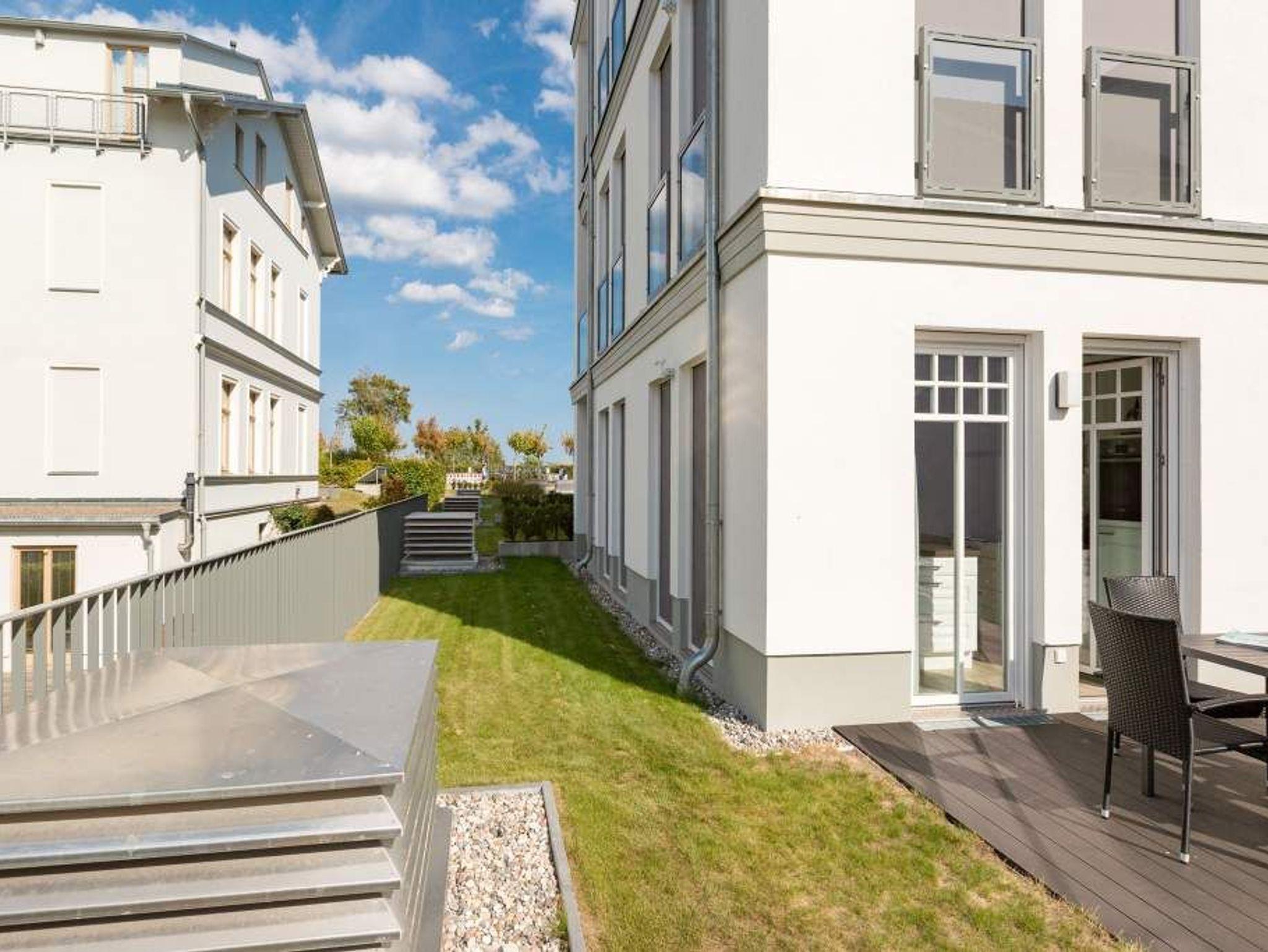 Zu spüren, wie jeder Muskel sich entspannt, wie die Seele zur Ruhe kommt und man tief durchatmet, während durch die großen, offenen Fenster die gerade einmal 20 Meter entfernte Ostsee ins Wohnzimmer rauscht ? angekommen in der Wohnung Nummer 4 im Erdgeschoss der Villa Westend sind Sie auch gleich im Urlaubshimmel. Denn die 84 Quadratmeter, die Platz für 4 Personen [&] 1 Kleinkind ( bis 2 Jahre im Kinderreisebett) bietet, ist anders, ist extravagant, stylisch und doch unglaublich einladend, behaglich und komfortabel. Hier treffen shabby Kolonialstil auf modernes Design, exotische Massivholzmöbel auf Art Deco und Industrial Chic. Ein harmonischer Stilmix, der diesem Urlaubsappartement ein ganz besonderes Flair verleiht. Die großen Ohrensessel oder die Ledercouch im luftigen und geräumigen Wohn-Esszimmer eignen sich bestens zum gemütlichen Relaxen. Ein Flat-TV mit integrierter Soundbar sorgt für Unterhaltung. Der Elektrokamin im Wohnzimmer bringt Kuschelstimmung auf Knopfdruck. Ein wunderschöner Echtholztisch ist das Verbindungsglied zur modernen und offenen Küche. Mit den hochwertigen Markengeräten macht das Kochen und Dinieren so richtig Spaß. Oder setzen Sie sich auf die Terrasse. Genießen Sie von hier aus die Sonne. Denn Dank der Süd-West-Ausrichtung können Sie hier zusätzlich zum wunderbaren Blick in den Garten auch die letzten Sonnenstrahlen des Tages noch auskosten. Auch wenn man im Urlaub möglichst keine Sekunde verschlafen möchte, verschaffen die beiden großen Doppelboxspringbetten (jeweils 1,80 m x 2,00 m) in den beiden Schlafzimmern einen erholsamen Schlaf. Viel Ablagemöglichkeit bieten hier die großen Vintage-Schränke. In jedem Schlafzimmer gibt es einen Flat-TV. Die Nichtraucher-Wohnung verfügt über zwei Bäder mit Dusche, Waschtisch und WC. Ein Highlight ist im Masterbad eine finnische Sauna, die für das ganz exklusive und eigene Spa-Gefühl sorgt. Handtücher liegen schon für Sie bereit und die Betten sind, wenn Sie ankommen, frisch bezogen. In der Tiefgarage steht für Sie ein Pkw-Stellplatz Nr. 25 zur Verfügung. WLAN gibt es kostenfrei.