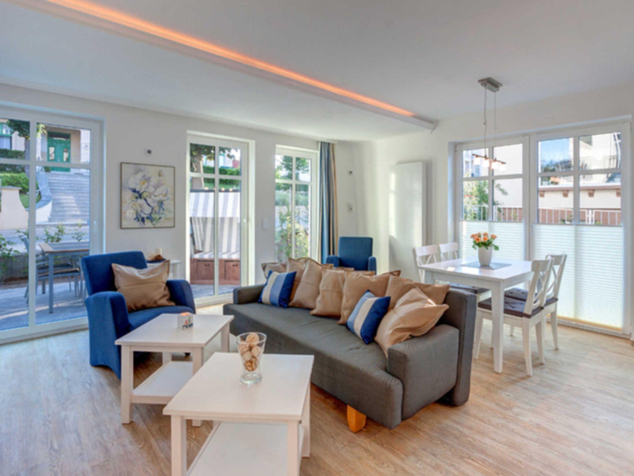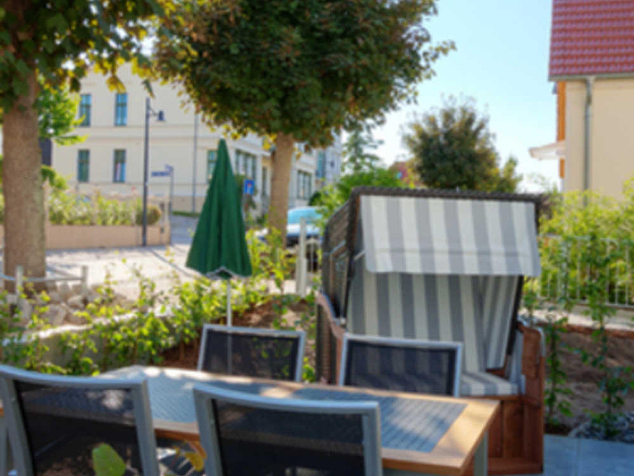 MODERN mit SÜDTERRASSE, FAHRSTUHL, nur ca. 100 m zur STRANDPROMENADE! Komfortabel eingerichtete 3 - Zimmer - Wohnung im EG mit sehr guter Ausstattung! 2 separate Schlafzimmer, 2 Bäder (1 Wannenbad und Fußbodenheizung, 1 Duschbad) , Wohnbereich mit Küchen- und Eßbereich, möblierte Terrasse mit Strandkorb (ca. 15 qm). Die Wohnung verfügt über einen Pkw-Stellplatz in der hauseigenen Tiefgarage. Fahrradabstellfläche ist vorhanden. Vom Haus aus können Sie das Ortszentrum und die bekannte Ahlbecker Seebrücke in ca. 2 Minuten zu Fuß erreichen.