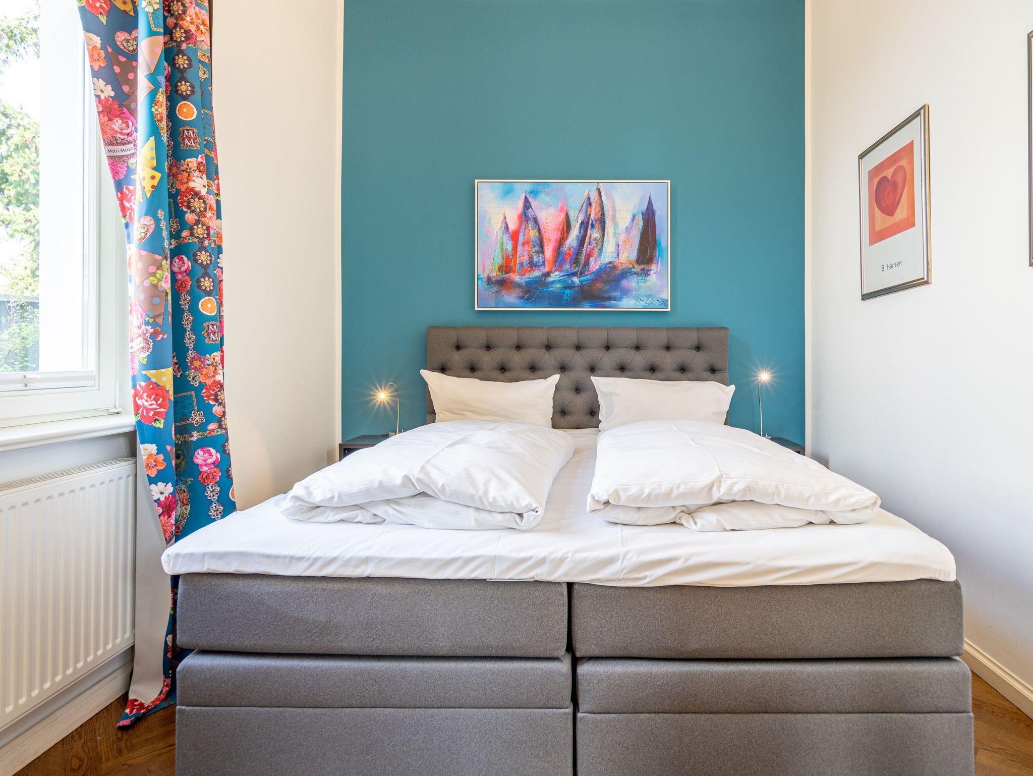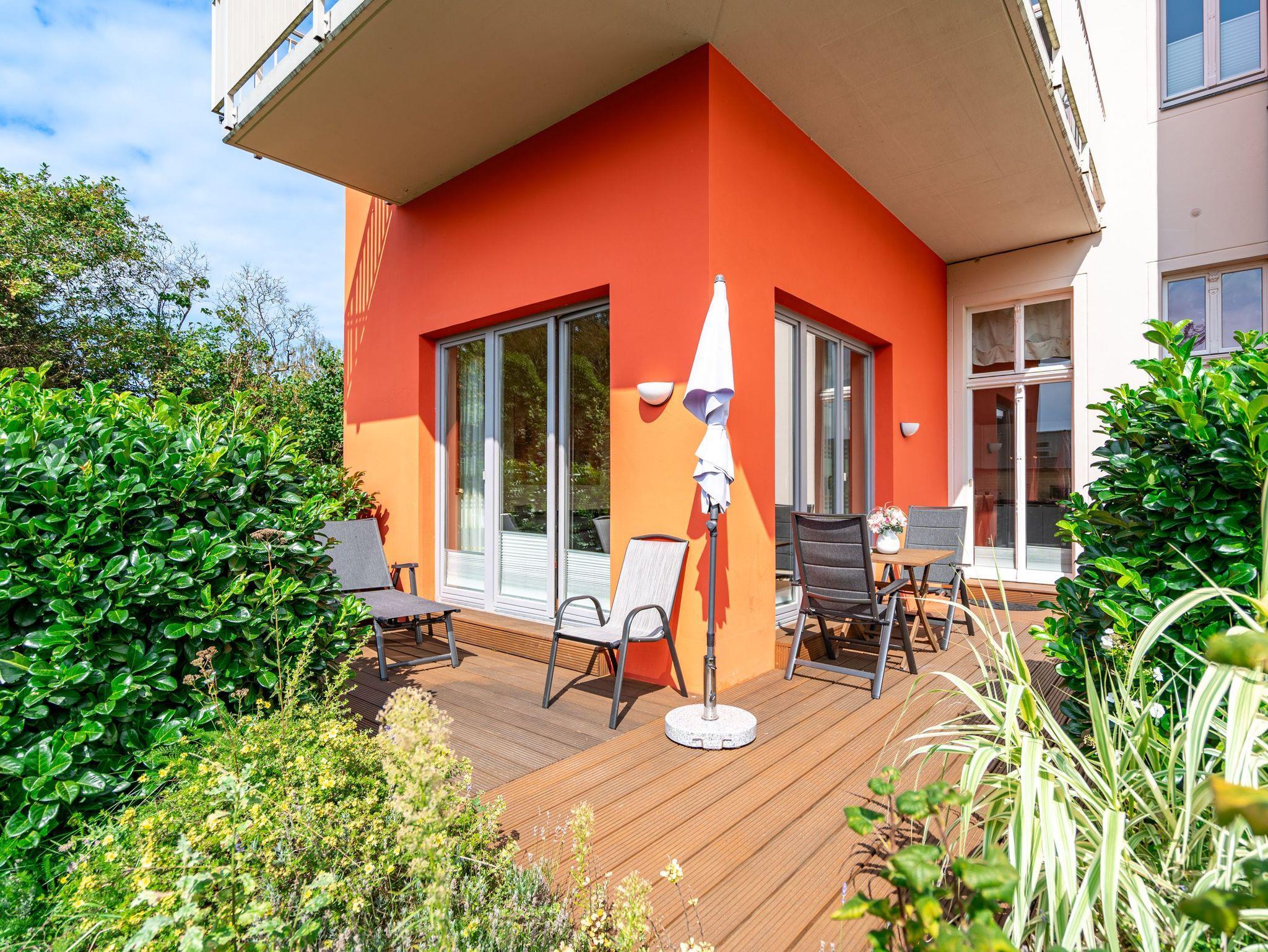 Ihre Ferienwohnung 3 (57qm), im Parterre der Villa, verwöhnt Sie mit moderner Möblierung und farblich gekonnt kombinierten Farben und Stoffen. Helle Räume, ein aufwendig sanierter Parkettboden und die geschmackvollen Dekorationen lassen keine Wünsche offen. Die offene Wohnküche, das Wohnzimmer mit großzügiger Couch, Schlafsessel und das Schlafzimmer mit Doppelbett (1,80m x 2,00m) bieten Platz für 2 bis 3 Personen [&] Kleinkind (bis 2 Jahre). Auf der Terrasse, die zur Südseite ausgerichtet ist, genießen Sie die Nachmittagssonne. Für kleine Gäste stellen wir gern ein Kinderreisebett und einen Hochstuhl zur Verfügung. Für Ihren Komfort sind bei Ihrer Anreise die Betten liebevoll bezogen, auch der erste Satz Handtücher liegt für Sie bereit. Ein Pkw-Stellplatz steht am Haus, unter dem Carport, zur Verfügung.