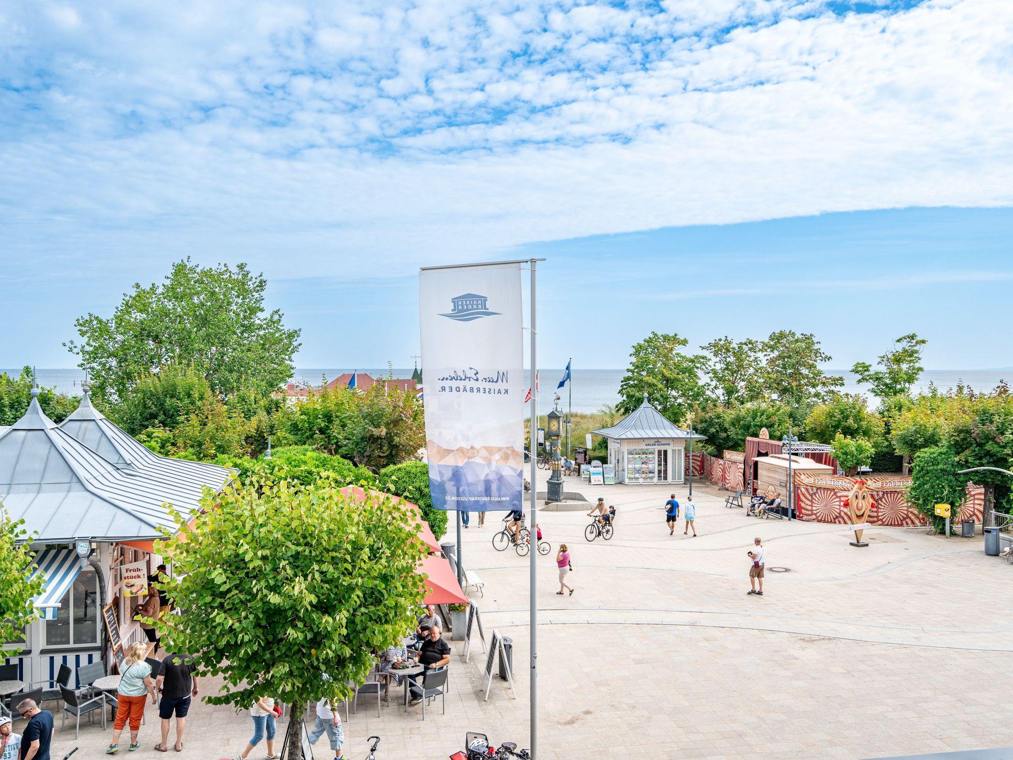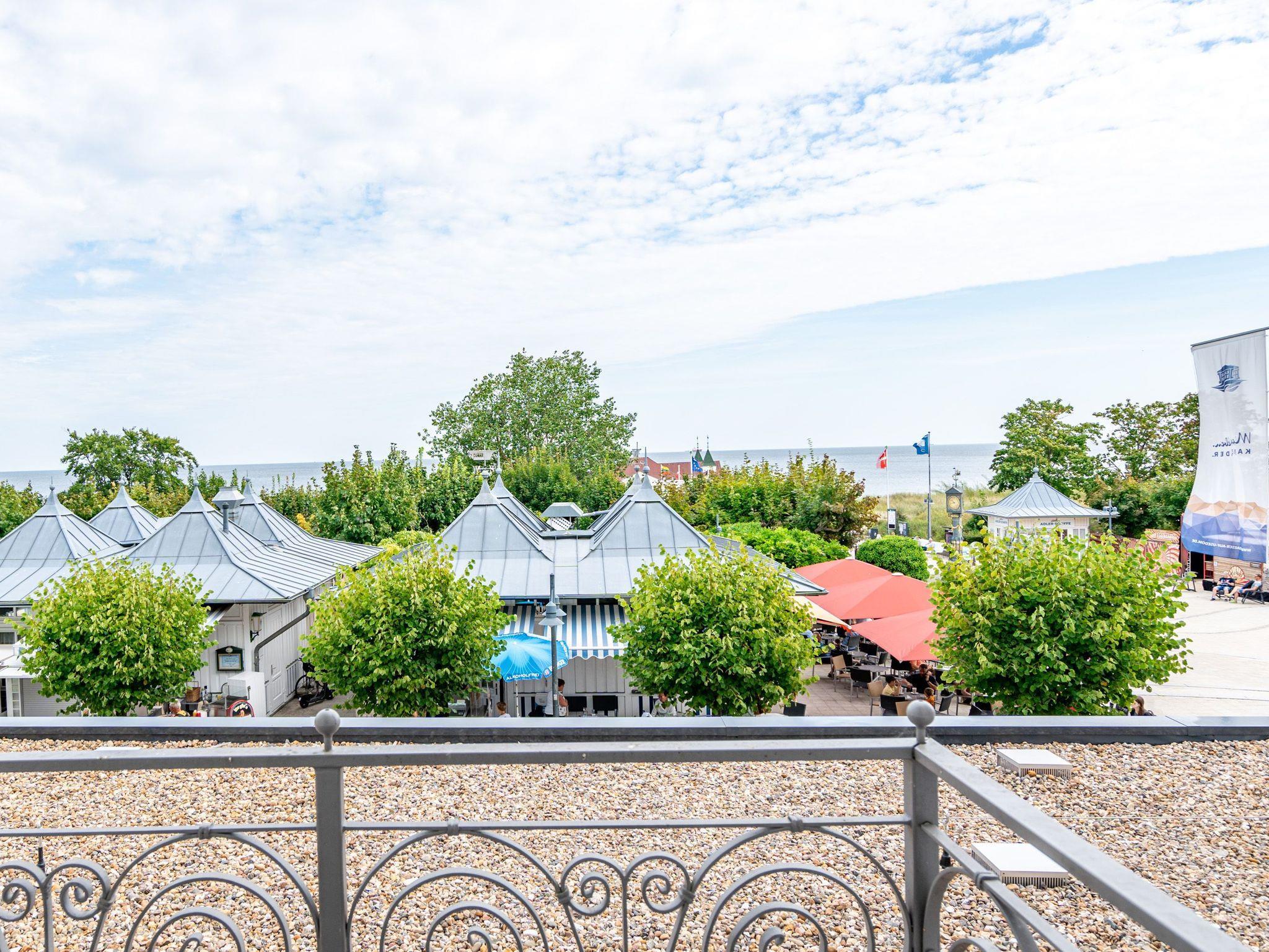 Die Villa Seedüwel - als Nachbarhaus der Strandterrasse, besticht durch ihre einmalige Lage direkt an der Ahlbecker Seebrücke, der belebten Promenade sowie der historischen Konzertmuschel, einem beliebten Treffpunkt für Kunst und Kultur. Dieses Objekt bietet insgesamt 13 Ferienwohnungen mit einem, zwei oder drei Räumen. Einige der Apartments bieten einen spektakulären Ausblick auf die historische Seebrücke und die Ostsee. Für Ihren PKW steht ein Stellplatz in der Tiefgarage des benachbarten Hauses Strandterrasse zur Verfügung (Zufahrt über Kurstraße), von der Sie direkten Zugang zur Villa haben. Ein Fahrstuhl im Haus ist über einige Stufen im Flur erreichbar. Die Villa ist komplett mit kostenfreiem WLAN ausgestattet. Zudem gibt es einen gemeinschaftlichen Fahrradkeller für die sichere Aufbewahrung Ihrer Fahrräder. Der feinsandige, weiße Strand und das Meer liegen nur wenige Schritte entfernt. Die attraktive Lage bietet Ihnen eine Vielzahl an Restaurants, Cafés und Einkaufsmöglichkeiten (unter anderem im Erdgeschoss des Hauses) sowie das charmante Ambiente von Ahlbeck.