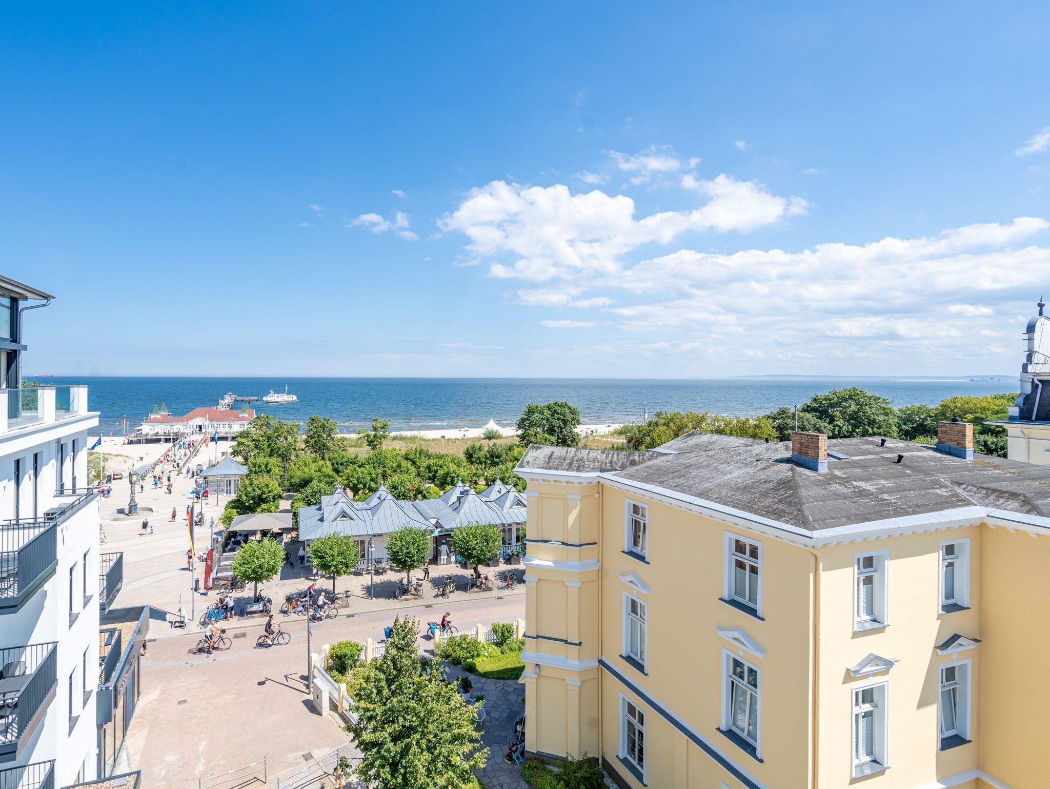 Willkommen im Strandterrasse 2-Raum-Appartement Nr. B4.2 (Haus B), einem bezaubernden Rückzugsort hoch oben in der 4. Etage mit einem spektakulären Blick auf das Meer und einer Vielzahl von Annehmlichkeiten, die Ihren Aufenthalt unvergesslich machen. Dieses geräumige 75 Quadratmeter große Appartement bietet Platz für 2 Personen[nbsp] [&] 1 Kleinkind (im Babybett). Der offene Wohn- und Essbereich ist einladend gestaltet und verfügt über eine moderne Küchenzeile mit allem, was Sie benötigen, einschließlich einer Backofen-Mikrowellen-Kombi, einem 3-Platten-Induktionsherd und einer Nespresso-Kapselmaschine. Ein gemütlicher Essplatz für 4 Personen und eine Working Station bieten den perfekten Raum für Mahlzeiten und produktives Arbeiten. Der Elektrokamin (ohne Wärmeabgabe) schafft eine gemütliche Atmosphäre, während eine komfortable Sitzgruppe und ein Flat-TV (50 Zoll) für Unterhaltung sorgen. Der Süd-Ost-Balkon lädt dazu ein, die frische Meeresluft zu genießen. Ausgestattet mit einem Gartentisch und zwei Stühlen ist er der perfekte Ort für ein gemütliches Frühstück oder einen romantischen Abend zu zweit. Das angrenzende Schlafzimmer bietet ein luxuriöses Boxspringdoppelbett (2,00m x 2,00m), ein festes Babybett, einen geräumigen Kleiderschrank und einen Flat-TV (43 Zoll). Ein weiterer Zugang zum Balkon mit einer entspannenden Gartenliege ermöglicht es Ihnen, die Sonne zu genießen und den Blick auf das Meer zu bewundern. Genießen Sie den atemberaubenden Meerblick vom Wohnzimmer und Schlafzimmer aus, während Sie sich entspannen und die Schönheit der Umgebung auf sich wirken lassen. Das moderne Badezimmer ist mit einer erfrischenden Dusche, einem Waschtisch, einem WC und sogar einer Infrarotsaunakabine ausgestattet, um Ihnen maximale Entspannung zu bieten. Ein PKW-Stellplatz in der Tiefgarage steht Ihnen zur Verfügung, um Ihr Fahrzeug sicher und bequem abzustellen. Erleben Sie einen unvergesslichen Aufenthalt in dieser stilvollen und komfortablen Ferienwohnung.