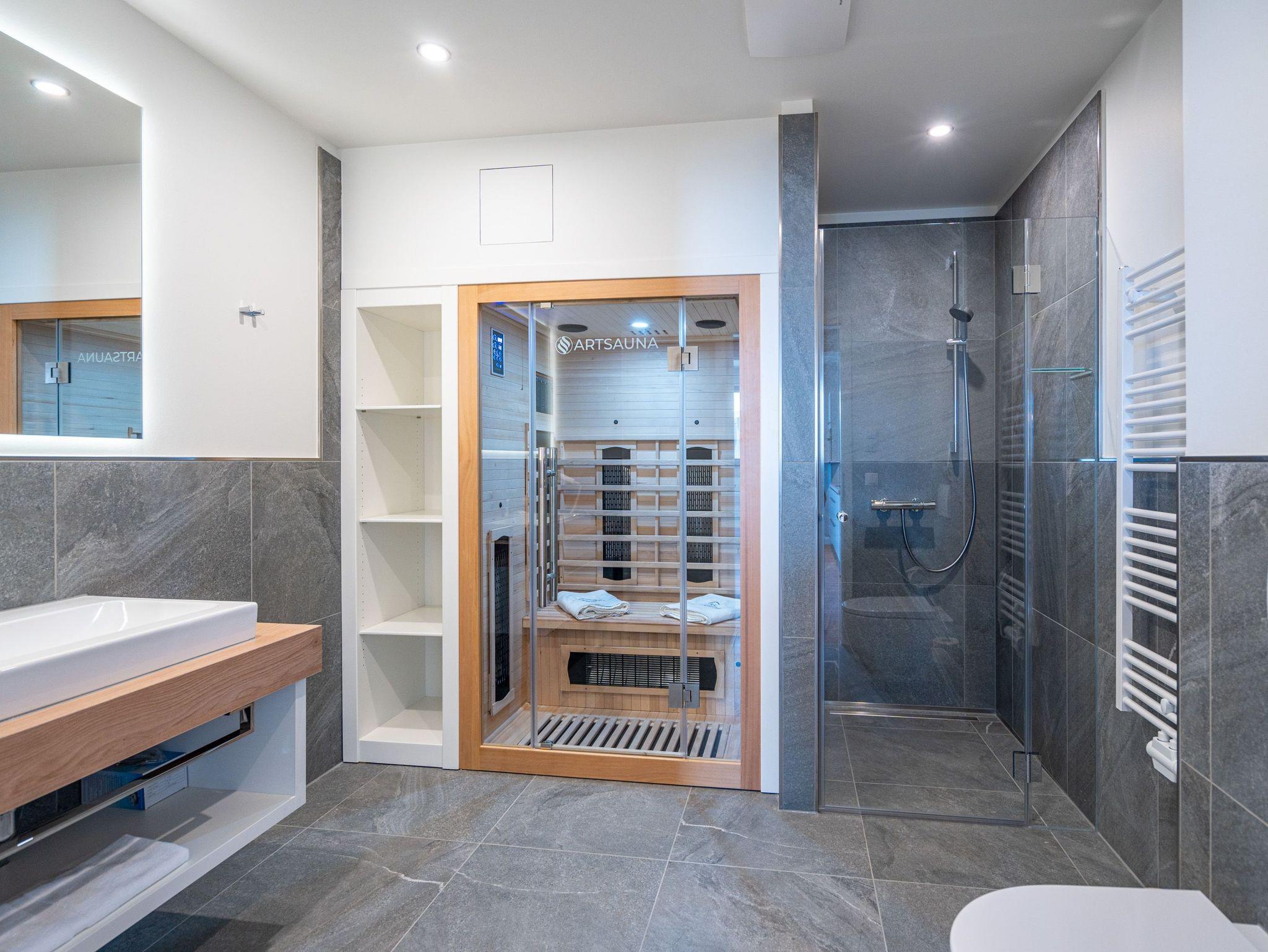 Die 2024 fertig gestellte Strandterrasse liegt direkt an der belebten Strandpromenade und bietet einen einzigartigen Ausblick auf die Grand Dame der historischen Seebrücken sowie die historische Konzertmuschel, einem beliebten Treffpunkt für Kunst und Kultur. Dahinter liegt die Ostsee ? ein Panorama, das zu den schönsten in den Kaiserbädern gehört. Es ist wie das Abtauchen in eine andere Zeit. In eine Zeit, in der man mit Stock, Sonnenschirm und Hut fürs „Sehen und gesehen werden“ über die Promenade schlenderte; aber auch in eine Zeit, in der ? damals wie heute ? Zeit einmal für eine kurze Weile keine Rolle spielt. Weil man angekommen ist im Loslassen, Entspannen und Genießen. Es ist dieser besondere Geruch nach Meeresluft und Freiheit, der in Erinnerung bleibt. Dazu die Bilder, die man mitnimmt. Von langen Strandspaziergängen, vom Lachen in fröhlich schäumenden Ostseewellen, von der Zeit in einem wunderschönen Urlaubsdomizil. Denn genau das ist die Strandterrasse mit ihren 56 modernen und exklusiven Ferienappartements direkt gegenüber der Ahlbecker Seebrücke. Die Ein-, Zwei- oder Dreizimmerwohnungen ? zwischen 40 und 70 Quadratmeter groß ? sind von einer Innenarchitektin gemeinsam mit unserem Erfahrungsschatz an Gästewünschen mit viel Liebe zum Detail und ganz individuell konzipiert worden. Entspannung und Wohlfühlen stehen an erster Stelle. Alles ist aufeinander abgestimmt und sorgt für eine gemütliche Atmosphäre. Wählen Sie zwischen einem Domizil in einem hellen, sandfarbenen Designkonzept oder einem Appartement mit anthrazitfarbenen Farbakzenten. Alle Appartements verfügen gleichermaßen über eine stilvolle und komfortable Einrichtung, die passgenau angefertigt worden ist, sowie über moderne Küchen und Bäder. Jedem Schlafzimmer ist ein eigenes Bad mit Dusche zugeordnet (außer App. B4.5). Die Appartements besitzen fast alle einen Balkon ? viele schauen sogar zur Ostsee hinaus. Die meisten Feriendomizile haben einen Elektrokamin und Infrarotsaunen. Im Erdgeschoss befindet sich ein separater Gemeinschaftsraum für Fahrräder. Außerdem besteht die Möglichkeit, im Gemeinschaftswaschraum 2 Waschmaschinen [&] Trockner zu nutzen. Ergänzt wird das Angebot durch eine Gemeinschaftssauna, die täglich von 11:00 bis 22:00 Uhr nutzbar ist. In der Tiefgarage (Einfahrtshöhe 2,03 Meter) steht für jede Wohnung 1 Pkw-Stellplatz zur Verfügung. Ist alles zur Zufriedenheit untergebracht? Dann kann der Urlaub ja beginnen. Und beim Blick vom Balkon über die Ostsee treffen sich zum Sonnenaufgang das Heute und das Damals. Gelassenheit legt sich beim Gang hinunter an den Strand auf die Seele. Jetzt darf die Zeit stehenbleiben.