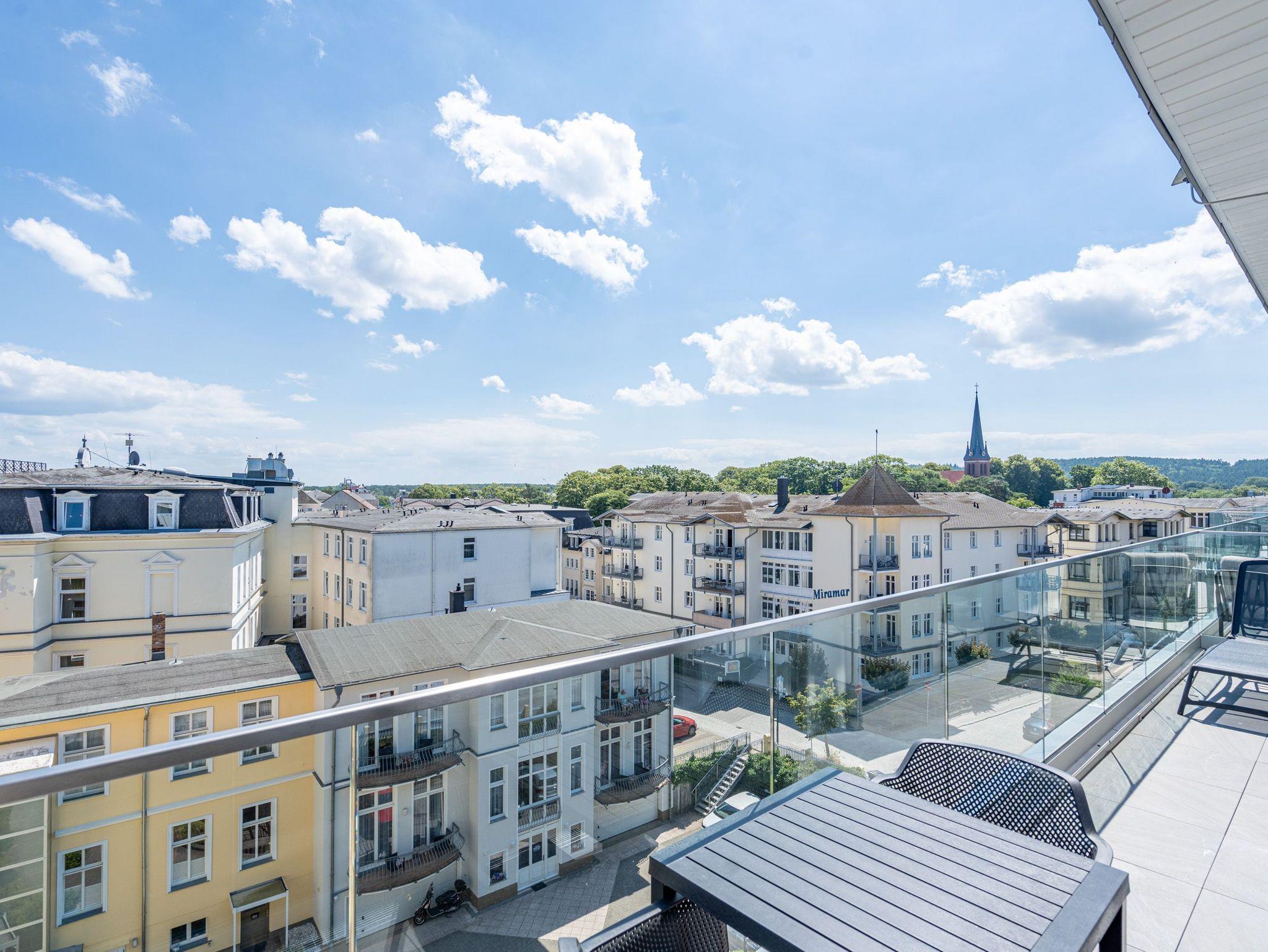 Die 2024 fertig gestellte Strandterrasse liegt direkt an der belebten Strandpromenade und bietet einen einzigartigen Ausblick auf die Grand Dame der historischen Seebrücken sowie die historische Konzertmuschel, einem beliebten Treffpunkt für Kunst und Kultur. Dahinter liegt die Ostsee ? ein Panorama, das zu den schönsten in den Kaiserbädern gehört. Es ist wie das Abtauchen in eine andere Zeit. In eine Zeit, in der man mit Stock, Sonnenschirm und Hut fürs ?Sehen und gesehen werden? über die Promenade schlenderte; aber auch in eine Zeit, in der ? damals wie heute ? Zeit einmal für eine kurze Weile keine Rolle spielt. Weil man angekommen ist im Loslassen, Entspannen und Genießen. Es ist dieser besondere Geruch nach Meeresluft und Freiheit, der in Erinnerung bleibt. Dazu die Bilder, die man mitnimmt. Von langen Strandspaziergängen, vom Lachen in fröhlich schäumenden Ostseewellen, von der Zeit in einem wunderschönen Urlaubsdomizil. Denn genau das ist die Strandterrasse mit ihren 56 modernen und exklusiven Ferienappartements direkt gegenüber der Ahlbecker Seebrücke. Die Ein-, Zwei- oder Dreizimmerwohnungen ? zwischen 40 und 70 Quadratmeter groß ? sind von einer Innenarchitektin gemeinsam mit unserem Erfahrungsschatz an Gästewünschen mit viel Liebe zum Detail und ganz individuell konzipiert worden. Entspannung und Wohlfühlen stehen an erster Stelle. Alles ist aufeinander abgestimmt und sorgt für eine gemütliche Atmosphäre. Wählen Sie zwischen einem Domizil in einem hellen, sandfarbenen Designkonzept oder einem Appartement mit anthrazitfarbenen Farbakzenten. Alle Appartements verfügen gleichermaßen über eine stilvolle und komfortable Einrichtung, die passgenau angefertigt worden ist, sowie über moderne Küchen und Bäder. Jedem Schlafzimmer ist ein eigenes Bad mit Dusche zugeordnet (außer App. B4.5). Die Appartements besitzen fast alle einen Balkon ? viele schauen sogar zur Ostsee hinaus. Die meisten Feriendomizile haben einen Elektrokamin und Infrarotsaunen. Im Erdgeschoss befindet sich ein separater Gemeinschaftsraum für Fahrräder. Außerdem besteht die Möglichkeit, im Gemeinschaftswaschraum 2 Waschmaschinen [&] Trockner zu nutzen. Ergänzt wird das Angebot durch eine Gemeinschaftssauna, die täglich von 11:00 bis 22:00 Uhr nutzbar ist. In der Tiefgarage (Einfahrtshöhe 2,03 Meter) steht für jede Wohnung 1 Pkw-Stellplatz zur Verfügung. Ist alles zur Zufriedenheit untergebracht? Dann kann der Urlaub ja beginnen. Und beim Blick vom Balkon über die Ostsee treffen sich zum Sonnenaufgang das Heute und das Damals. Gelassenheit legt sich beim Gang hinunter an den Strand auf die Seele. Jetzt darf die Zeit stehenbleiben.