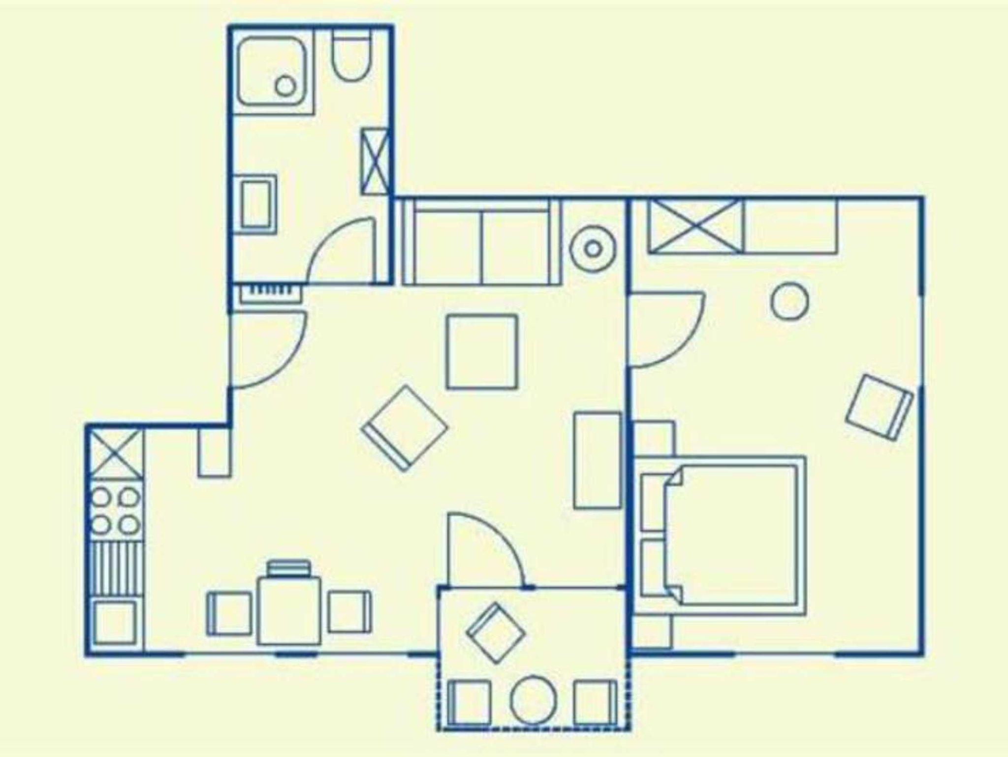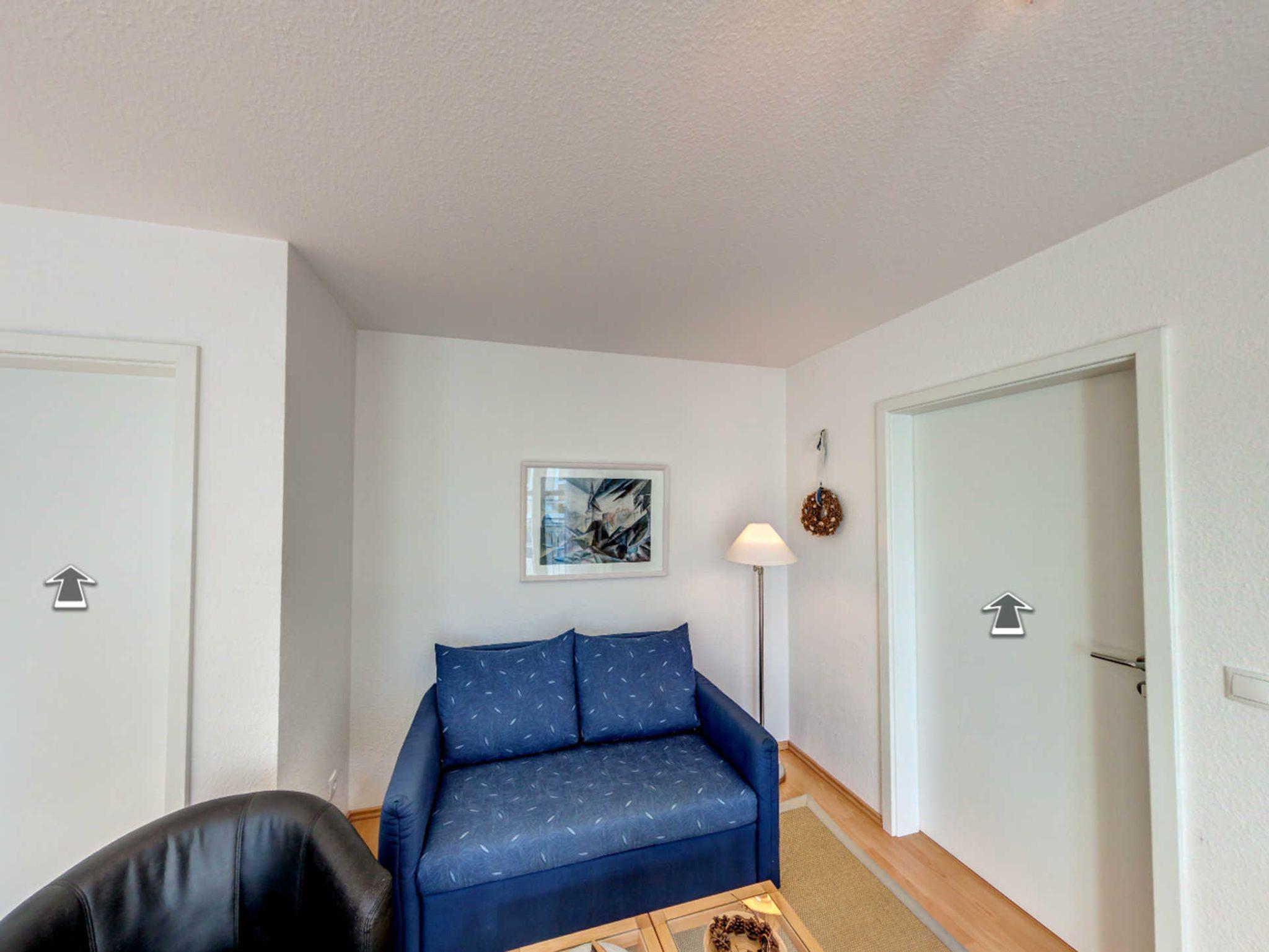 Das Appartement verfügt über ein separates Schlafzimmer mit einem Doppelbett. In den Wohnbereich mit gemütlicher Sitzgruppe und einem Essbereich ist eine offene und mit Kaffemaschine, Wasserkocher, Toaster, Mikrowelle und Geschirrspüler voll ausgestattete Küchenzeile integriert. Vom Wohnbereich aus gelangen Sie auch auf den Südbalkon, auf dem Sie bis Abends die Sonne genießen können. Das Bad ist mit Dusche und WC ausgestattet. Zum Appartement gehört ein kostenfreier Stellplatz in der hauseigenen Tiefgarage.