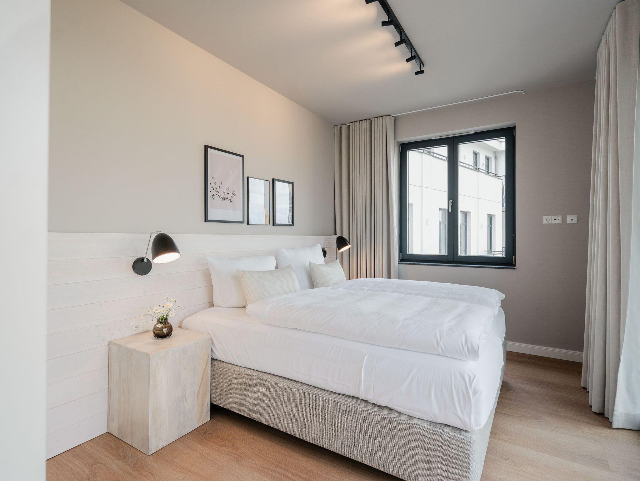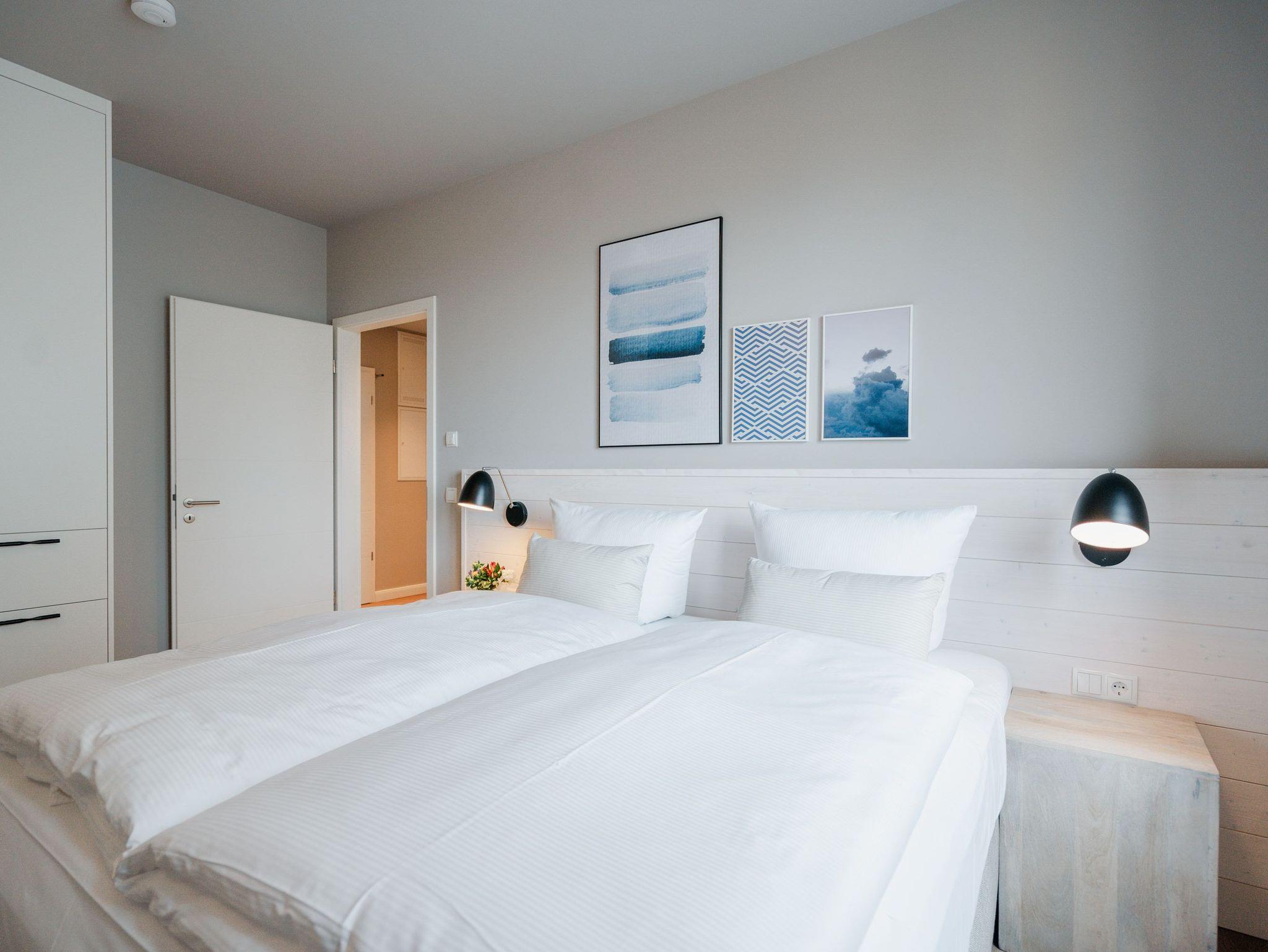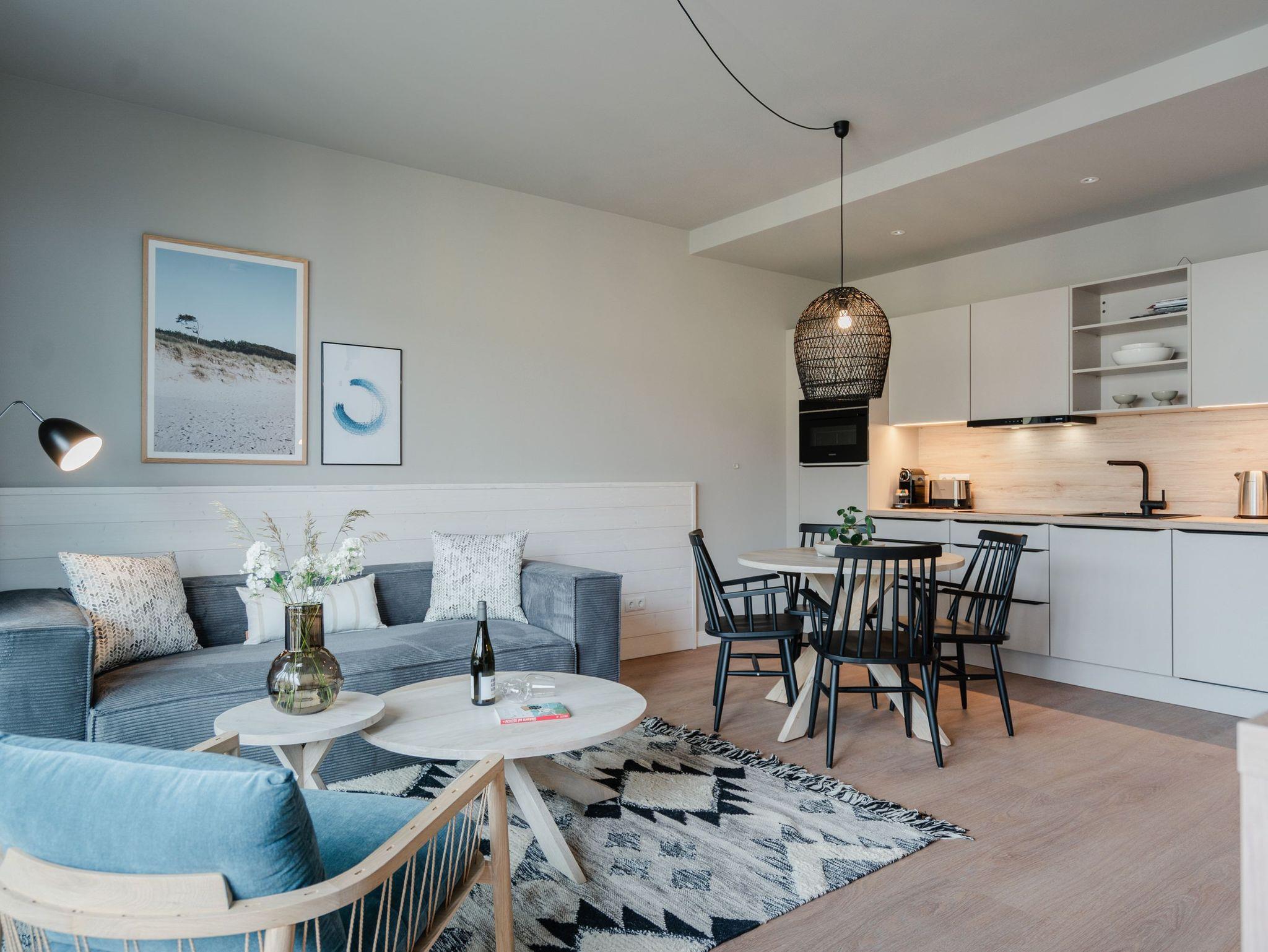 Drei Räume zum Verlieben bietet das Appartement B 2.2 in der 2. Etage der Strandterrasse. Helle, große Zimmer lassen viel Licht in dieses Auszeitparadies für bis zu 4 Personen. Die 76 Quadratmeter sind ein gemütliches und schickes Domizil, um gemeinsam mit der Familie oder mit Freunden eine unvergesslich schöne Zeit am Meer zu verbringen. Nordisches Design erwartet Sie im Wohn-Esszimmer und in den beiden Schlafzimmern. Dazu ist die Wohnung mit allen Annehmlichkeiten ausgestattet, die man für entspannte Tage brauchen kann. Die offene Küche verfügt über modernste Elektrogeräte wie einem Backofen , einen 4-Platten-Induktionsherd und eine Nespresso-Kapselmaschine. Ein gemütliches Wohnzimmer mit bequemem Sofa, Sessel und einem schönen, großen Esstisch sorgt für das ersehnte Urlaubsgefühl. Genießen Sie die Stunden vor dem Elektrokamin (ohne Wärmeabgabe) oder auf dem Balkon, der einen herrlichen, seitlichen Ausblick auf die Ostsee und auf die Seebrücke Ahlbeck gewährt. Was will man mehr. Ein Gartentisch mit Stühlen erlaubt sogar das Essen unter freiem Himmel. Die Süd-Ost-Ausrichtung ist perfekt für sonnige Frühstücke. Ein großer Flat-TV (50 Zoll) sorgt im Wohnzimmer für spannende Heimkinoabende. Zwei Schlafzimmer gibt es in dieser tollen Wohnung. Das erste Schlafzimmer verfügt über ein komfortables Boxspringdoppelbett (1,80m x 2,00m), einen Kleiderschrank, einen Flat-TV (43 Zoll) und den Zugang zu einem zweiten Balkon mit Gartenliege. Von hier aus können Sie auf die belebte Promenade von Ahlbeck und die dahinter liegende Ostsee schauen. Nur 80 Meter ist sie von Ihrem Domizil entfernt. Das zweite Schlafzimmer bietet ebenfalls ein Boxspringdoppelbett und einen Kleiderschrank sowie einen Flat-TV (32 Zoll). Die beiden Bäder sind mit Dusche, Waschtisch und WC ausgestattet. Sie lieben kuschelige Wärme? Dann entspannen Sie doch in der Infrarotsaunakabine, die in eines der beiden Bäder eingebaut ist. Alles ist da, damit Sie sich rundum wohlfühlen können. Sie brauchen also nur noch ankommen, Ihr Auto in der Tiefgarage auf Ihrem PKW-Stellplatz parken und schon kann die wundervolle Ostseeauszeit beginnen.