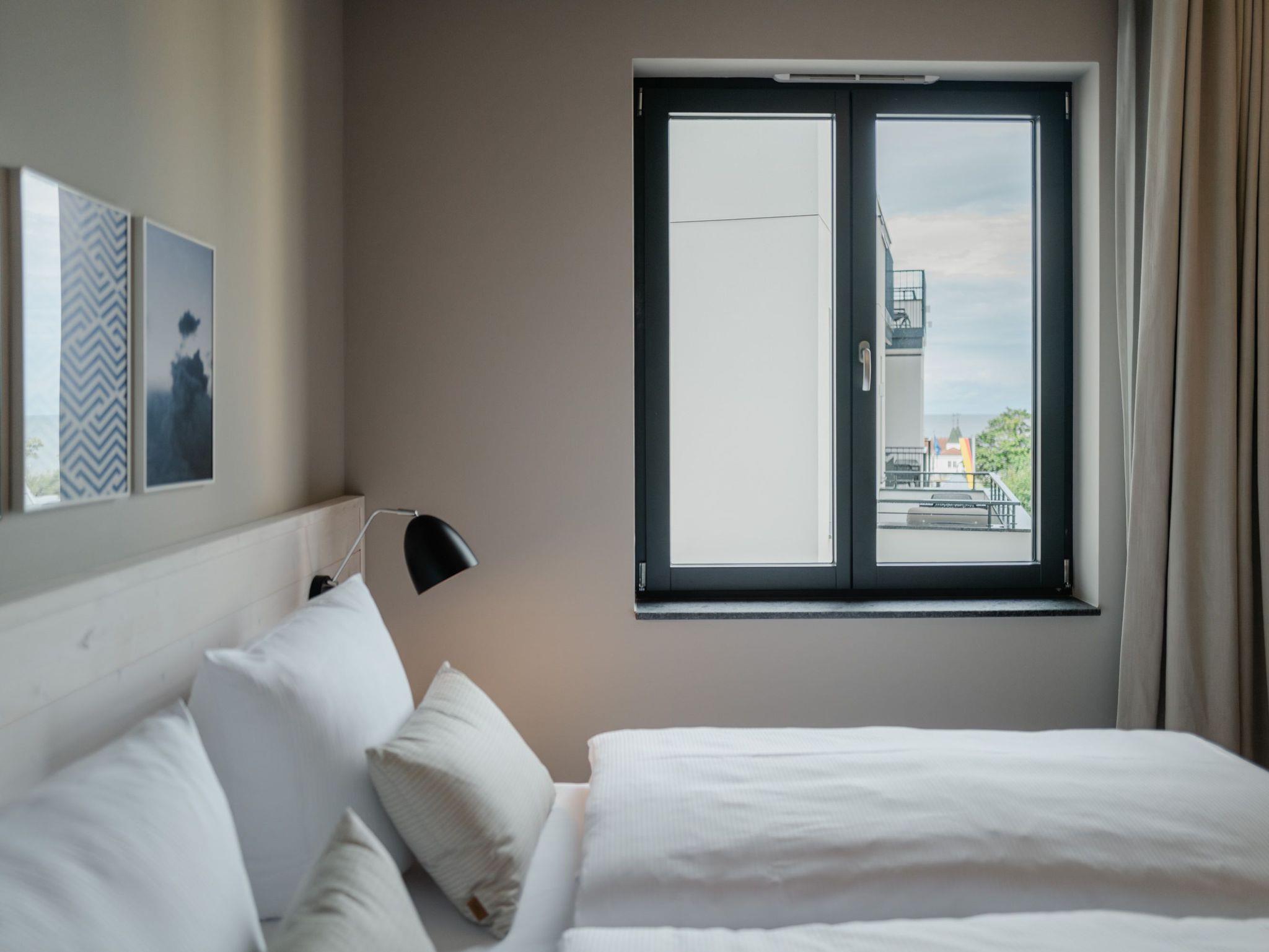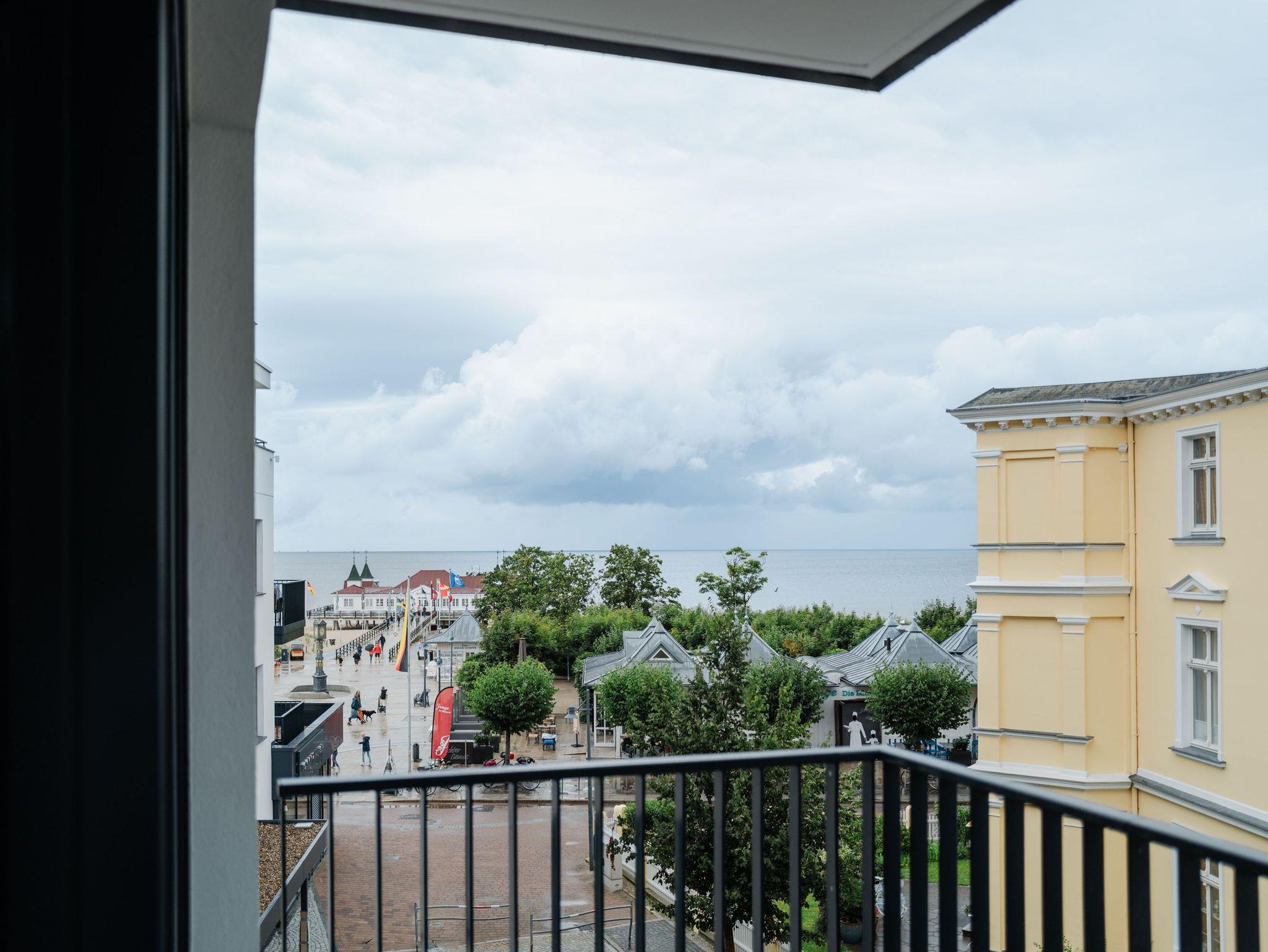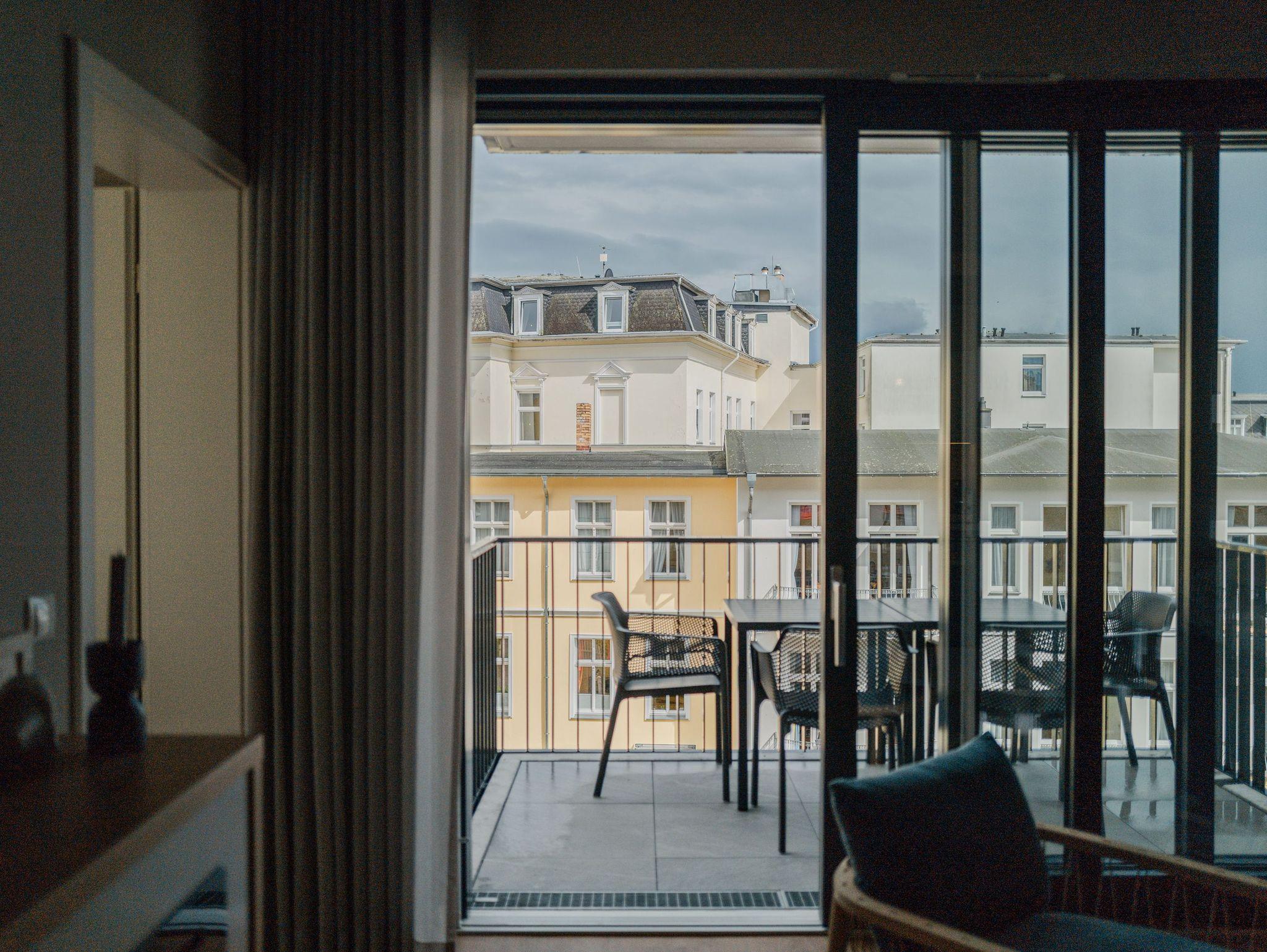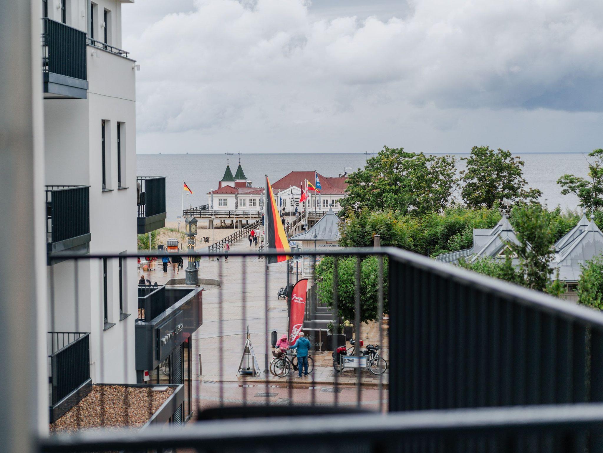 Die 2024 fertig gestellte Strandterrasse liegt direkt an der belebten Strandpromenade und bietet einen einzigartigen Ausblick auf die Grand Dame der historischen Seebrücken sowie die historische Konzertmuschel, einem beliebten Treffpunkt für Kunst und Kultur. Dahinter liegt die Ostsee ? ein Panorama, das zu den schönsten in den Kaiserbädern gehört. Es ist wie das Abtauchen in eine andere Zeit. In eine Zeit, in der man mit Stock, Sonnenschirm und Hut fürs ?Sehen und gesehen werden? über die Promenade schlenderte; aber auch in eine Zeit, in der ? damals wie heute ? Zeit einmal für eine kurze Weile keine Rolle spielt. Weil man angekommen ist im Loslassen, Entspannen und Genießen. Es ist dieser besondere Geruch nach Meeresluft und Freiheit, der in Erinnerung bleibt. Dazu die Bilder, die man mitnimmt. Von langen Strandspaziergängen, vom Lachen in fröhlich schäumenden Ostseewellen, von der Zeit in einem wunderschönen Urlaubsdomizil. Denn genau das ist die Strandterrasse mit ihren 56 modernen und exklusiven Ferienappartements direkt gegenüber der Ahlbecker Seebrücke. Die Ein-, Zwei- oder Dreizimmerwohnungen ? zwischen 40 und 70 Quadratmeter groß ? sind von einer Innenarchitektin gemeinsam mit unserem Erfahrungsschatz an Gästewünschen mit viel Liebe zum Detail und ganz individuell konzipiert worden. Entspannung und Wohlfühlen stehen an erster Stelle. Alles ist aufeinander abgestimmt und sorgt für eine gemütliche Atmosphäre. Wählen Sie zwischen einem Domizil in einem hellen, sandfarbenen Designkonzept oder einem Appartement mit anthrazitfarbenen Farbakzenten. Alle Appartements verfügen gleichermaßen über eine stilvolle und komfortable Einrichtung, die passgenau angefertigt worden ist, sowie über moderne Küchen und Bäder. Jedem Schlafzimmer ist ein eigenes Bad mit Dusche zugeordnet (außer App. B4.5). Die Appartements besitzen fast alle einen Balkon ? viele schauen sogar zur Ostsee hinaus. Die meisten Feriendomizile haben einen Elektrokamin und Infrarotsaunen. Im Erdgeschoss befindet sich ein separater Gemeinschaftsraum für Fahrräder. Außerdem besteht die Möglichkeit, im Gemeinschaftswaschraum 2 Waschmaschinen [&] Trockner zu nutzen. Ergänzt wird das Angebot durch eine Gemeinschaftssauna, die täglich von 11:00 bis 22:00 Uhr nutzbar ist. In der Tiefgarage (Einfahrtshöhe 2,03 Meter) steht für jede Wohnung 1 Pkw-Stellplatz zur Verfügung. Ist alles zur Zufriedenheit untergebracht? Dann kann der Urlaub ja beginnen. Und beim Blick vom Balkon über die Ostsee treffen sich zum Sonnenaufgang das Heute und das Damals. Gelassenheit legt sich beim Gang hinunter an den Strand auf die Seele. Jetzt darf die Zeit stehenbleiben.