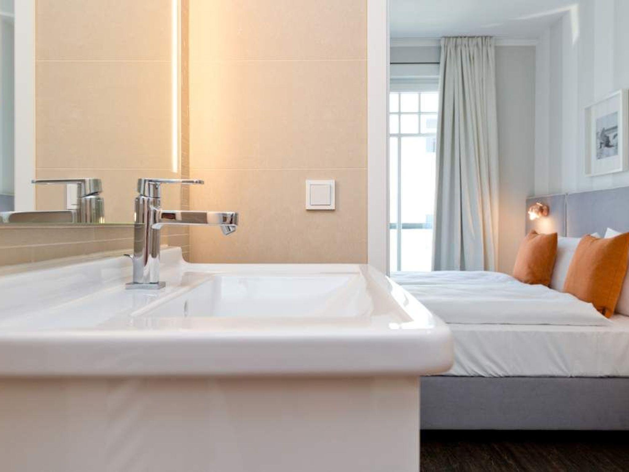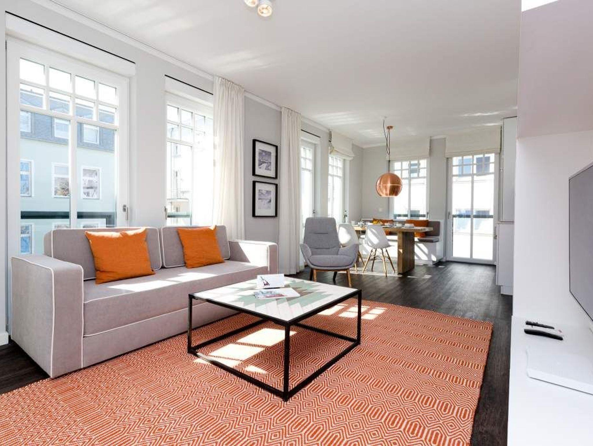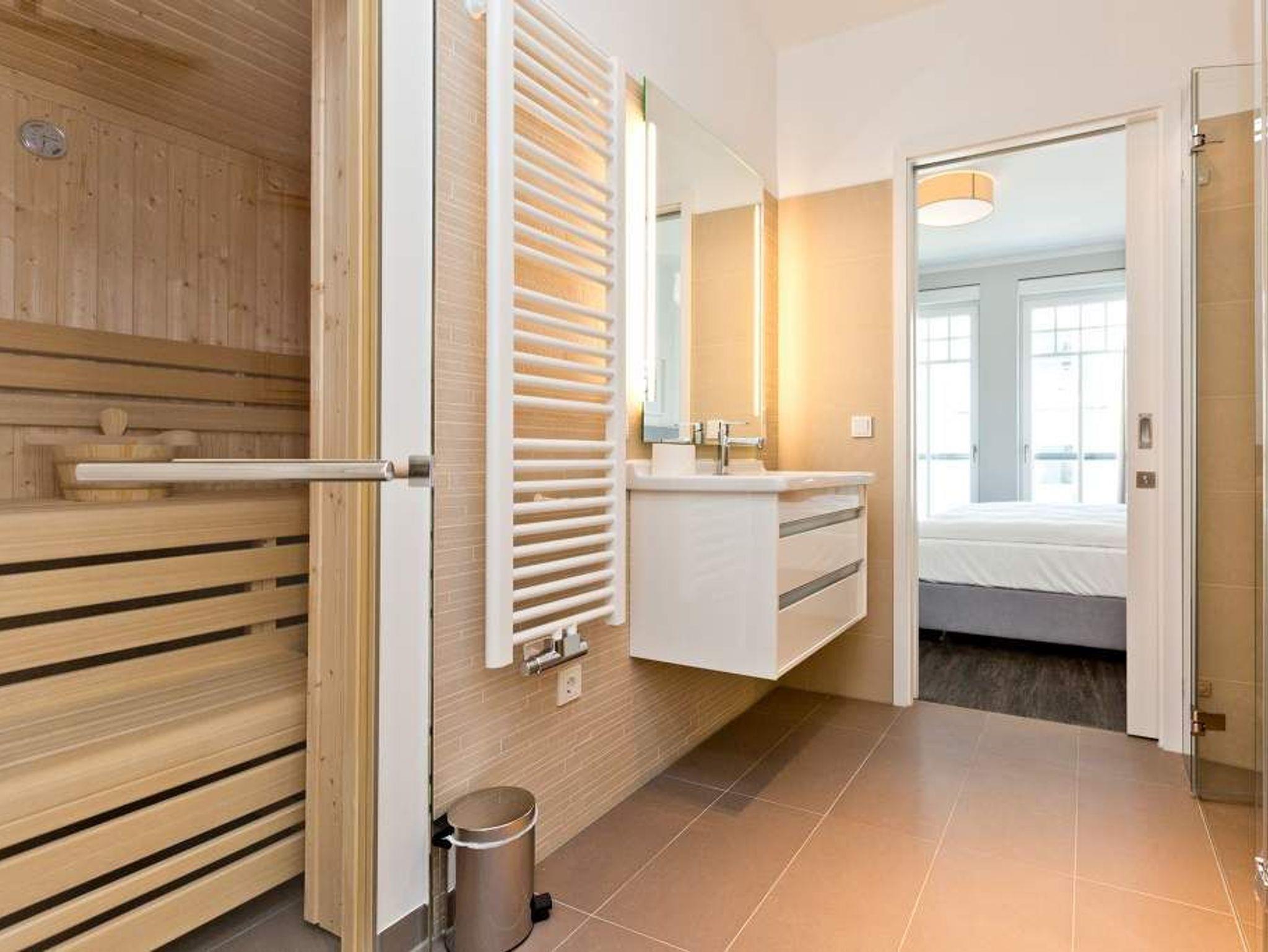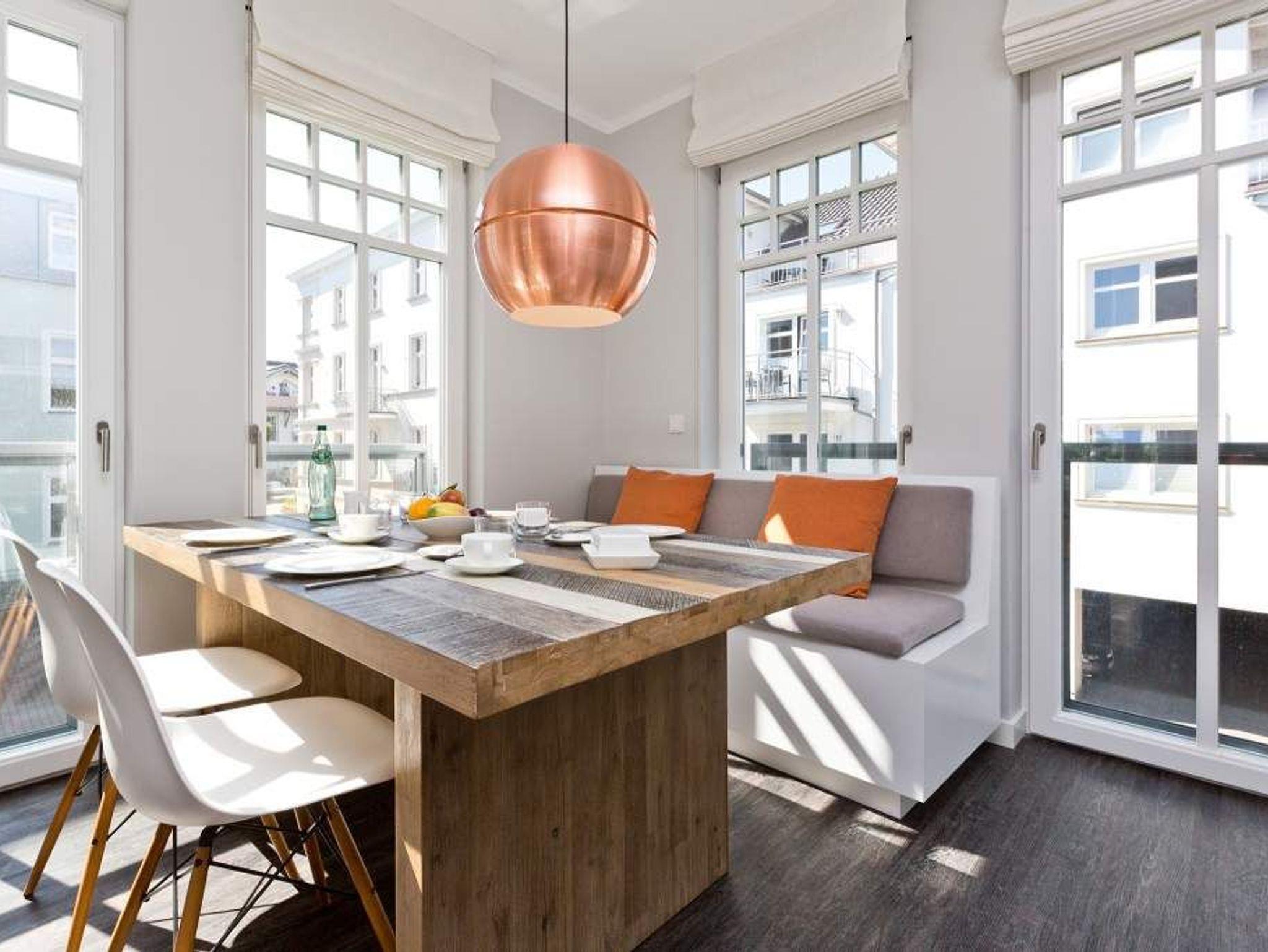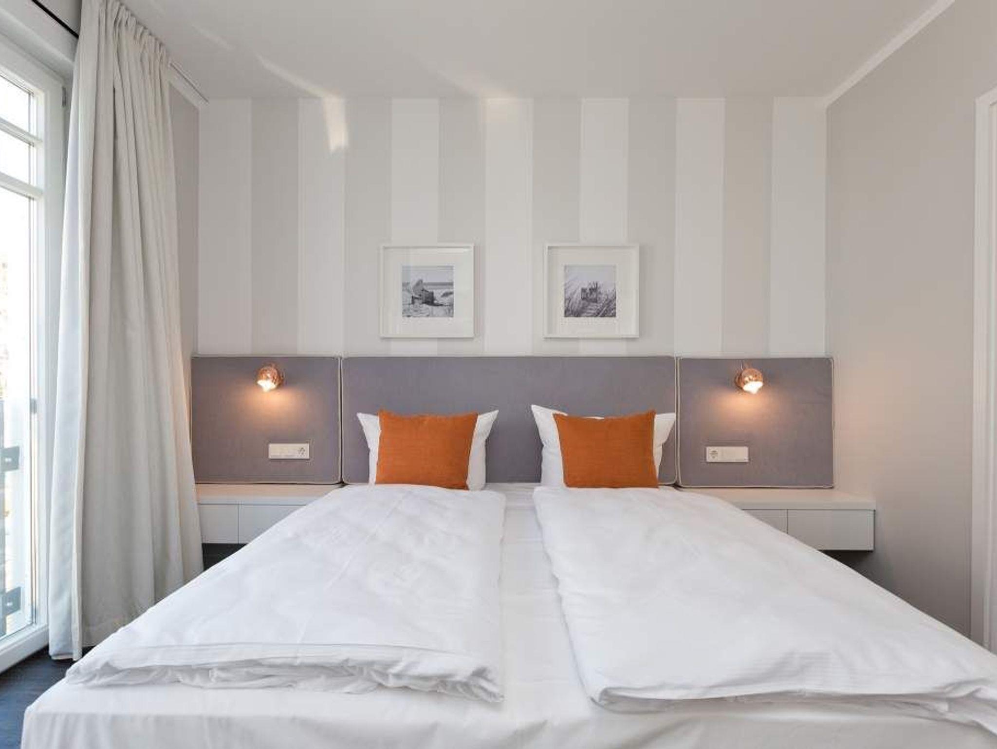 Absolut stylisch ist diese wunderschön eingerichtete Ferienwohnung für 4 Personen im ersten Obergeschoss der Villa Westend. Das 3-Raum-Appartement bietet auf 85 Quadratmetern Urlaubsfeeling der Extraklasse. Der hochwertige Vinylboden in Holzoptik ist besonders geräuscharm und allergikerfreundlich. Schlichte Eleganz durchzieht die Wohnung vom Couchtisch über den gemütlichen Sessel und die Retro-Schalenstühlen des Essbereiches bis hin zu den Lampen. Viel Holz, Licht, das durch große, bodentiefe Fenster hereinfällt und klare Formen ? sie sind das Markenzeichen skandinavischer Möbeldesigner. Der Elektro-Kamin ist ein echtes Highlight. Harmonisch fügt sich die offene Küche, ganz in Weiß gehalten, in die Gesamteinrichtung ein. Die Wohnung hat zwei Balkone, von denen einer seitlich den Blick auf die Ostsee freigibt. Jedes der beiden Schlafzimmer ist anders gestaltet ? jedes auf seine Art mit grafischen Design-Mustertapeten, harmonischen Farben und hochwertigen Boxspringdoppelbetten geschmackvoll und komfortabel eingerichtet. Im Masterbad ist eine finnische Sauna eingebaut. Die Duschen in den Bädern sind so geräumig, dass Sie sie gut zu Zweit genießen können. Für Ihren uneingeschränkten Komfort sind die Betten bezogen und Handtücher liegen bereit. Es steht Ihnen der Stellplatz 37 in der Tiefgarage zur Verfügung.