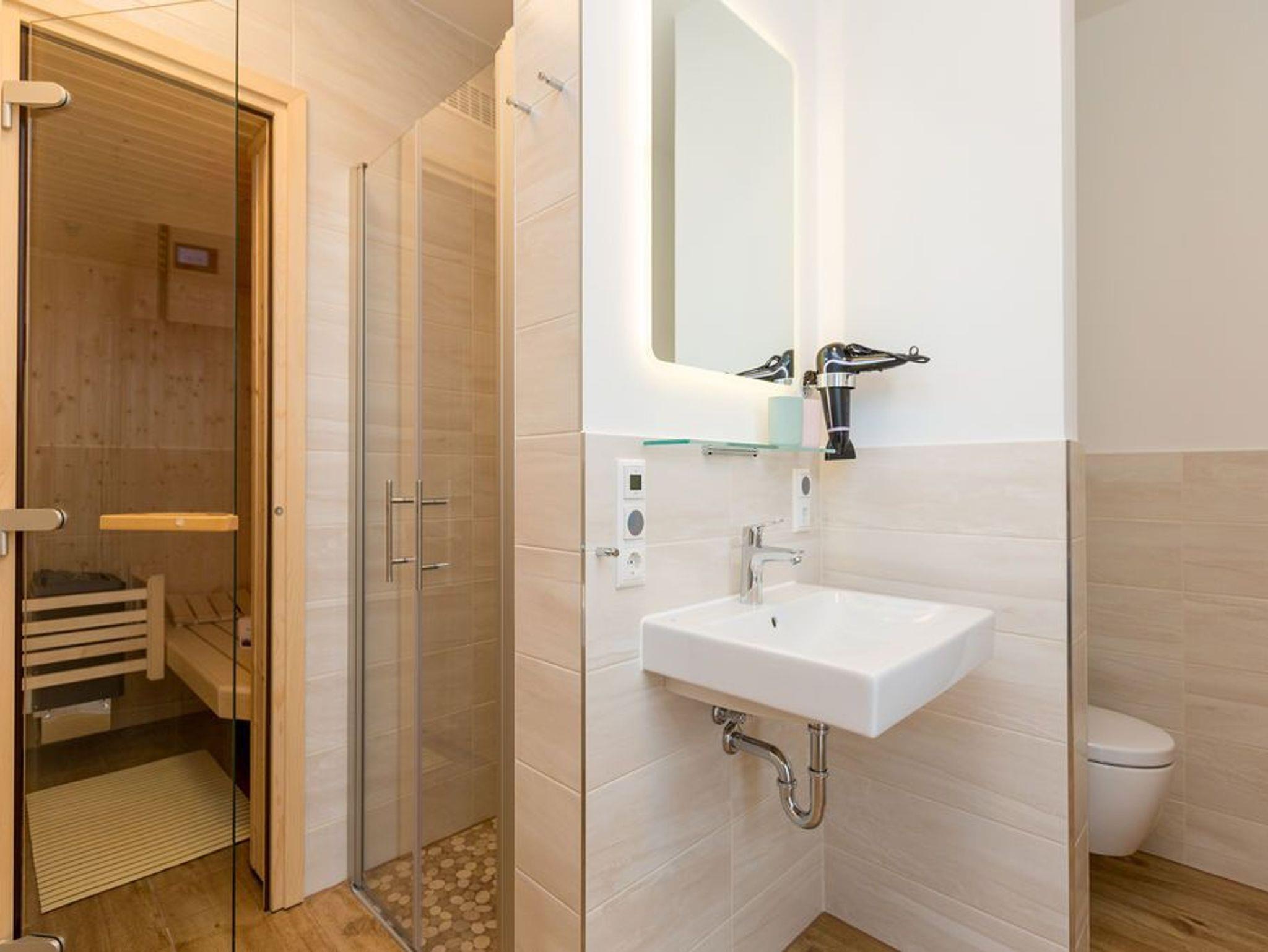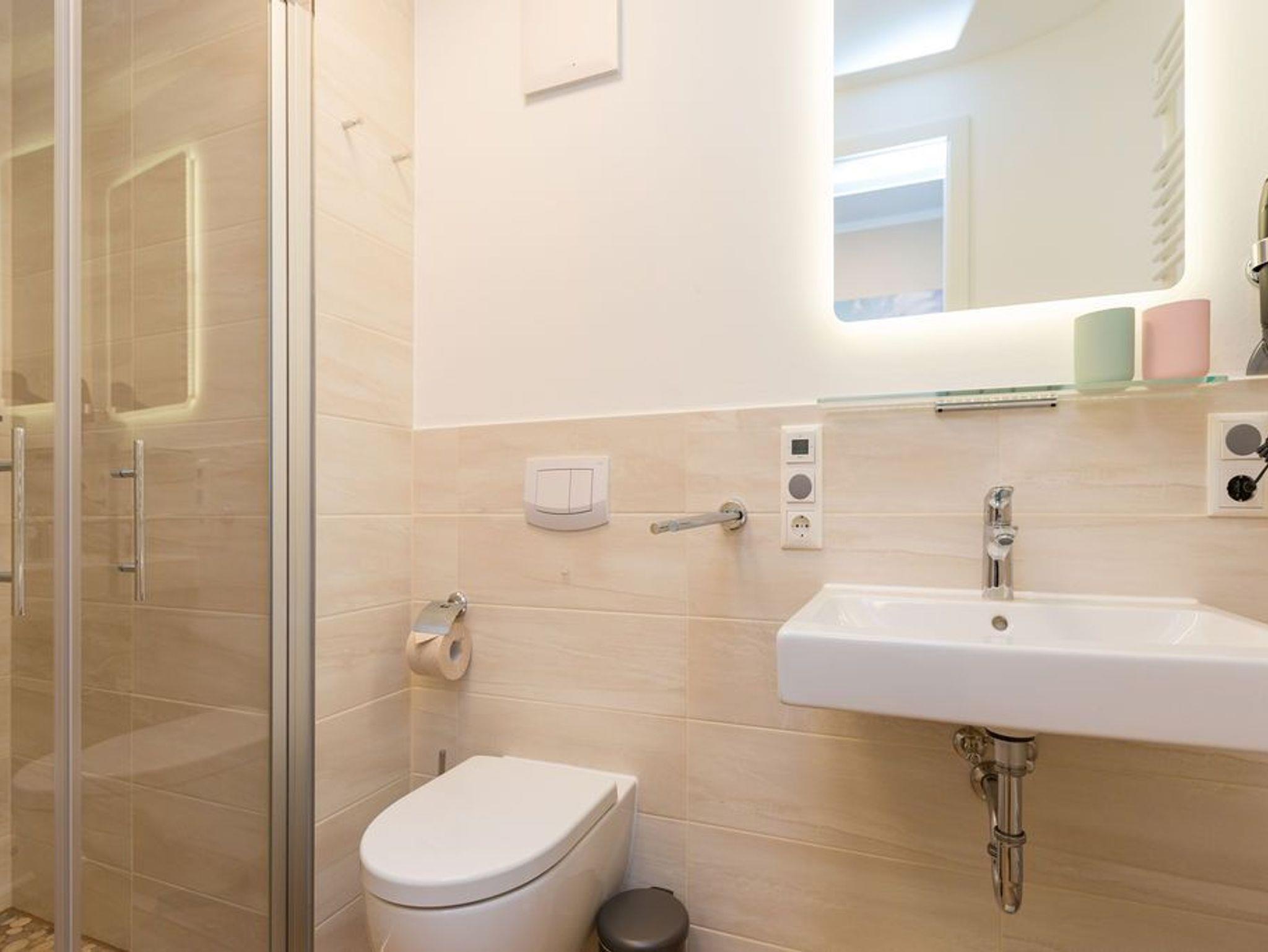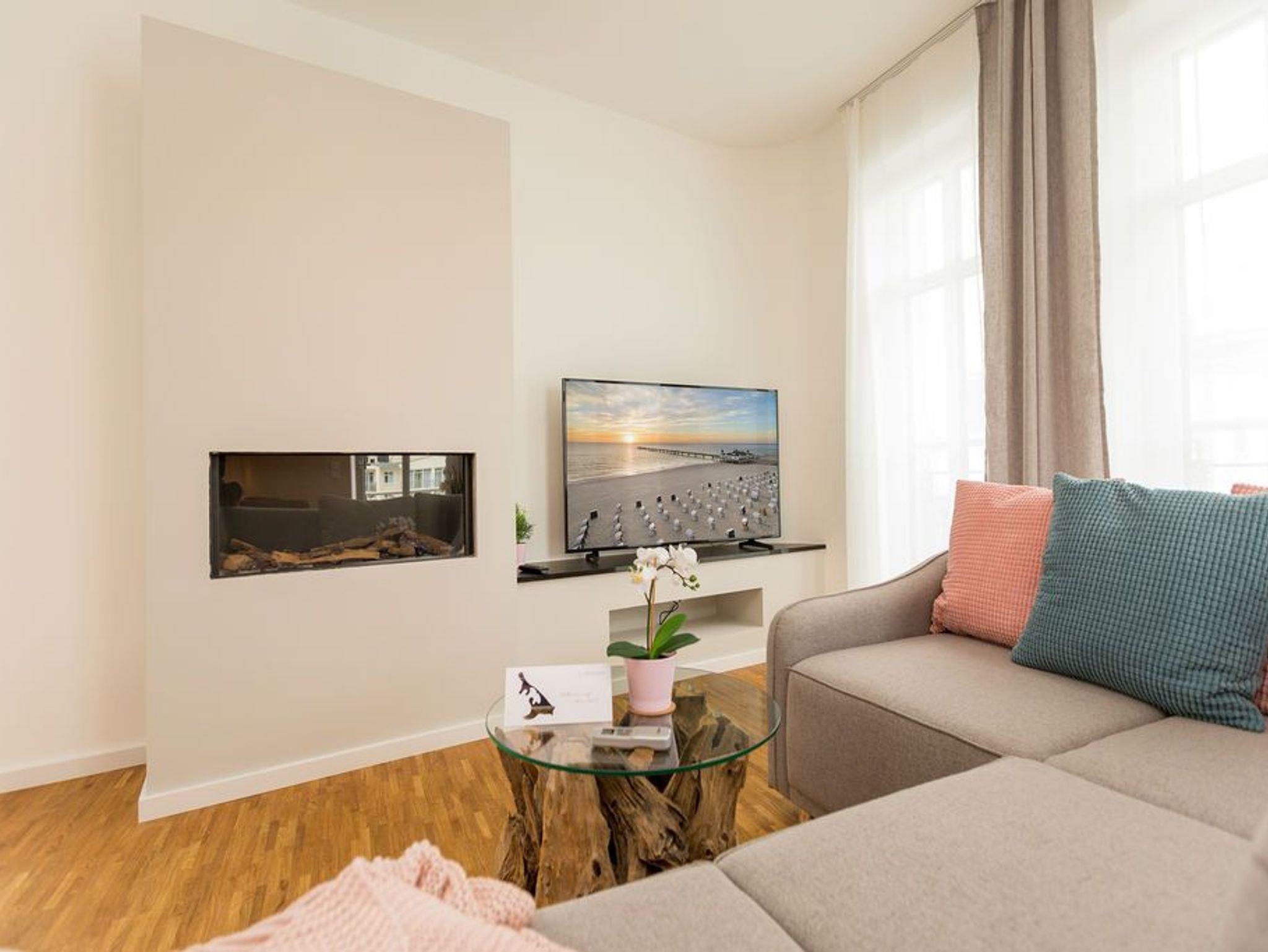 Über den Dächern des Seebades Ahlbeck in der Sonne liegen und den Ostseeurlaub genießen, das ist auf der 35 Quadratmeter großen Dachterrasse dieses wunderschönen Drei-Zimmer-Appartements im 2. Obergeschoss jederzeit möglich. Das Urlaubsgefühl stellt auf den 75 Quadratmetern ganz schnell ein. Bis zu vier Personen können in den drei Zimmern zusammen entspannen. Die Sonnenterrasse ist hier nur eines von vielen Wohn-Highlights, die Ihre Zeit auf der Insel Usedom zu einer unvergesslich schönen Auszeit machen werden. Im geräumigen und modern eingerichteten Wohnzimmer erwartet Sie durch die erlesenen Wohn-Accessoires viel Behaglichkeit. Eine große Sofalandschaft lädt zum Fallenlassen ein. Sie haben die Wahl: Entweder romantisches Flammenspiel im Gas-Kamin oder ein spannender Film auf dem großen Flat-TV. Der WLAN-Anschluss ist kostenfrei. Altes Holz neu konzipiert: Die Tische sind in dieser Wohnung etwas ganz Besonderes. Der Echtholz-Esstisch lädt zudem zu ausgiebigen Mahlzeiten ein. Ein schönes Plätzchen zum Plaudern und Essen. Zubereiten können Sie die Mahlzeiten gleich direkt in der offenen Wohnküche. Sie ist mit hochwertigen Markengeräten vollausgestattet. Auch Geschirr ist dort zu finden. In die Küchenzeile ist eine Waschmaschine integriert. Das Appartement verfügt über zwei Schlafzimmer. In beiden Zimmern schenkt Ihnen ein bequemes Boxspringdoppelbett (2 mal 1,80 m x 2,00 m) einen erholsamen Schlaf. Ein großer Kleiderschrank und ein Flat-TV gehören ebenfalls zur Ausstattung eines jeden Zimmers. Ein Schlafzimmer hat Zugang sowohl zu einem zweiten, kleinen Süd-Balkon als auch zum Masterbad mit Dusche, Waschtisch, WC und einer Finnischen Sauna. Hier können Sie an kühlen Tagen wunderbar Abschalten und Entspannen. Für ein unbeschwertes Urlaubsvergnügen liegen die Handtücher für Sie schon bereit und die Betten sind bezogen. Die schöne und möblierte Dachterrasse erreichen Sie über eine Wendeltreppe. In der Tiefgarage ist für Ihre Wohnung der Stellplatz 8 vorgesehen. Genießen Sie das schöne Ambiente dieses Feriendomizils, aus dem Sie garantiert nur ungern wieder abreisen.