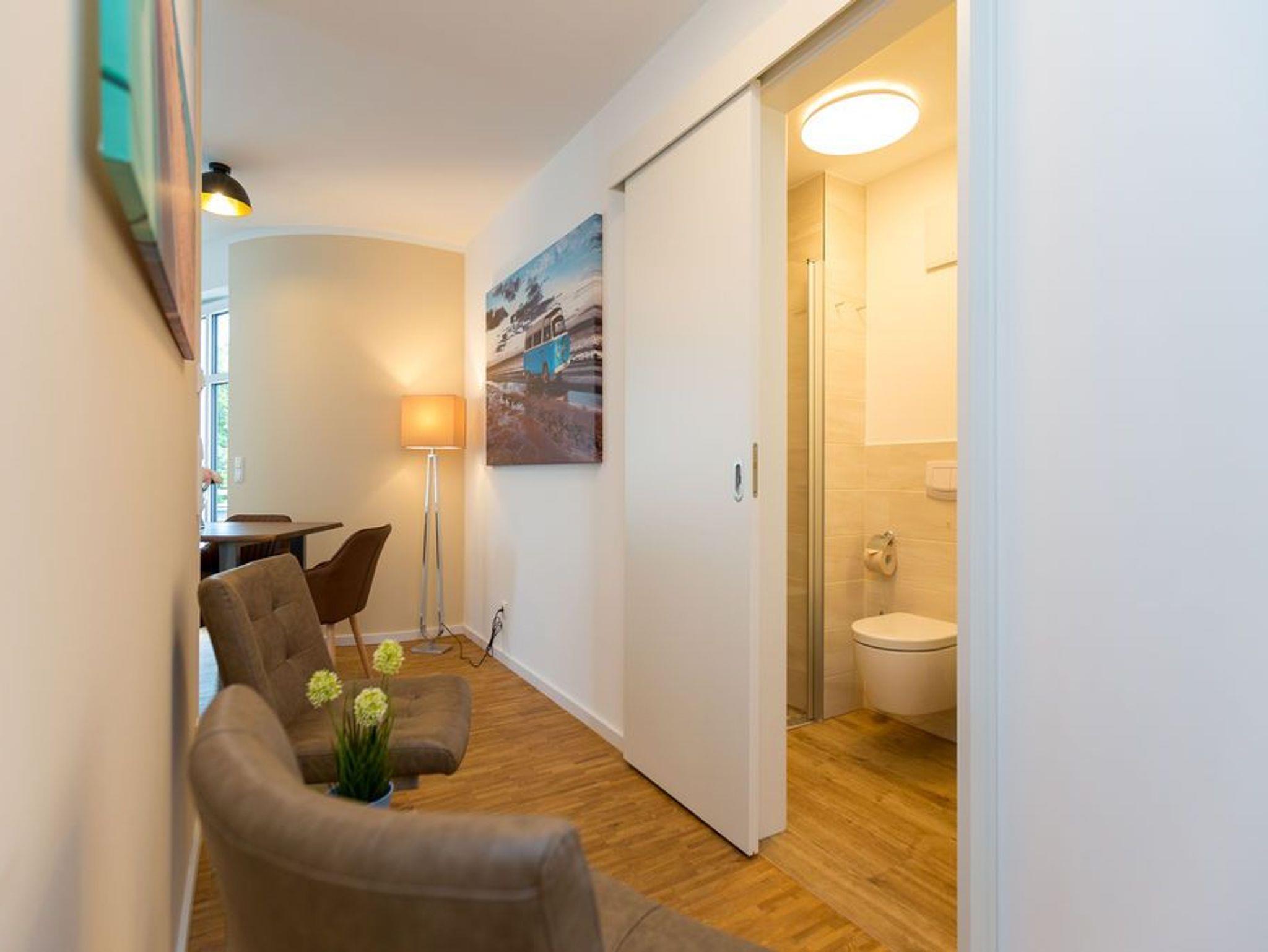 Mitten im Herzen des alten Seebades Ahlbeck wartet das neu gebaute Quartier gegenüber dem alten Kurpark nur darauf ostseehungrigen Auszeitlern mit einem exquisiten und komfortablen Domizil den ersehnten Urlaub zu verschönern. Und das in unmittelbarer Nähe zum Strand, zur Ostseeweite, zum Meeresrauschen. Nur ein paar Schritte entfernt ist das grenzenlose Meeres-Blau. Die berühmte Bäderarchitektur at its best umgibt das schmucke Ferienareal mit seinen 13 Appartements und verleiht dem Viertel mondänen Charme. Denn hier hat schon in den 1920er Jahren die Berliner Oberschicht die Sommerzeit verbracht. Das Quartier am Kurpark bietet mit seinen Zwei- und Drei-Zimmer-Appartements modernen Wohnkomfort in einem stylischen Ambiente. Jedes einzelne ist großzügig konzipiert und hat eine helle und gemütliche Atmosphäre. Die Einrichtungen sind geschmack- und stilvoll. Naturmaterialien und eine hochwertige Ausstattung zeichnen jedes einzelne Ferien-Appartement aus. In die Wohnungen in den Obergeschossen des Haupthauses gelangen Sie bequem mit dem Fahrstuhl. Alle Appartements besitzen Balkone oder Terrassen. Zur Ausstattung gehört zudem bei einigen eine vollausgestattete und hochwertige Küche, ein Kamin, eine Sauna, teilweise ein separates WC oder sogar Badezimmer sowie ein Tiefgaragenstellplatz (Tiefgarageneinfahrt/Höhe 2,05 m) . Aus den oberen Etagen haben Sie zum Teil Meerblick. Das an das Haupthaus angrenzende Gartenhaus verfügt über großzügig geschnittene Studios, die sich über zwei Etagen erstrecken. Wer nicht einfach nur eine Bleibe sucht, sondern sich im Urlaub mit Schönem umgeben möchte, findet im Quartier am Kurpark ein kleines Paradies auf Zeit.