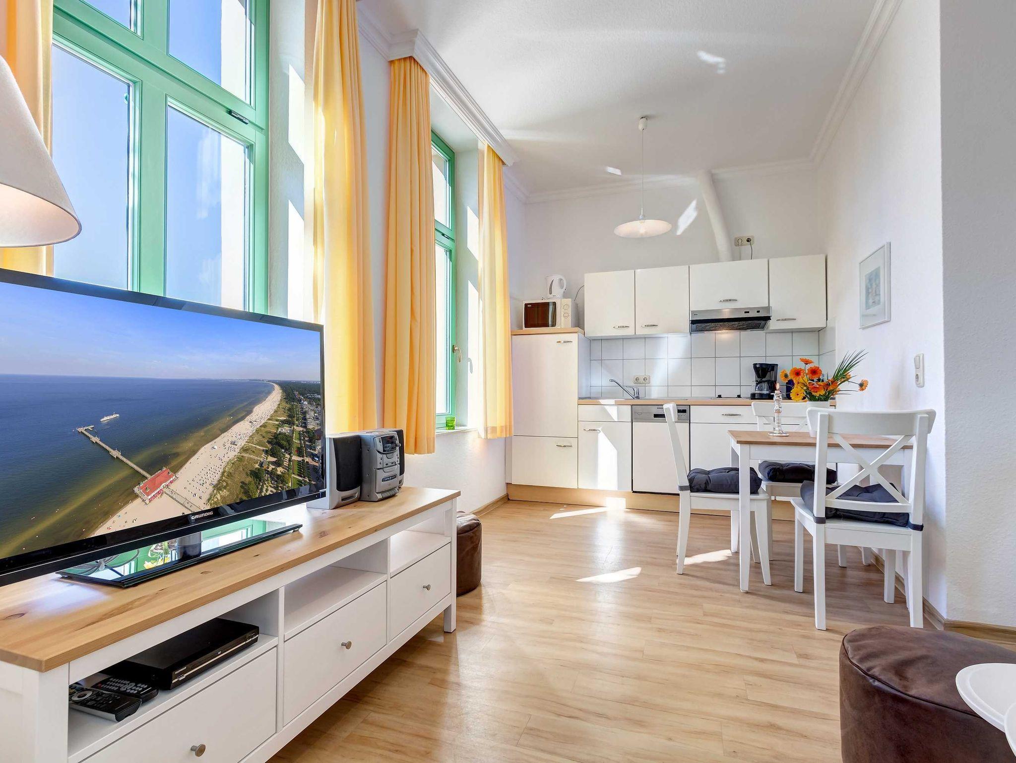 STRANDNAH mit SÜDBALKON! Nur ca. 100 m zur Strandpromenade! Schönes 2-Zimmer-Apartment mit gemütlicher und guter Ausstattung. Separates Schlafzimmer, Wohnzimmer mit Küchenzeile und Essplatz, Duschbad, Südbalkon. Die Wohnung verfügt über einen Pkw-Stellplatz . Abstellraum für Fahrräder und ähnliches ist vorhanden. Eine Sauna in der Villa Germania kann kostenpflichtig genutzt werden. Vom Haus aus können Sie das Ortszentrum und die bekannte Ahlbecker Seebrücke in ca. 3 bzw. 5 Minuten zu Fuß erreichen.