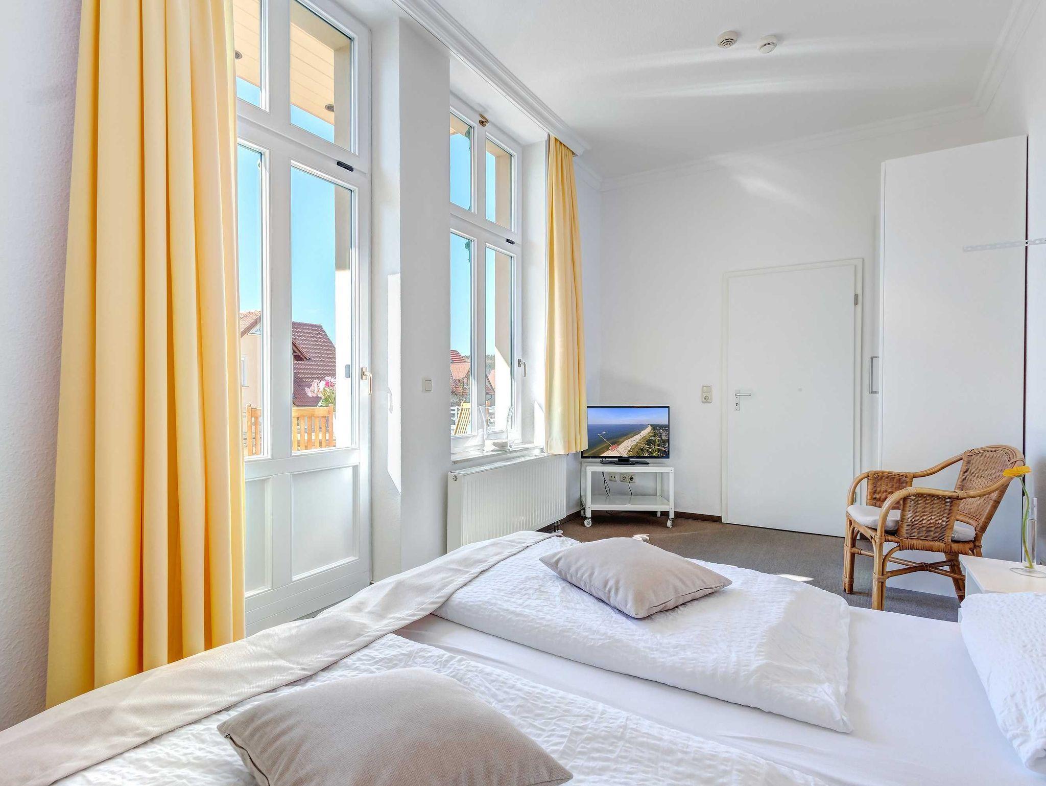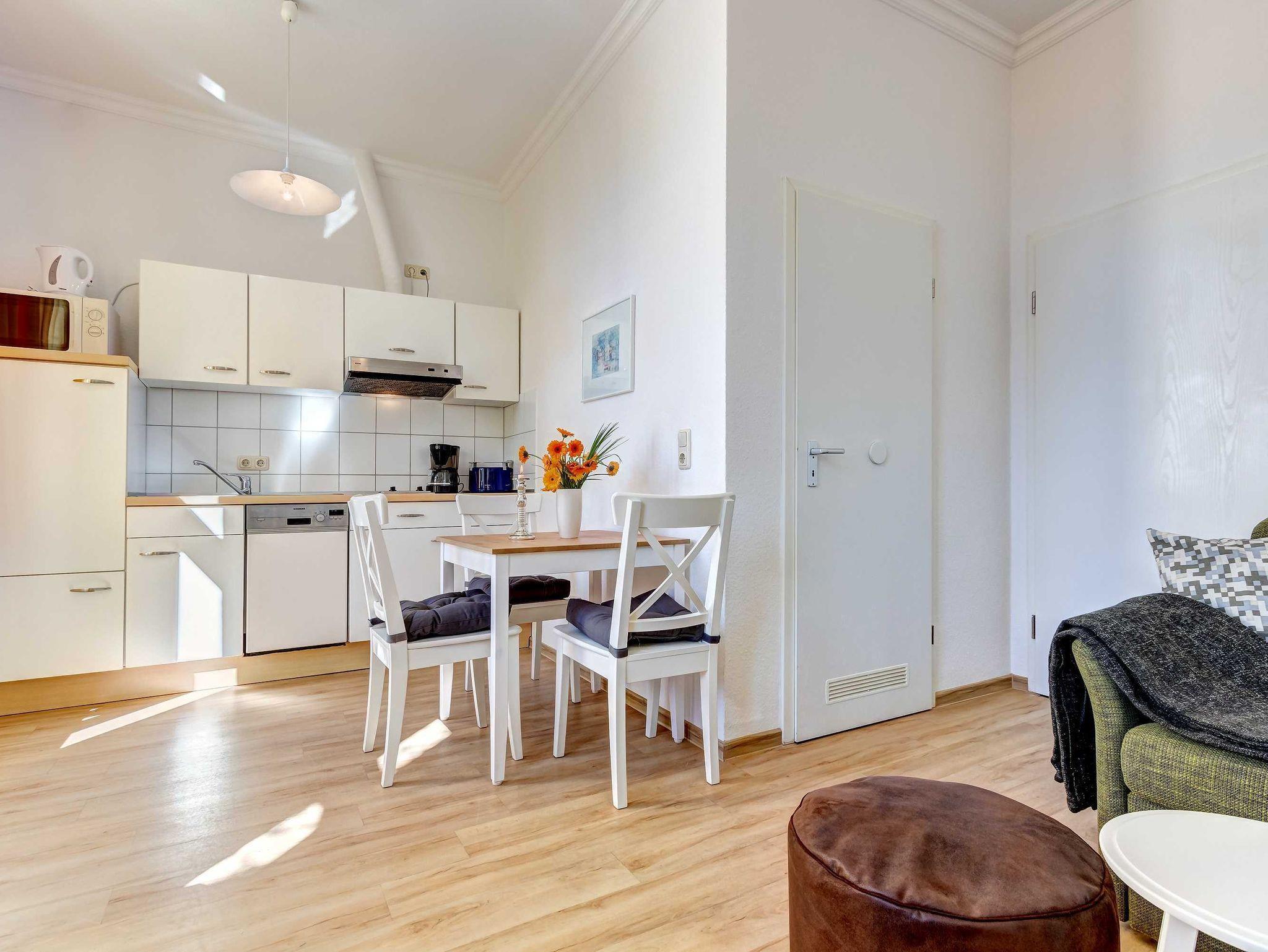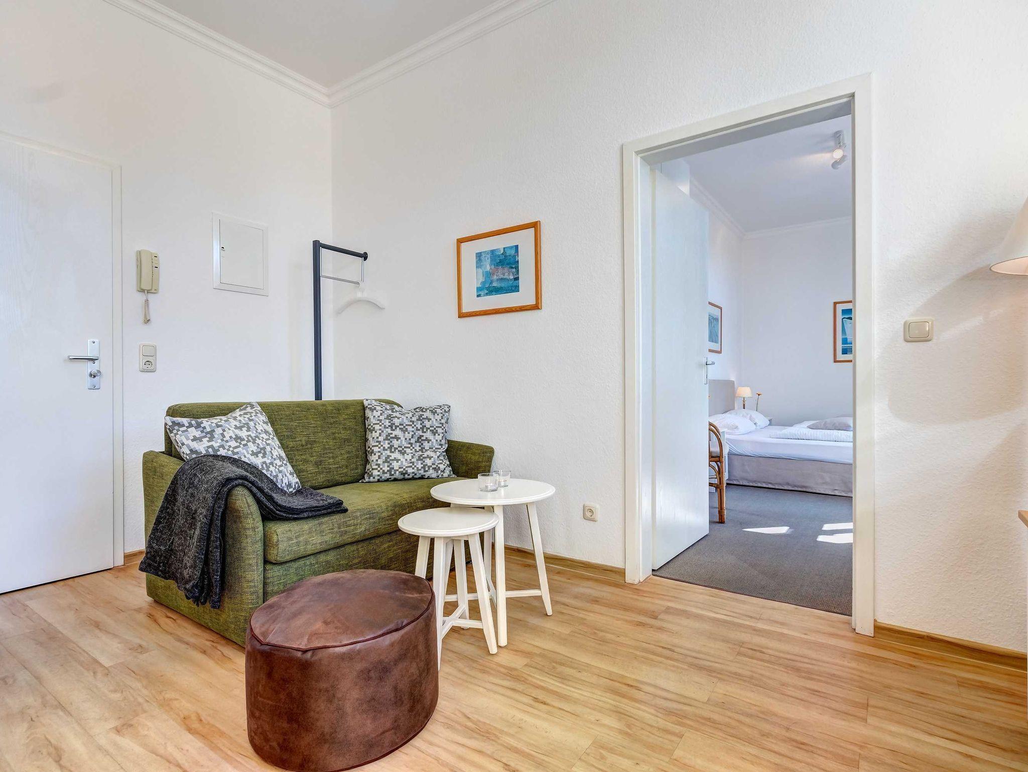 Das gemütliche 2-Zimmer-Appartement Nr. 12 befindet sich im ersten Obergeschoss der Villa Ostseewarte. Es verfügt über ein separates Schlafzimmer mit einem Doppelbett und einen Wohnbereich mit gemütlicher Sitzgruppe und integrierter voll ausgestatteten Küche mit Kaffeemaschine, Wasserkocher, Toaster , Mikrowelle sowie einem Essplatz. Das Bad ist mit Dusche und WC ausgestattet. Zum Appartement gehört darüber hinaus ein möblierter Südbalkon. Ein Pkw-Stellplatz steht Ihnen auf dem Grundstück kostenfrei zur Verfügung und Ihre Fahrräder können Sie ebenfalls auf dem Grundstück in einem separaten Abstellraum unterbringen. Alle Wohnungen in der Villa Ostseewarte haben passwortgeschütztem DSL-WLAN Internetzugang (gerätegebunden, Euro 1,50 pro Tag und Gerät). Ein FAHRSTUHL wurde nachträglich eingebaut. Eine Waschmaschine können Sie direkt im Haus gegen Gebühr nutzen (Münzgerät).