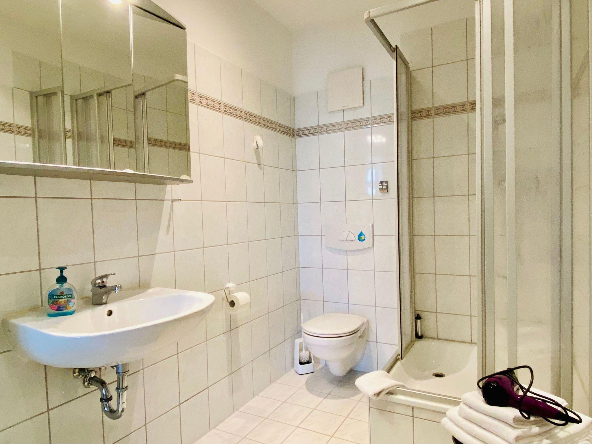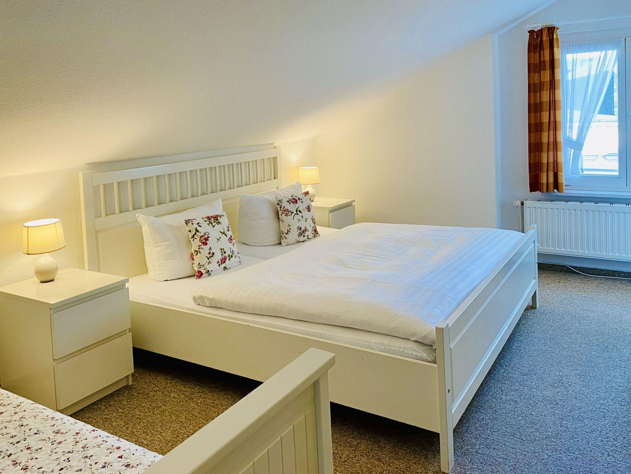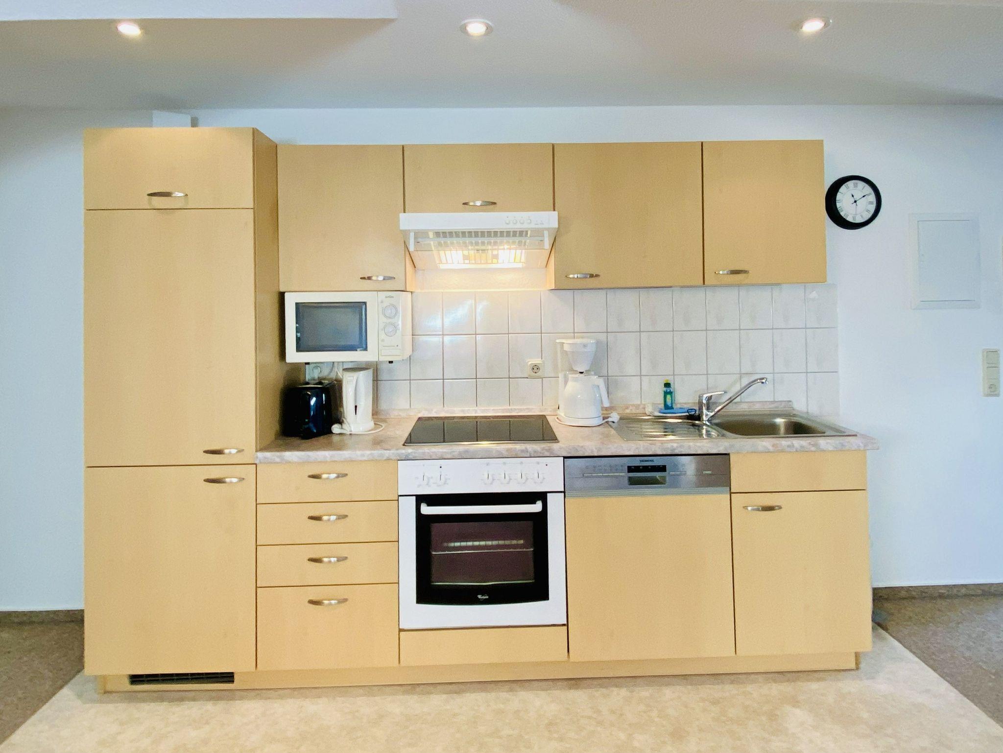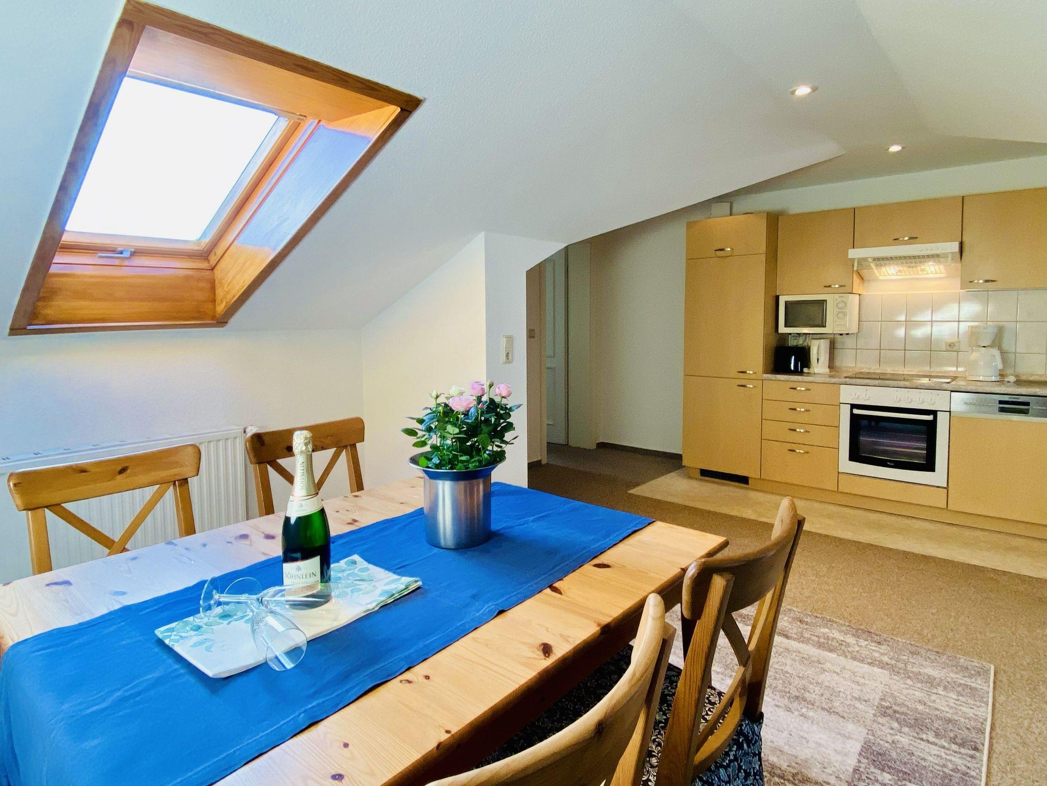 Genießen Sie Ihren Urlaub in dieser schönen 2-Raumwohnung unterm Dach. Das Wohnzimmer bietet durch eine funktionale Aufteilung von Wohn- Küchenbereich genug Platz für die gesamte Familie. In der Küche stehen Geschirrspüler, Backofen/Herd, Mikrowelle, ein Kühlschrank mit Gefrierteil sowie einen Esstisch zur Verfügung. Zur Wohnung gehört ein Schlafzimmer mit Doppelbett sowie eine Einzelbett. Das Badezimmer ist mit einer Dusche ausgestattet.