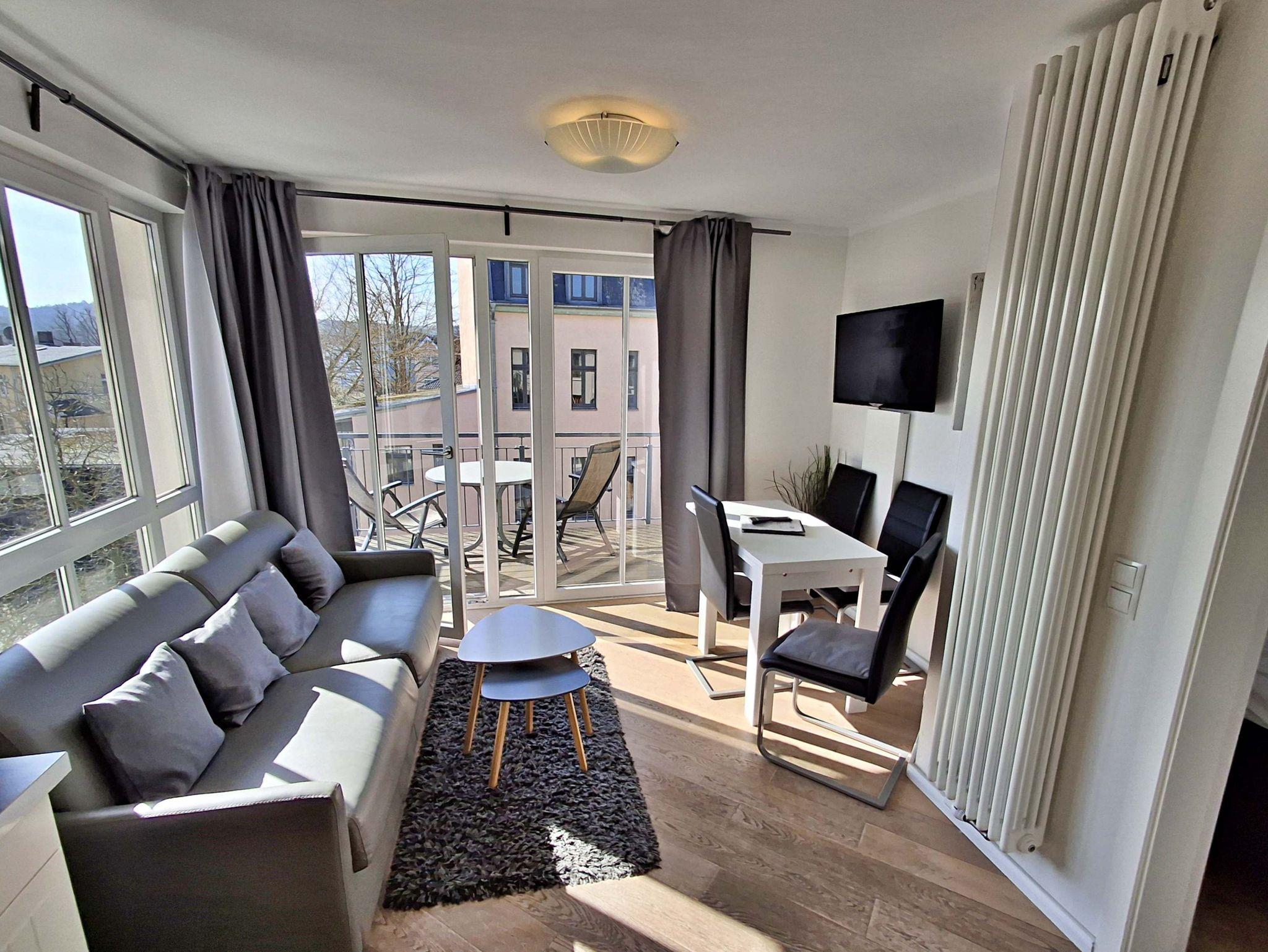Herzlich willkommen in der charmanten Ferienwohnung in der Villa Louise! Diese einladende 40 qm große Nichtraucherwohnung im zweiten Obergeschoss ist der perfekte Rückzugsort für Ihren Urlaub. Genießen Sie die frische Luft auf dem Balkon, wo Sie auch die Möglichkeit haben, eine Zigarette zu rauchen. Die Wohnung wurde 2009 liebevoll renoviert und bietet Ihnen eine voll ausgestattete Wohnküche, ein gemütliches Schlafzimmer sowie ein modernes Badezimmer mit Dusche/WC. Auf dem sonnigen Südbalkon können Sie schon morgens Ihren Kaffee genießen oder den Abend bei einem Glas Wein ausklingen lassen. Hier finden bis zu 4 Personen Platz, sodass Sie mit Familie oder Freunden unbeschwerte Tage verbringen können. Um Ihren Aufenthalt so angenehm wie möglich zu gestalten, steht Ihnen ein Internetanschluss zur Verfügung, ebenso wie ein Fernseher im Wohnbereich und ein weiterer im Schlafzimmer, das mit einem komfortablen Boxspringbett und einem elektronisch verstellbaren Lattenrost ausgestattet ist. Zudem können Sie den Tiefgaragenstellplatz und den separaten Fahrradabstellraum kostenfrei nutzen.
