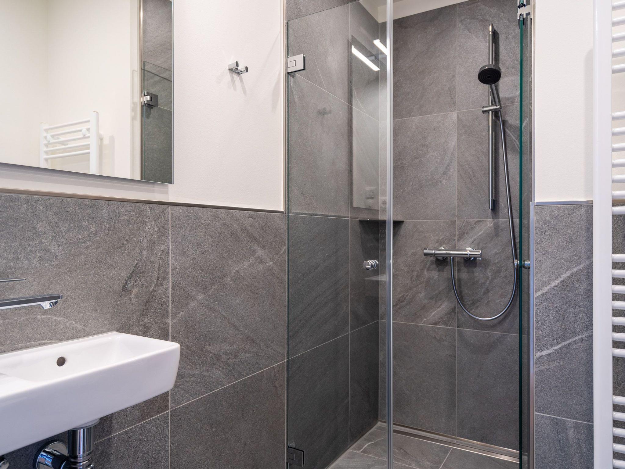 Die 2024 fertig gestellte Strandterrasse liegt direkt an der belebten Strandpromenade und bietet einen einzigartigen Ausblick auf die Grand Dame der historischen Seebrücken sowie die historische Konzertmuschel, einem beliebten Treffpunkt für Kunst und Kultur. Dahinter liegt die Ostsee ein Panorama, das zu den schönsten in den Kaiserbädern gehört. Es ist wie das Abtauchen in eine andere Zeit. In eine Zeit, in der man mit Stock, Sonnenschirm und Hut fürs Sehen und gesehen werden über die Promenade schlenderte; aber auch in eine Zeit, in der damals wie heute Zeit einmal für eine kurze Weile keine Rolle spielt. Weil man angekommen ist im Loslassen, Entspannen und Genießen. Es ist dieser besondere Geruch nach Meeresluft und Freiheit, der in Erinnerung bleibt. Dazu die Bilder, die man mitnimmt. Von langen Strandspaziergängen, vom Lachen in fröhlich schäumenden Ostseewellen, von der Zeit in einem wunderschönen Urlaubsdomizil. Denn genau das ist die Strandterrasse mit ihren 56 modernen und exklusiven Ferienappartements direkt gegenüber der Ahlbecker Seebrücke. Die Ein-, Zwei- oder Dreizimmerwohnungen zwischen 40 und 70 Quadratmeter groß sind von einer Innenarchitektin gemeinsam mit unserem Erfahrungsschatz an Gästewünschen mit viel Liebe zum Detail und ganz individuell konzipiert worden. Entspannung und Wohlfühlen stehen an erster Stelle. Alles ist aufeinander abgestimmt und sorgt für eine gemütliche Atmosphäre. Wählen Sie zwischen einem Domizil in einem hellen, sandfarbenen Designkonzept oder einem Appartement mit anthrazitfarbenen Farbakzenten. Alle Appartements verfügen gleichermaßen über eine stilvolle und komfortable Einrichtung, die passgenau angefertigt worden ist, sowie über moderne Küchen und Bäder. Jedem Schlafzimmer ist ein eigenes Bad mit Dusche zugeordnet (außer App. B4.5). Die Appartements besitzen fast alle einen Balkon viele schauen sogar zur Ostsee hinaus. Die meisten Feriendomizile haben einen Elektrokamin und Infrarotsaunen. Im Erdgeschoss befindet sich ein separater Gemeinschaftsraum für Fahrräder. Außerdem besteht die Möglichkeit, im Gemeinschaftswaschraum 2 Waschmaschinen [&] Trockner zu nutzen. Ergänzt wird das Angebot durch eine Gemeinschaftssauna, die täglich von 11:00 bis 22:00 Uhr nutzbar ist. In der Tiefgarage (Einfahrtshöhe 2,03 Meter) steht für jede Wohnung 1 Pkw-Stellplatz zur Verfügung. Ist alles zur Zufriedenheit untergebracht? Dann kann der Urlaub ja beginnen. Und beim Blick vom Balkon über die Ostsee treffen sich zum Sonnenaufgang das Heute und das Damals. Gelassenheit legt sich beim Gang hinunter an den Strand auf die Seele. Jetzt darf die Zeit stehenbleiben.