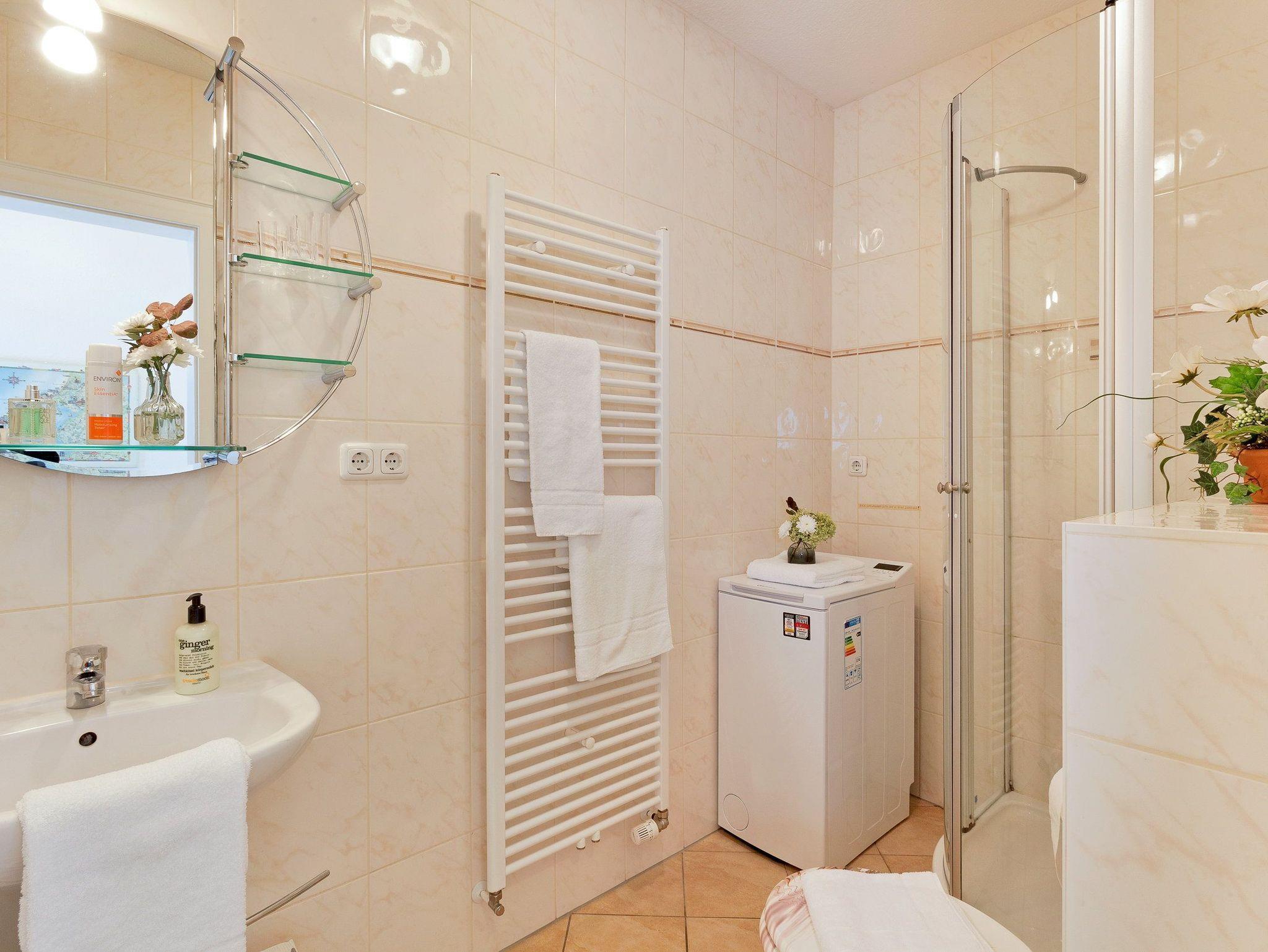 Damit Sie Ihre wohlverdiente Urlaubszeit bereits am Anreisetag in vollen Zügen genießen können, haben wir das Bett für Sie und das für Ihre lieben Mitreisenden bereits bezogen und ein Duschtuch sowie ein kleines Handtuch bereitgelegt. Das Badezimmer ist vom Wohnbereich begehbar und mit Dusche, WC, Haartrockner sowie einer Waschmaschine ausgestattet. Auf der sonnigen Südterrasse können Sie einen erlebnisreichen Urlaubstag unter freiem Himmel entspannt ausklingen lassen.