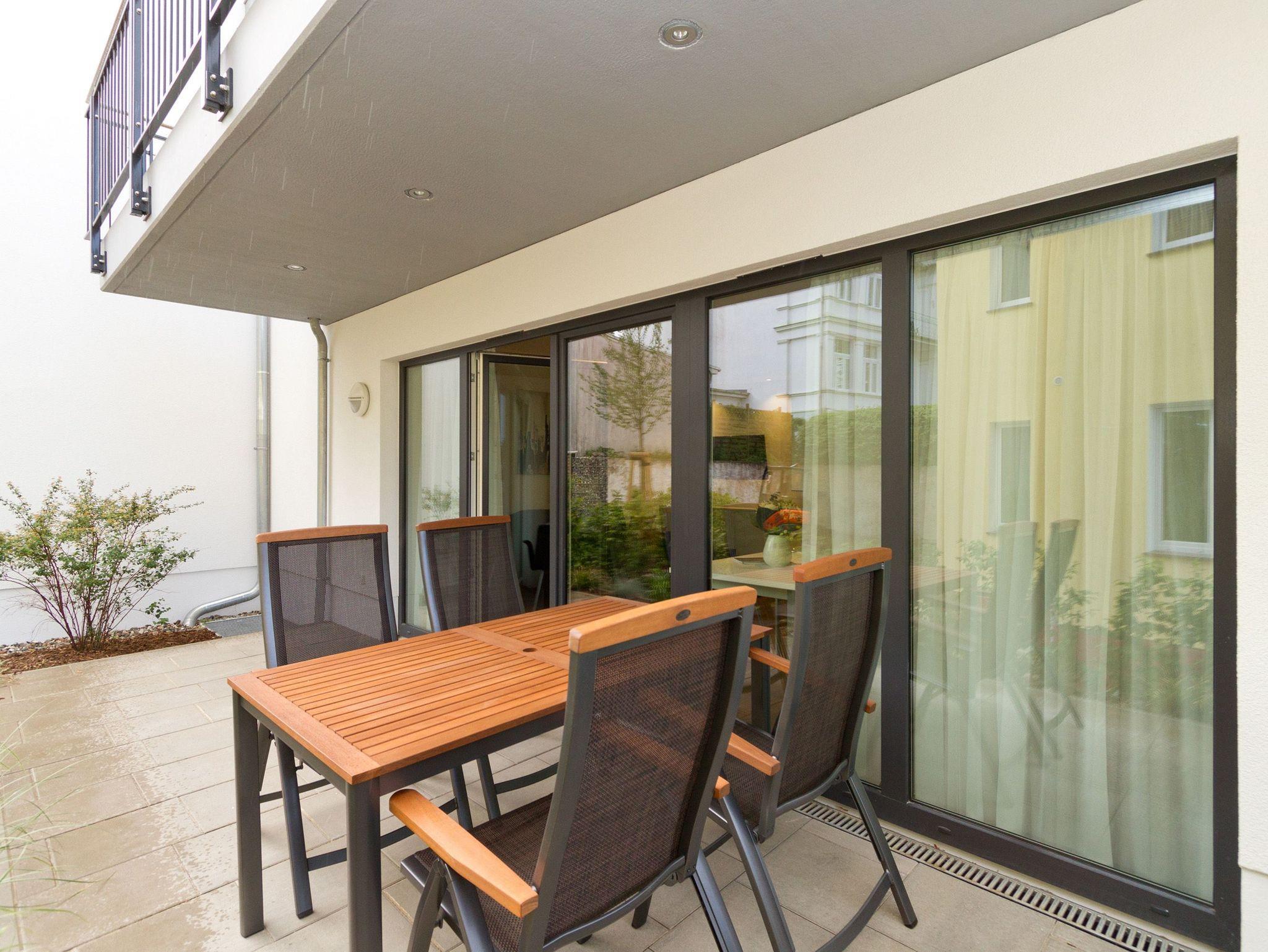 Schon morgens wird der Frühstückstisch auf der Süd-Ost-Terrasse von der Sonne verwöhnt. So wird schon der Genuss des ersten Kaffees oder Tees zum Urlaub. Von hier aus geht?s in die offene Küche eines rundum kuscheligen und modernen Feriendomizils. Auf 64 Quadratmetern ist aller erdenkliche Urlaubskomfort geboten. Gönnen Sie sich Ihre Auszeit in diesem kleinen Paradies mit bis zu vier Personen. Eine bequeme Sofalandschaft lädt zum Entspannen ein. Der Kamin ? von drei Seiten aus einsehbar ? ist ein absoluter Hingucker. Die Küche ist mit allen Geräten und hochwertigem Geschirr ausgestattet. Elektronik? Auch hier ist das Appartement Nummer 02 im Erdgeschoss des Quartier Ahlbeck auf dem neuesten Stand. Egal ob Flat-TV, Kaffeemaschine oder Waschmaschine ? diese Wohnung hat all das und noch vieles Schöne mehr. Die beiden Schlafzimmer sind hell und freundlich eingerichtet und die Doppelbetten (1,80 m x 2,00 m) verheißen nicht nur beim Schlafen Freude. Die großen Schränke bieten viel Platz zur Ablage. Das Badezimmer verfügt über eine Dusche, einen Waschtisch, WC, die erwähnte Waschmaschine und eine Finnische Sauna. Genießen Sie das Schwitzen und Abschalten, Entspannen und Energietanken an ungemütlichen Tagen oder Abenden. Für Ihren Komfort sind die Betten bei Ihrer Anreise bezogen und Handtücher liegen für Sie bereit. Ein Pkw-Stellplatz steht am Haus zur Verfügung.