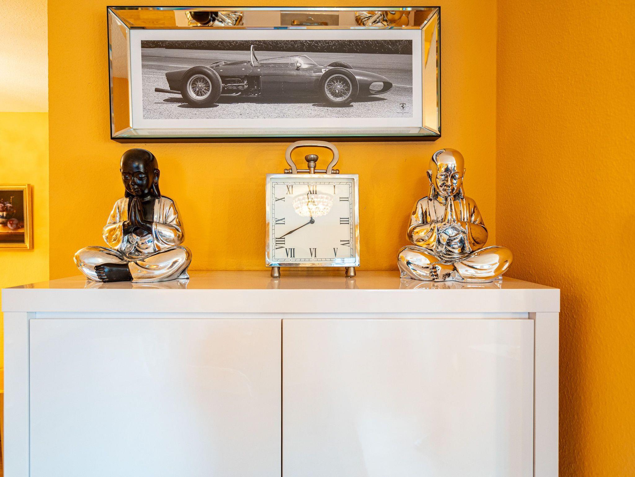 Die farbenfrohe 3-Raum-Ferienwohnung Inselstrand App. 3.14 verbindet Komfort mit Persönlichkeit. Auf rund 60 qm erwartet Sie ein lebendiges, individuell gestaltetes Ambiente, das sich deutlich von der üblichen Ferienwohnung abhebt. Zahlreiche Figuren, Kunstwerke und farbliche Akzente verleihen den Räumen einen unverwechselbaren Charakter ? hier wirkt nichts steril, sondern durchdacht und inspirierend. Der helle Wohnbereich mit gemütlicher Sitzgruppe, Flat-TV und Essplatz ist der zentrale Treffpunkt der Wohnung. Die offene, voll ausgestattete Küchenzeile lädt zum gemeinsamen Kochen ein ? ob für ein schnelles Frühstück oder ein entspanntes Abendessen. Zwei separate Schlafzimmer mit komfortablen Boxspringbetten (je 1,60 × 2,00 m) sorgen für erholsamen Schlaf. Vom ersten Schlafzimmer aus gelangen Sie direkt auf den Balkon, wo Sie den Tag bei frischer Ostseeluft beginnen oder ausklingen lassen können. Das modern geflieste Bad ist mit Dusche und WC ausgestattet. Bei Ihrer Anreise sind die Betten bereits bezogen, und eine Erstausstattung Handtücher liegt für Sie bereit ? so beginnt der Urlaub ohne Aufwand. Zur Wohnung gehört außerdem ein fester Tiefgaragenstellplatz (Nr. 3.14). Der Strand, die Promenade und die Seebrücke von Ahlbeck liegen nur wenige Schritte entfernt, ebenso Cafés, Restaurants und Einkaufsmöglichkeiten. Inselstrand App. 3.14 ist ideal für Gäste, die das Außergewöhnliche schätzen: farbenfroh, kunstvoll eingerichtet und dennoch funktional ? ein Ort zum Wohlfühlen mit individueller Note, nah am Meer.