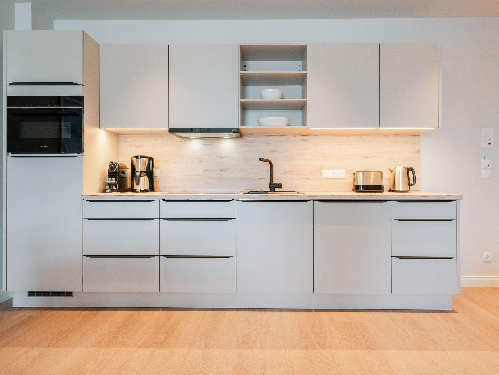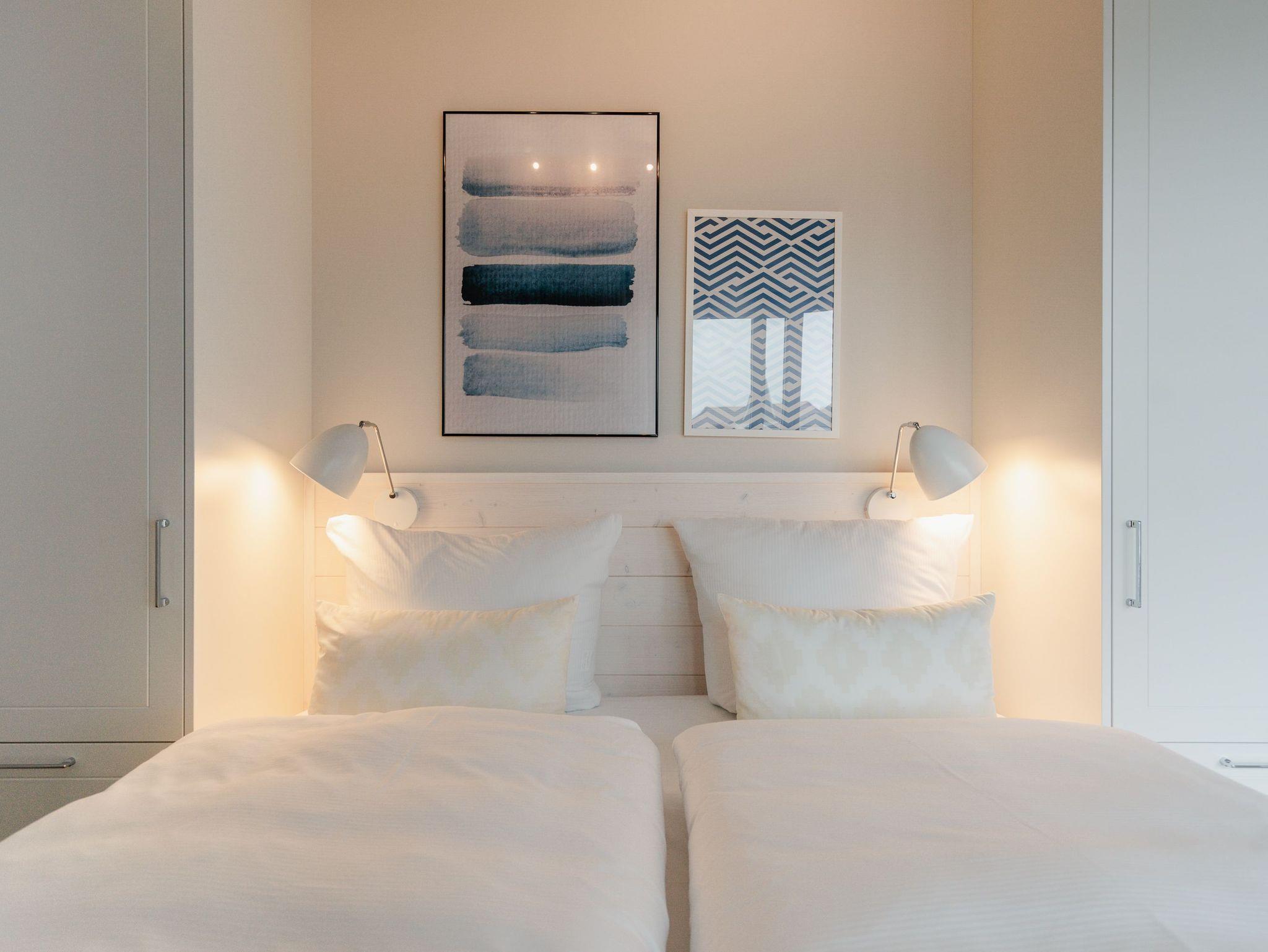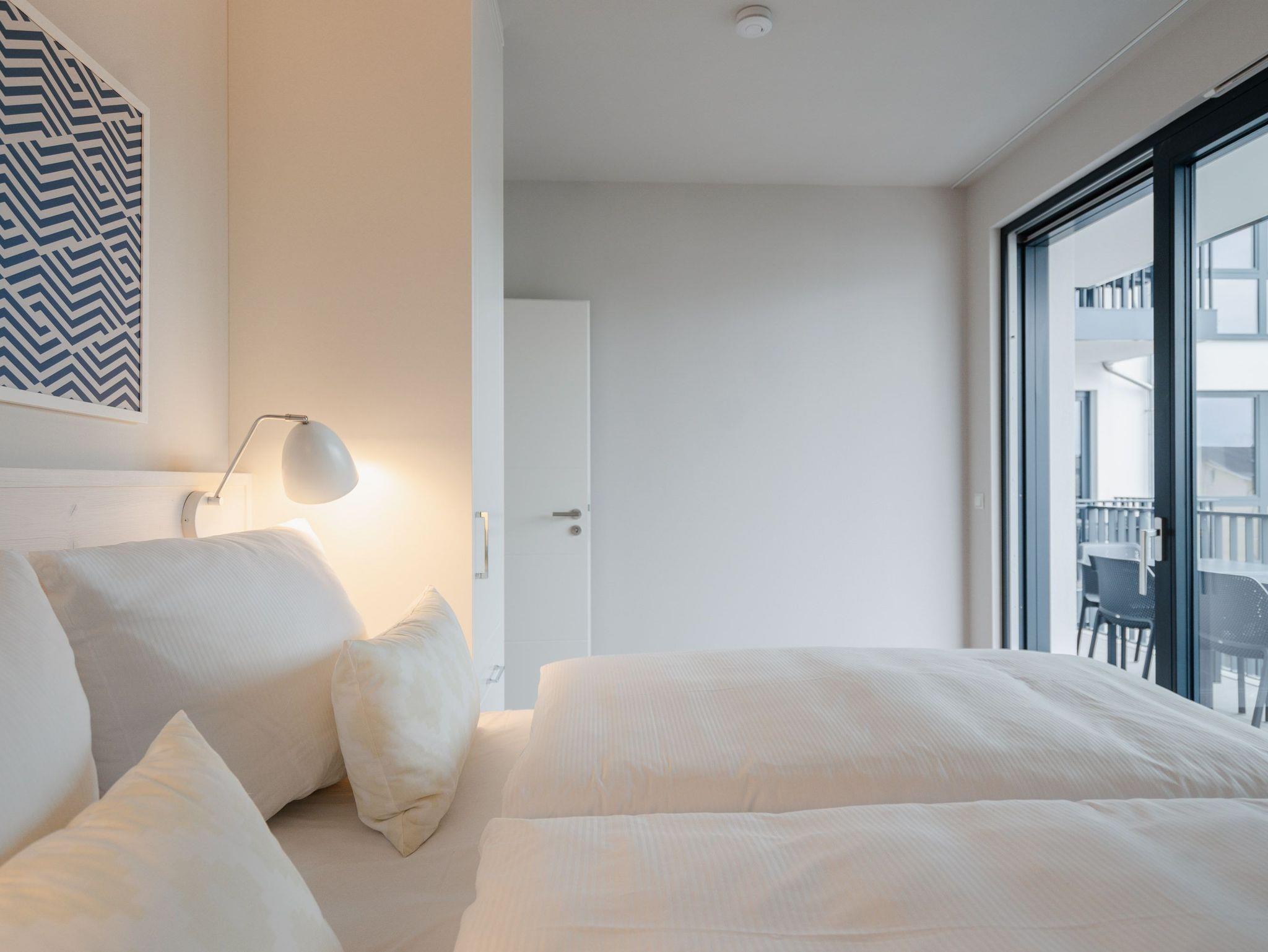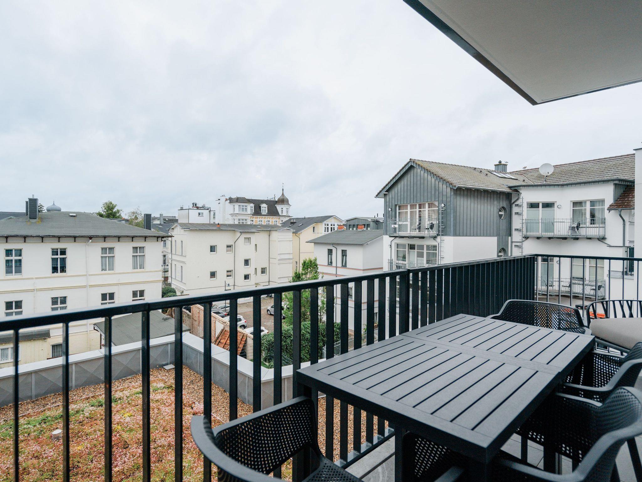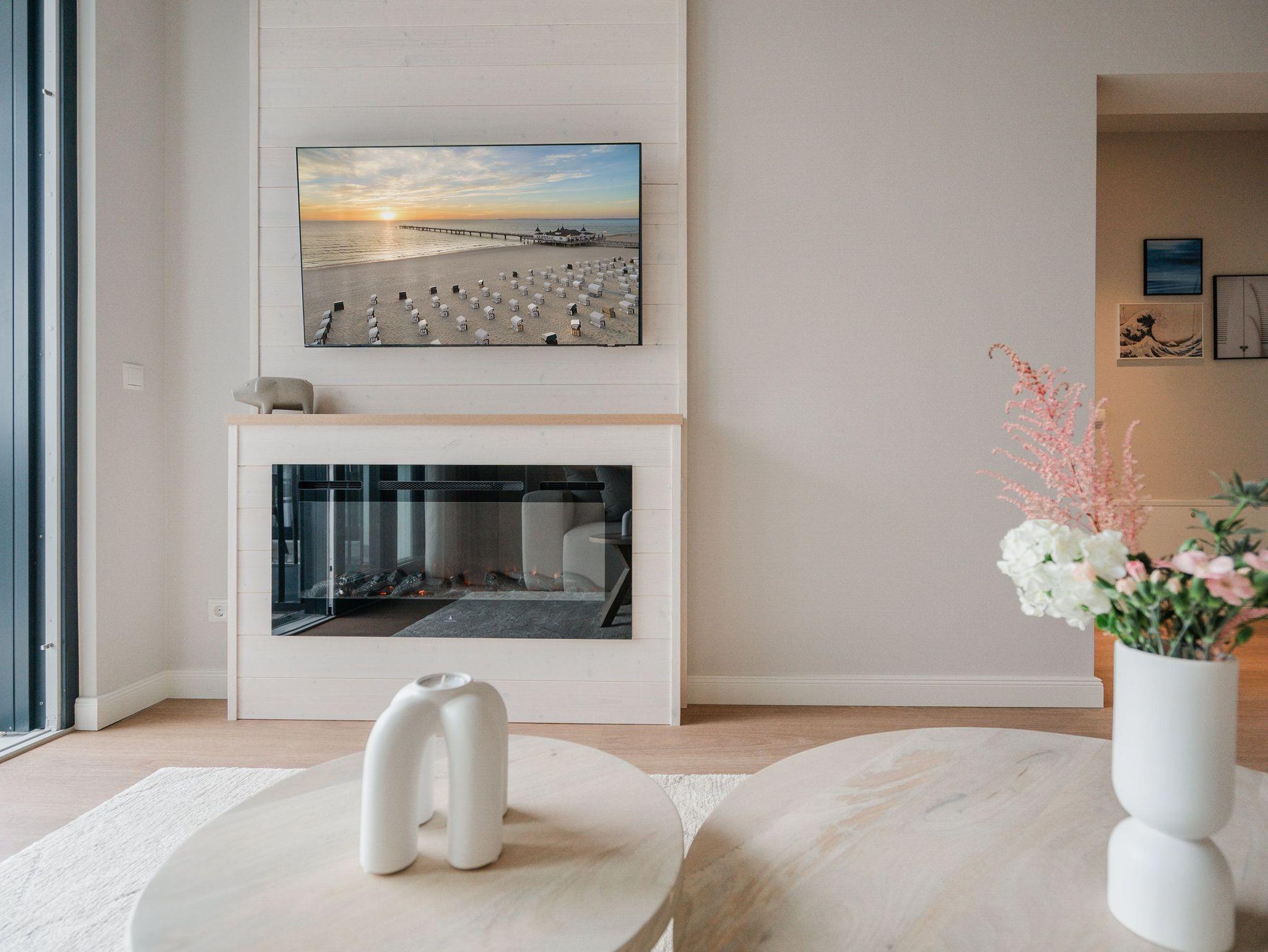 82 großzügige Quadratmeter warten im Appartement B 2.1 im Haus B der Strandterrasse im 2. Obergeschoss nur darauf, seinen bis zu 4 Gästen eine unvergessliche Auszeit direkt an der Ahlbecker Strandpromenade zu bescheren. Freuen Sie sich auf viel Platz, Komfort und Eleganz in diesem 3-Raum-Appartement. Es ist ein kleines Auszeitparadies mit jeder Menge Schick und Noblesse. Ein großes Wohn-Esszimmer ist der ideale Raum für gemeinsame Mußestunden ? auf dem stylischen und äußerst bequemen Sofa oder dem dazu gehörenden Sessel oder am schönen großen Esstisch. Ein Elektrokamin (ohne Wärmeabgabe) sorgt für Gemütlichkeit und um das Entertainment kümmert sich der 50 Zoll Flat-TV. Eine kleine Arbeitsstation ergänzt den Raum funktional. Viel Spaß beim Postkarten schreiben. Die zum Wohnzimmer hin offene Küchenzeile ist mit allen modernen Markengeräten ausgestattet. Ein Backofen, ein 4-Platten-Induktionsherd, ein Toaster, eine Geschirrspülmaschine, eine Kaffeemaschine sowie eine Nespresso-Kapselmaschine sind nicht nur Helfer beim Kochen und Zubereiten der Mahlzeiten, sie sorgen auch für Spaß in der Küche. Ist das Wetter schön, eignet sich der West-Balkon zum Essen unter freiem Himmel bestens. Das Meeresrauschen der nahen Ostsee gehört zum Service dazu. Zugang zum Balkon haben Sie sowohl vom Wohnzimmer als auch von einem der beiden Schlafzimmer. Hier können Sie also schon direkt nach dem Aufstehen einen tiefen Atemzug frische Ostseeluft genießen. Beide Schlafzimmer verfügen gleichermaßen über ein komfortables Boxspringdoppelbett (eines davon 1,80m x 2,00m), einen Kleiderschrank sowie einen weiteren Flat-TV (43 Zoll). Die Wohnung verfügt zudem über zwei moderne Duschbäder mit Waschtisch und WC. Eine kleine Wellnessoase in Form einer Infrarotsaunakabine wartet in einem der Bäder auf entspannungssehnsüchtige Wärmeliebhaber. Zum Appartement gehört in der Tiefgarage ein PKW-Stellplatz. Sie sehen, es ist alles bereit für eine erholsame Auszeit an der Ostsee.