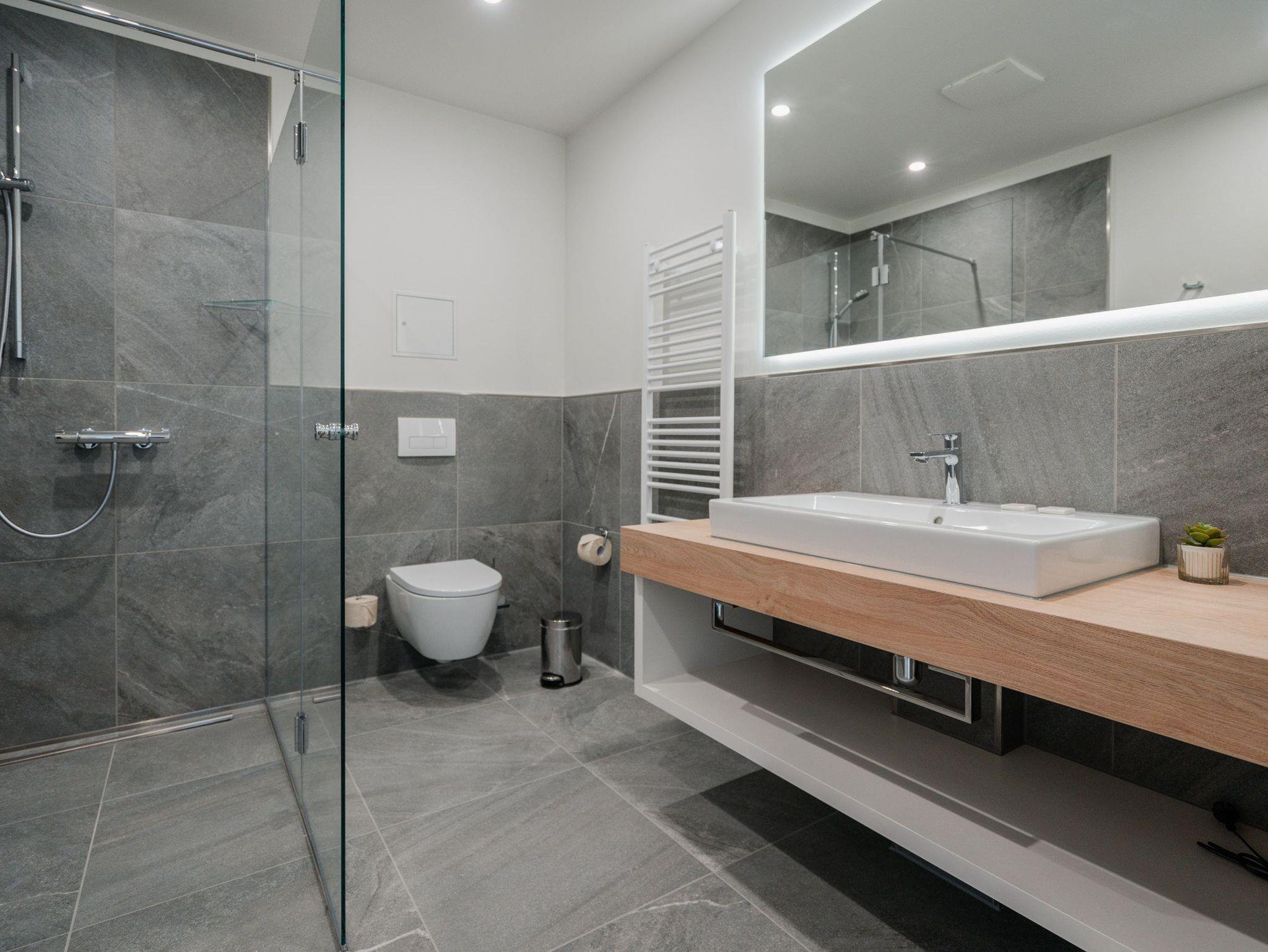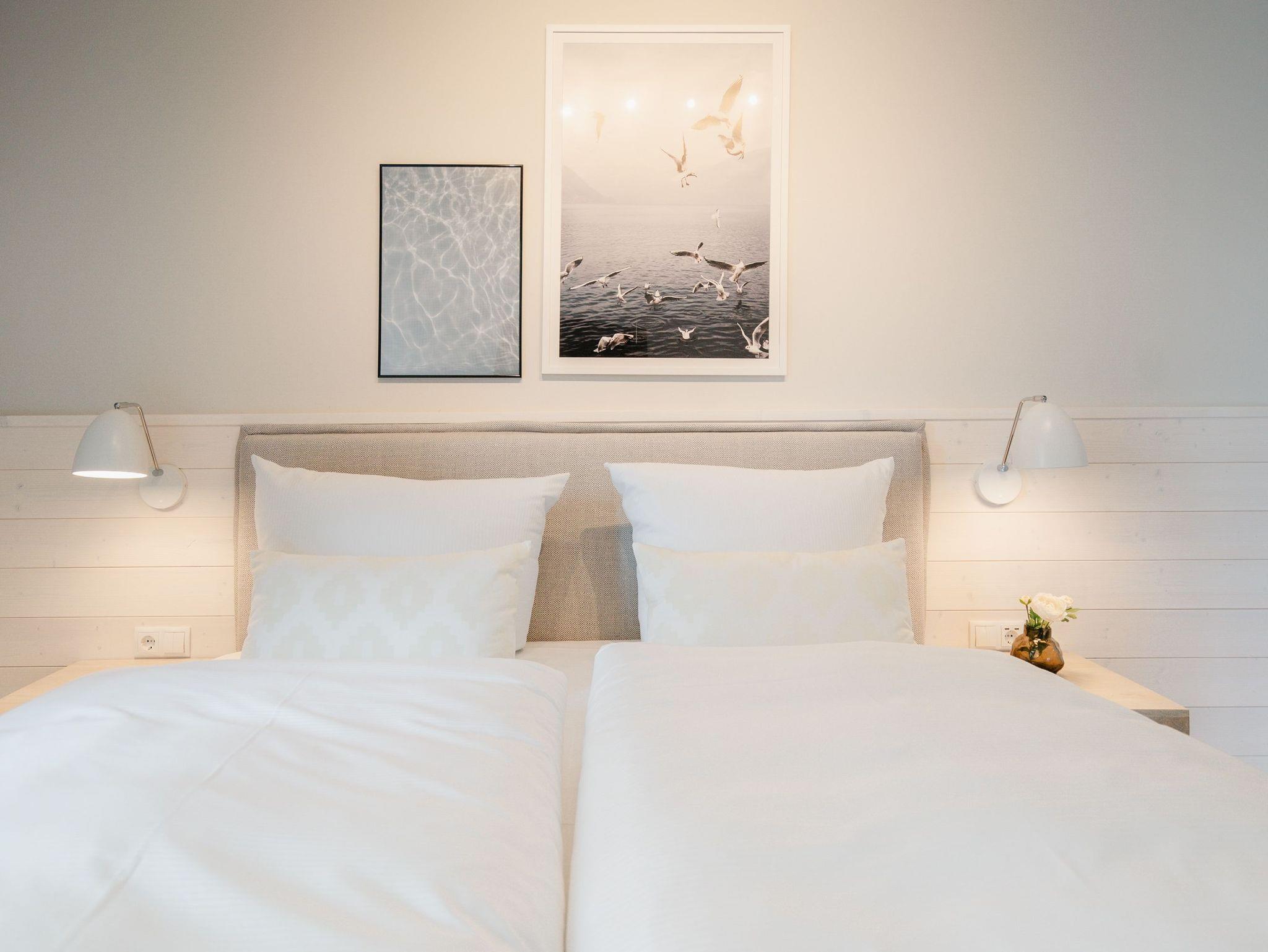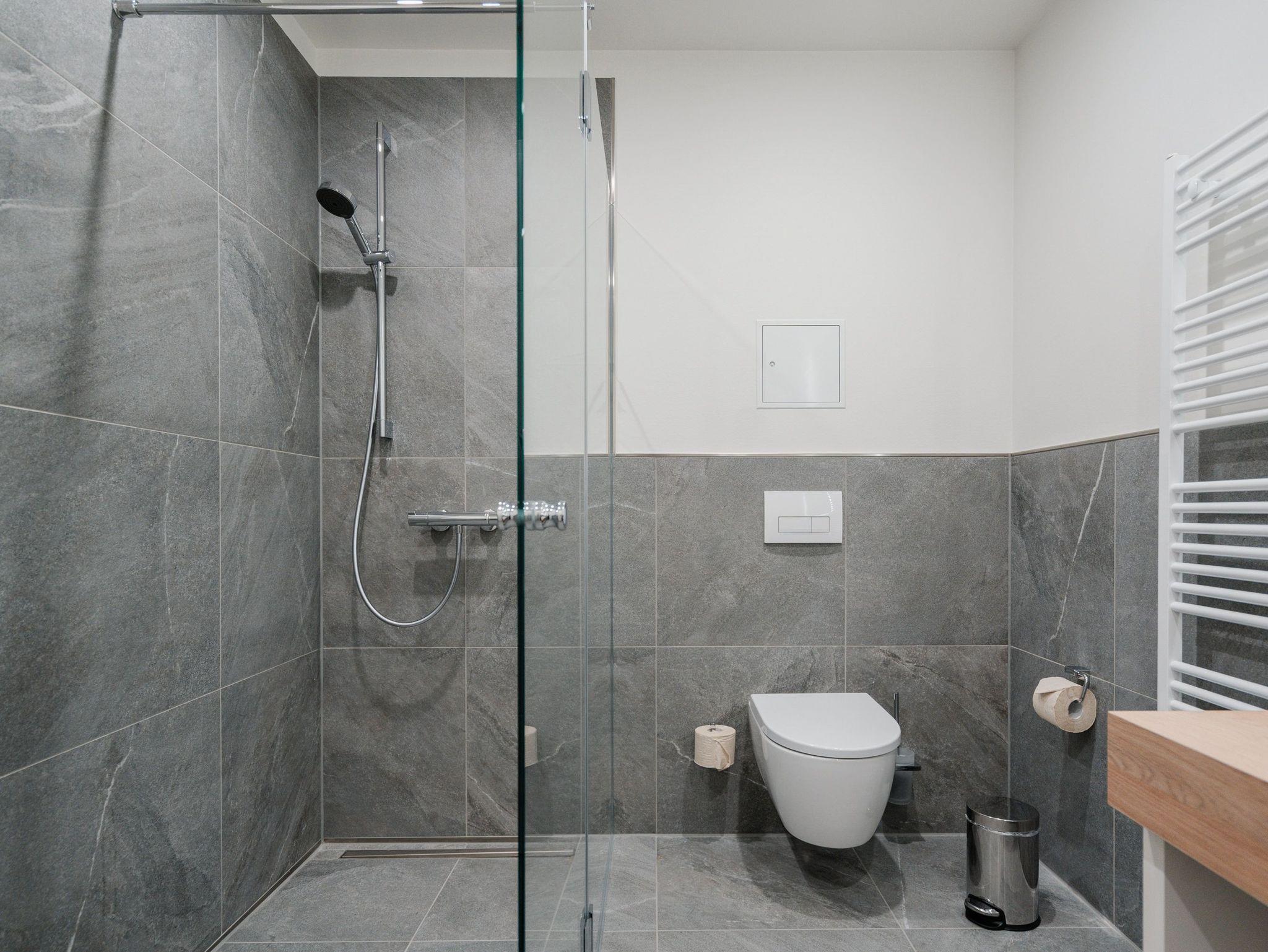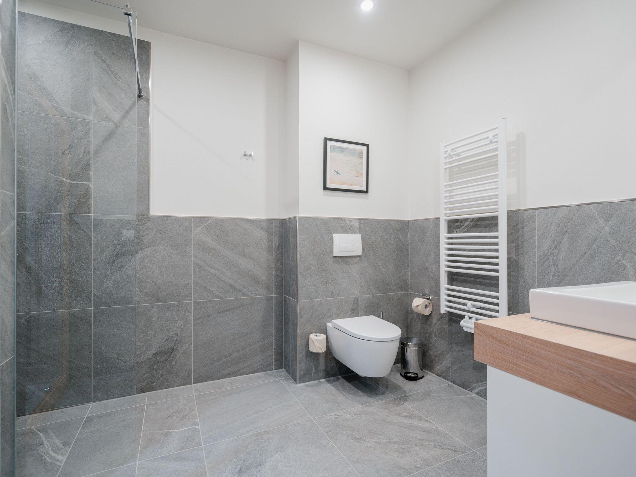 Die 2024 fertig gestellte Strandterrasse liegt direkt an der belebten Strandpromenade und bietet einen einzigartigen Ausblick auf die Grand Dame der historischen Seebrücken sowie die historische Konzertmuschel, einem beliebten Treffpunkt für Kunst und Kultur. Dahinter liegt die Ostsee ? ein Panorama, das zu den schönsten in den Kaiserbädern gehört. Es ist wie das Abtauchen in eine andere Zeit. In eine Zeit, in der man mit Stock, Sonnenschirm und Hut fürs ?Sehen und gesehen werden? über die Promenade schlenderte; aber auch in eine Zeit, in der ? damals wie heute ? Zeit einmal für eine kurze Weile keine Rolle spielt. Weil man angekommen ist im Loslassen, Entspannen und Genießen. Es ist dieser besondere Geruch nach Meeresluft und Freiheit, der in Erinnerung bleibt. Dazu die Bilder, die man mitnimmt. Von langen Strandspaziergängen, vom Lachen in fröhlich schäumenden Ostseewellen, von der Zeit in einem wunderschönen Urlaubsdomizil. Denn genau das ist die Strandterrasse mit ihren 56 modernen und exklusiven Ferienappartements direkt gegenüber der Ahlbecker Seebrücke. Die Ein-, Zwei- oder Dreizimmerwohnungen ? zwischen 40 und 70 Quadratmeter groß ? sind von einer Innenarchitektin gemeinsam mit unserem Erfahrungsschatz an Gästewünschen mit viel Liebe zum Detail und ganz individuell konzipiert worden. Entspannung und Wohlfühlen stehen an erster Stelle. Alles ist aufeinander abgestimmt und sorgt für eine gemütliche Atmosphäre. Wählen Sie zwischen einem Domizil in einem hellen, sandfarbenen Designkonzept oder einem Appartement mit anthrazitfarbenen Farbakzenten. Alle Appartements verfügen gleichermaßen über eine stilvolle und komfortable Einrichtung, die passgenau angefertigt worden ist, sowie über moderne Küchen und Bäder. Jedem Schlafzimmer ist ein eigenes Bad mit Dusche zugeordnet (außer App. B4.5). Die Appartements besitzen fast alle einen Balkon ? viele schauen sogar zur Ostsee hinaus. Die meisten Feriendomizile haben einen Elektrokamin und Infrarotsaunen. Im Erdgeschoss befindet sich ein separater Gemeinschaftsraum für Fahrräder. Außerdem besteht die Möglichkeit, im Gemeinschaftswaschraum 2 Waschmaschinen [&] Trockner zu nutzen. Ergänzt wird das Angebot durch eine Gemeinschaftssauna, die täglich von 11:00 bis 22:00 Uhr nutzbar ist. In der Tiefgarage (Einfahrtshöhe 2,03 Meter) steht für jede Wohnung 1 Pkw-Stellplatz zur Verfügung. Ist alles zur Zufriedenheit untergebracht? Dann kann der Urlaub ja beginnen. Und beim Blick vom Balkon über die Ostsee treffen sich zum Sonnenaufgang das Heute und das Damals. Gelassenheit legt sich beim Gang hinunter an den Strand auf die Seele. Jetzt darf die Zeit stehenbleiben.