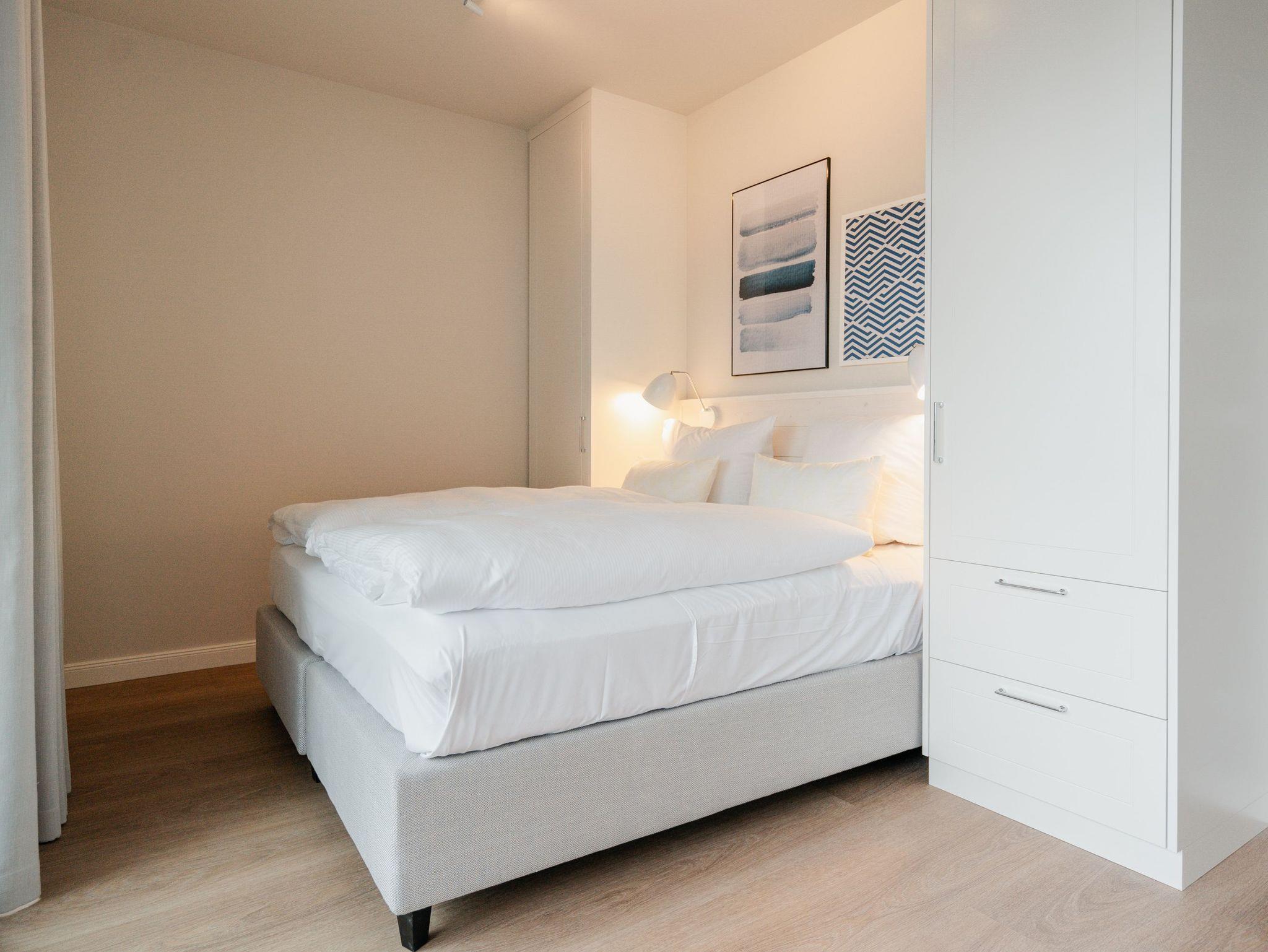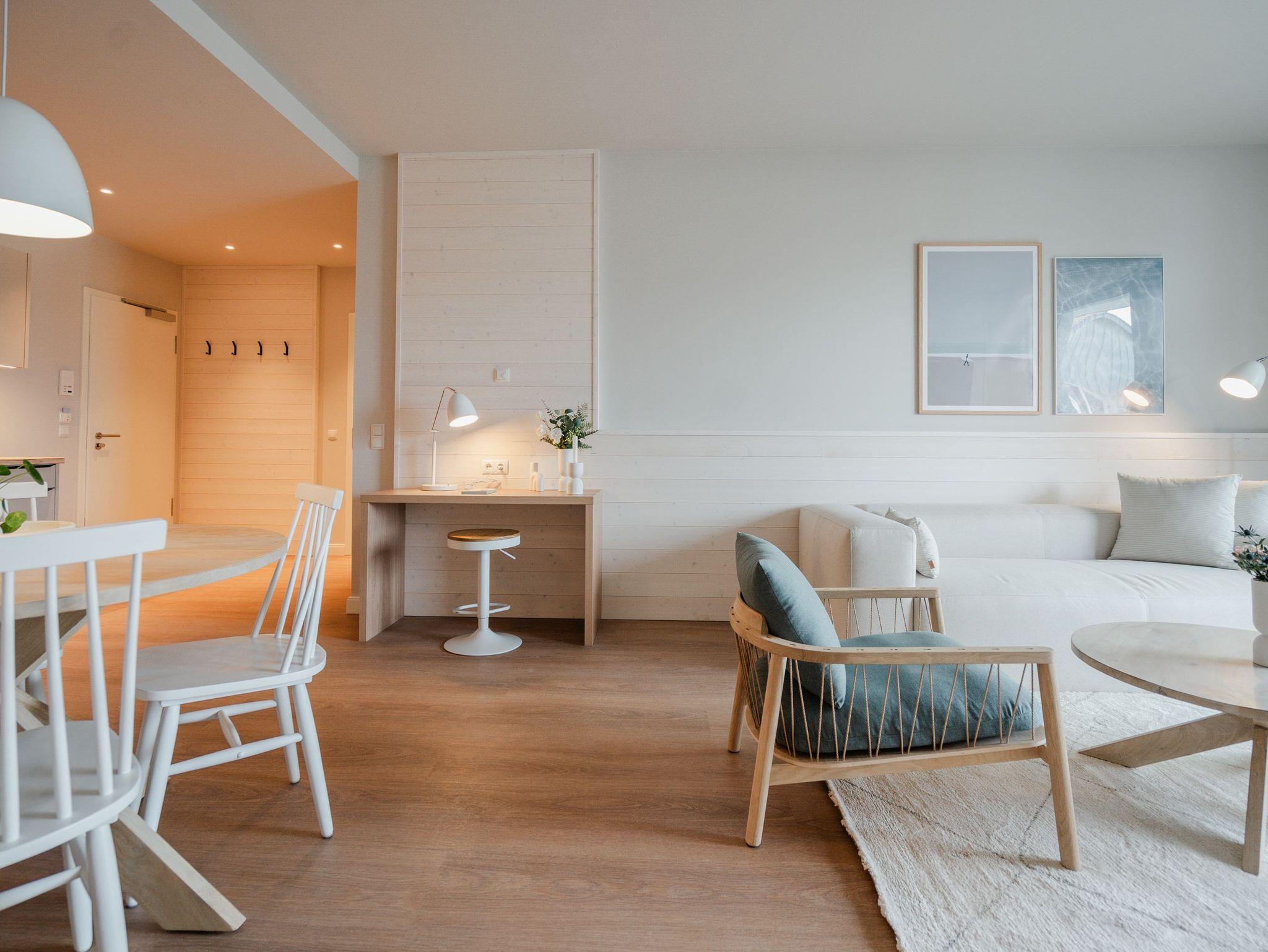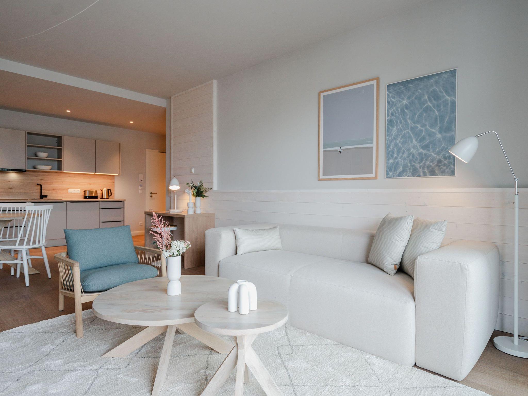 Die 2024 fertig gestellte Strandterrasse liegt direkt an der belebten Strandpromenade und bietet einen einzigartigen Ausblick auf die Grand Dame der historischen Seebrücken sowie die historische Konzertmuschel, einem beliebten Treffpunkt für Kunst und Kultur. Dahinter liegt die Ostsee ? ein Panorama, das zu den schönsten in den Kaiserbädern gehört. Es ist wie das Abtauchen in eine andere Zeit. In eine Zeit, in der man mit Stock, Sonnenschirm und Hut fürs „Sehen und gesehen werden“ über die Promenade schlenderte; aber auch in eine Zeit, in der ? damals wie heute ? Zeit einmal für eine kurze Weile keine Rolle spielt. Weil man angekommen ist im Loslassen, Entspannen und Genießen. Es ist dieser besondere Geruch nach Meeresluft und Freiheit, der in Erinnerung bleibt. Dazu die Bilder, die man mitnimmt. Von langen Strandspaziergängen, vom Lachen in fröhlich schäumenden Ostseewellen, von der Zeit in einem wunderschönen Urlaubsdomizil. Denn genau das ist die Strandterrasse mit ihren 56 modernen und exklusiven Ferienappartements direkt gegenüber der Ahlbecker Seebrücke. Die Ein-, Zwei- oder Dreizimmerwohnungen ? zwischen 40 und 70 Quadratmeter groß ? sind von einer Innenarchitektin gemeinsam mit unserem Erfahrungsschatz an Gästewünschen mit viel Liebe zum Detail und ganz individuell konzipiert worden. Entspannung und Wohlfühlen stehen an erster Stelle. Alles ist aufeinander abgestimmt und sorgt für eine gemütliche Atmosphäre. Wählen Sie zwischen einem Domizil in einem hellen, sandfarbenen Designkonzept oder einem Appartement mit anthrazitfarbenen Farbakzenten. Alle Appartements verfügen gleichermaßen über eine stilvolle und komfortable Einrichtung, die passgenau angefertigt worden ist, sowie über moderne Küchen und Bäder. Jedem Schlafzimmer ist ein eigenes Bad mit Dusche zugeordnet (außer App. B4.5). Die Appartements besitzen fast alle einen Balkon ? viele schauen sogar zur Ostsee hinaus. Die meisten Feriendomizile haben einen Elektrokamin und Infrarotsaunen. Im Erdgeschoss befindet sich ein separater Gemeinschaftsraum für Fahrräder. Außerdem besteht die Möglichkeit, im Gemeinschaftswaschraum 2 Waschmaschinen [&] Trockner zu nutzen. Ergänzt wird das Angebot durch eine Gemeinschaftssauna, die täglich von 11:00 bis 22:00 Uhr nutzbar ist. In der Tiefgarage (Einfahrtshöhe 2,03 Meter) steht für jede Wohnung 1 Pkw-Stellplatz zur Verfügung. Ist alles zur Zufriedenheit untergebracht? Dann kann der Urlaub ja beginnen. Und beim Blick vom Balkon über die Ostsee treffen sich zum Sonnenaufgang das Heute und das Damals. Gelassenheit legt sich beim Gang hinunter an den Strand auf die Seele. Jetzt darf die Zeit stehenbleiben.