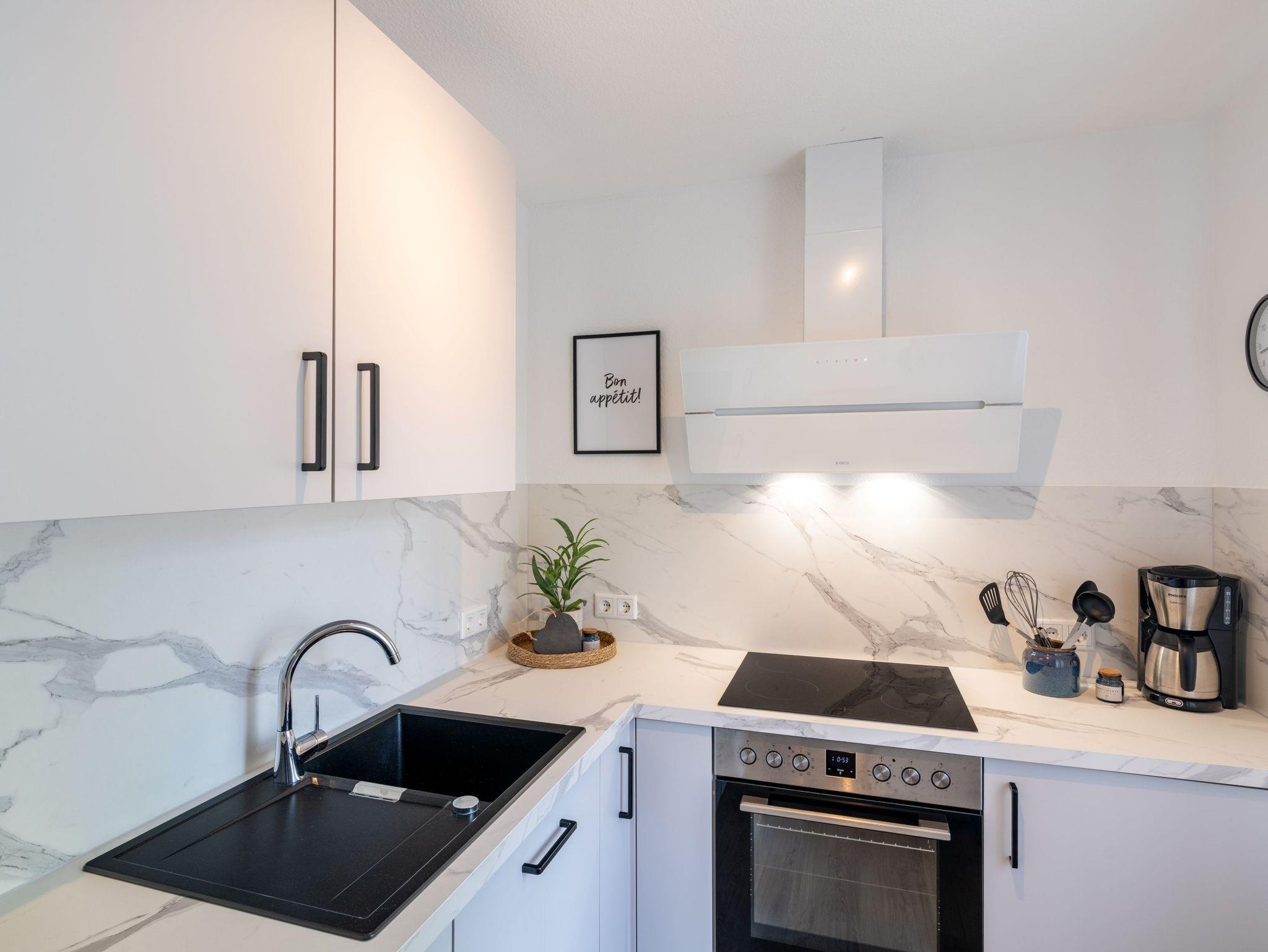 Die 35 qm große und neu renovierte Wohnung befindet sich im ersten Obergeschoss und ist für zwei Personen ausgestattet. Die Wohnung verfügt über ein Wohnzimmer mit Doppelbett, Sitzecke und Essplatz. Die separate Küche ist Kühlschrank, Spülmaschine, Herd u.v.m. ausgestattet. Bad mit Dusche und WC.