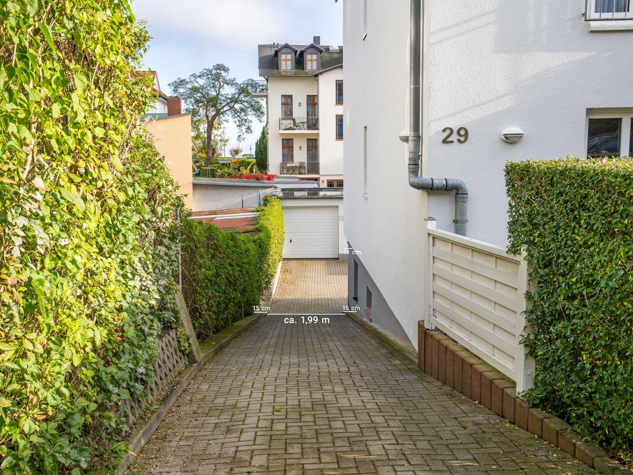 Parkplatz: Der Parkplatz befindet sich in ca. 100 m Entfernung auf dem Hof der Goethestraße 29. Achtung! Eine enge Zufahrt gemäß Abbildung ist zu beachten.