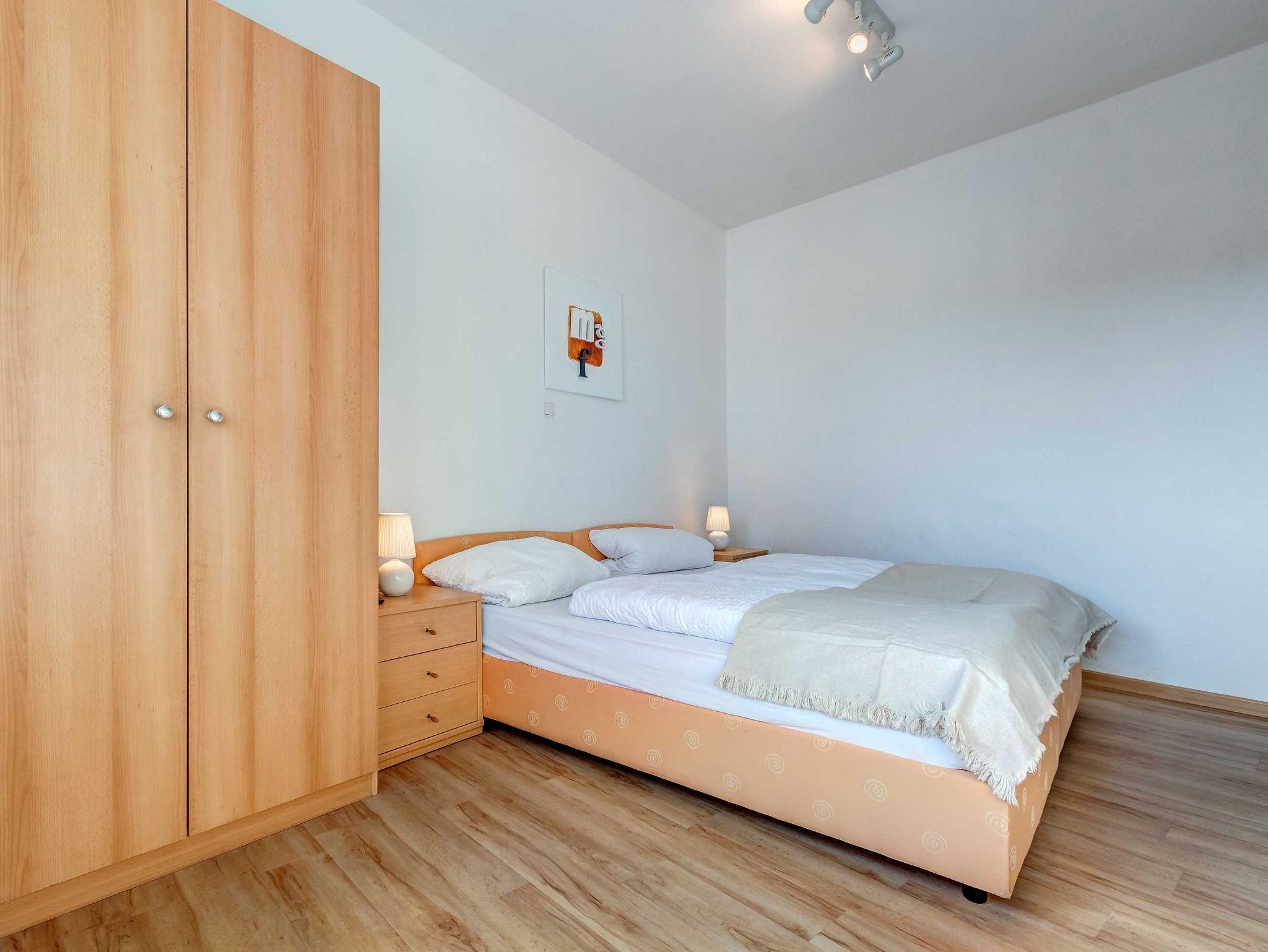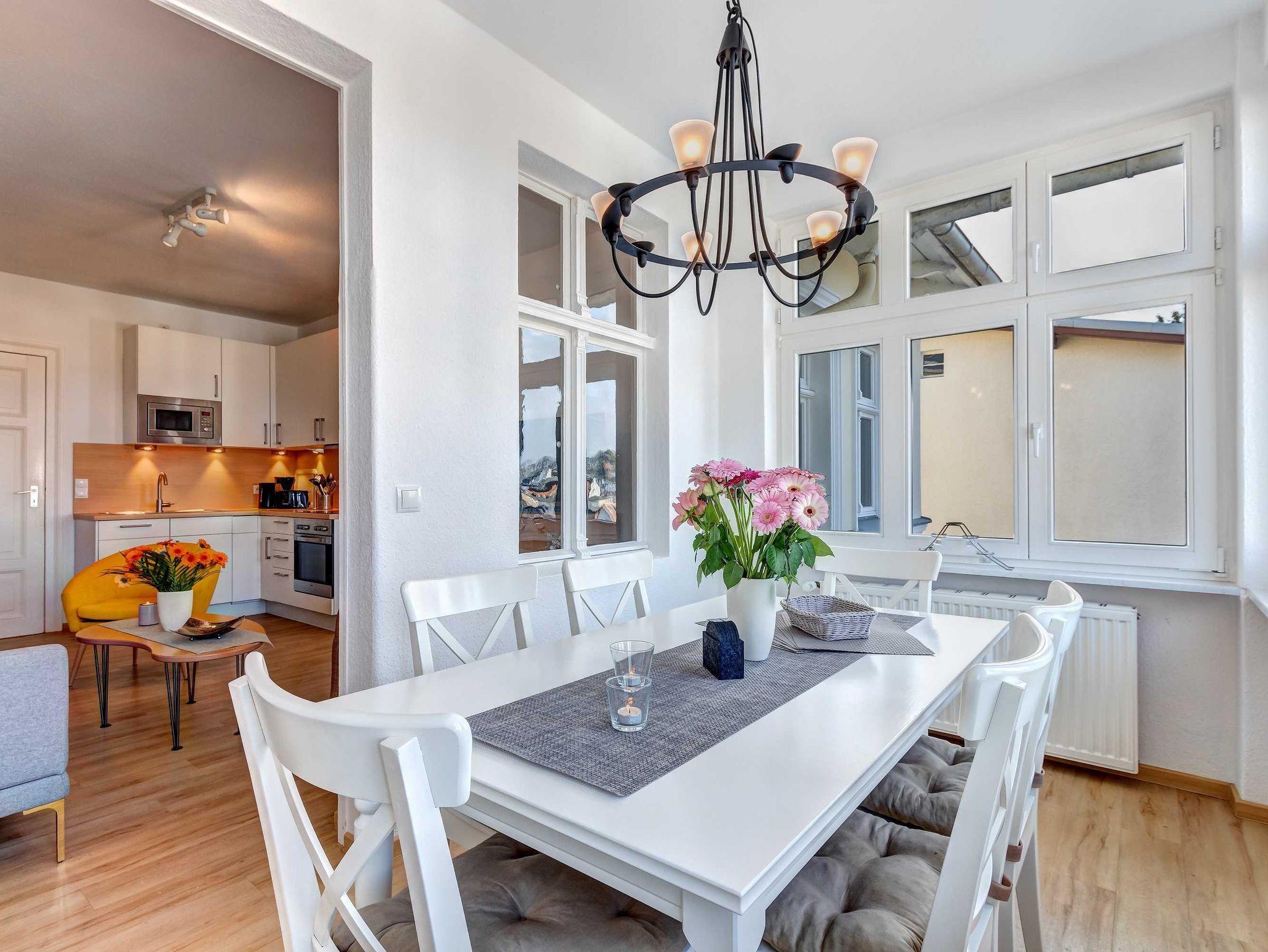 Strandnah! Ruhige Lage! Großer Balkon! Schöner Weitblick aus der verglasten Veranda! Diese großzügige, 2014 renovierte 4-Raum-Wohnung, hat 3 Schlafzimmer und ist für bis zu 6 Personen (2 Doppelbetten 1,80m breit, 1 Doppelbett 1,60m breit). Im Wohnzimmer befinden sich eine Couch, ein Flachbildfernseher und eine offene Küche mit amerikanischem Kühlschrank. Der Essplatz befindet sich in der verglasten Veranda mit schönem Weitblick. Die Küche ist mit einem Backofen, Kaffeemaschine, Wasserkocher, Mikrowelle, Geschirrspüler und Toaster ausgestattet. Die 2 Bäder sind mit Badewanne und Duche bzw. nur Dusche ausgestattet, wobei 1 Bad En-Suite ist! Die Ferienwohnung befindet sich in der 1. Etage. Zur Wohnung gehört ein kostenfreier Pkw-Stellplatz auf dem Grundstück.
