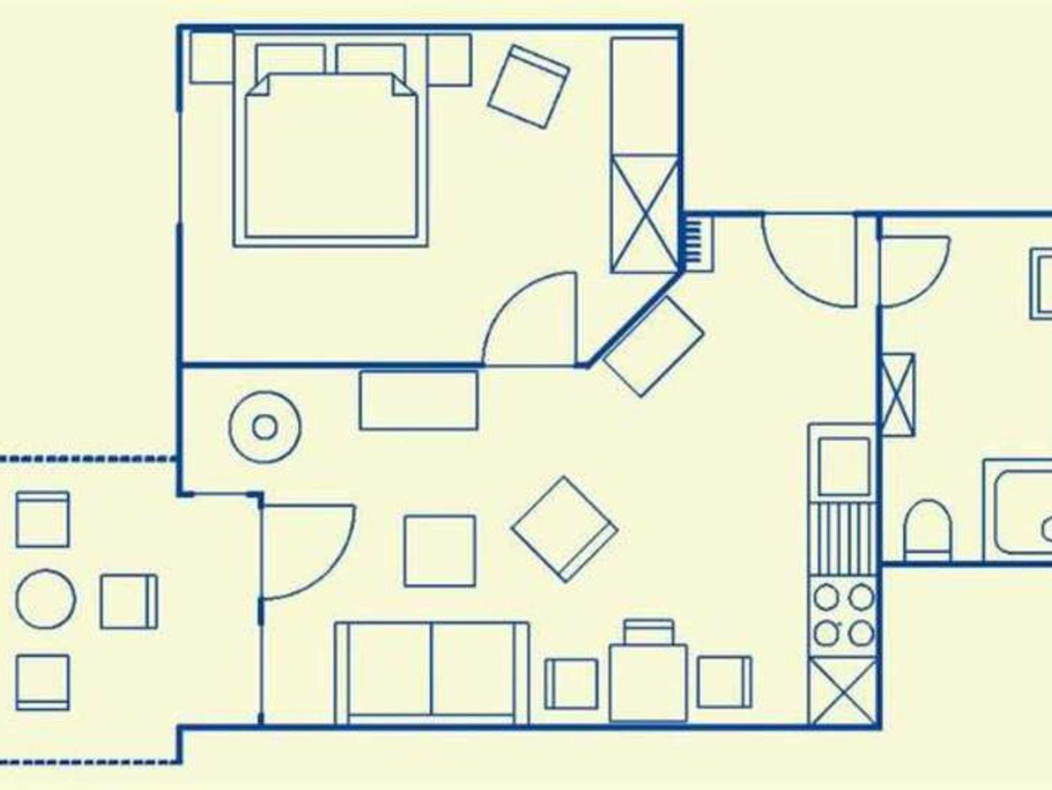 1 Schlafraum, 1 Wohnraum, 1 Küchenzeile, 1 Badezimmer mit Dusche