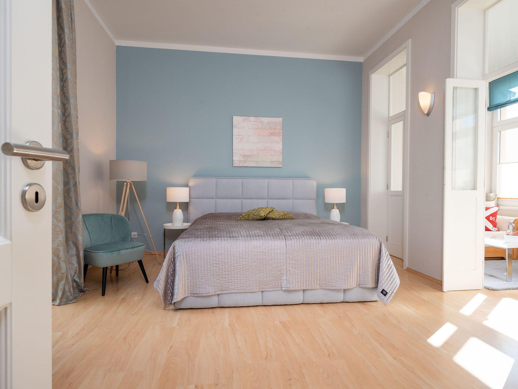• Im Schlafzimmer erwartet Sie ein gemütliches Doppelbett, ein großer Kleiderschrank, eine Kommode und ein TV für entspannte Abende.
