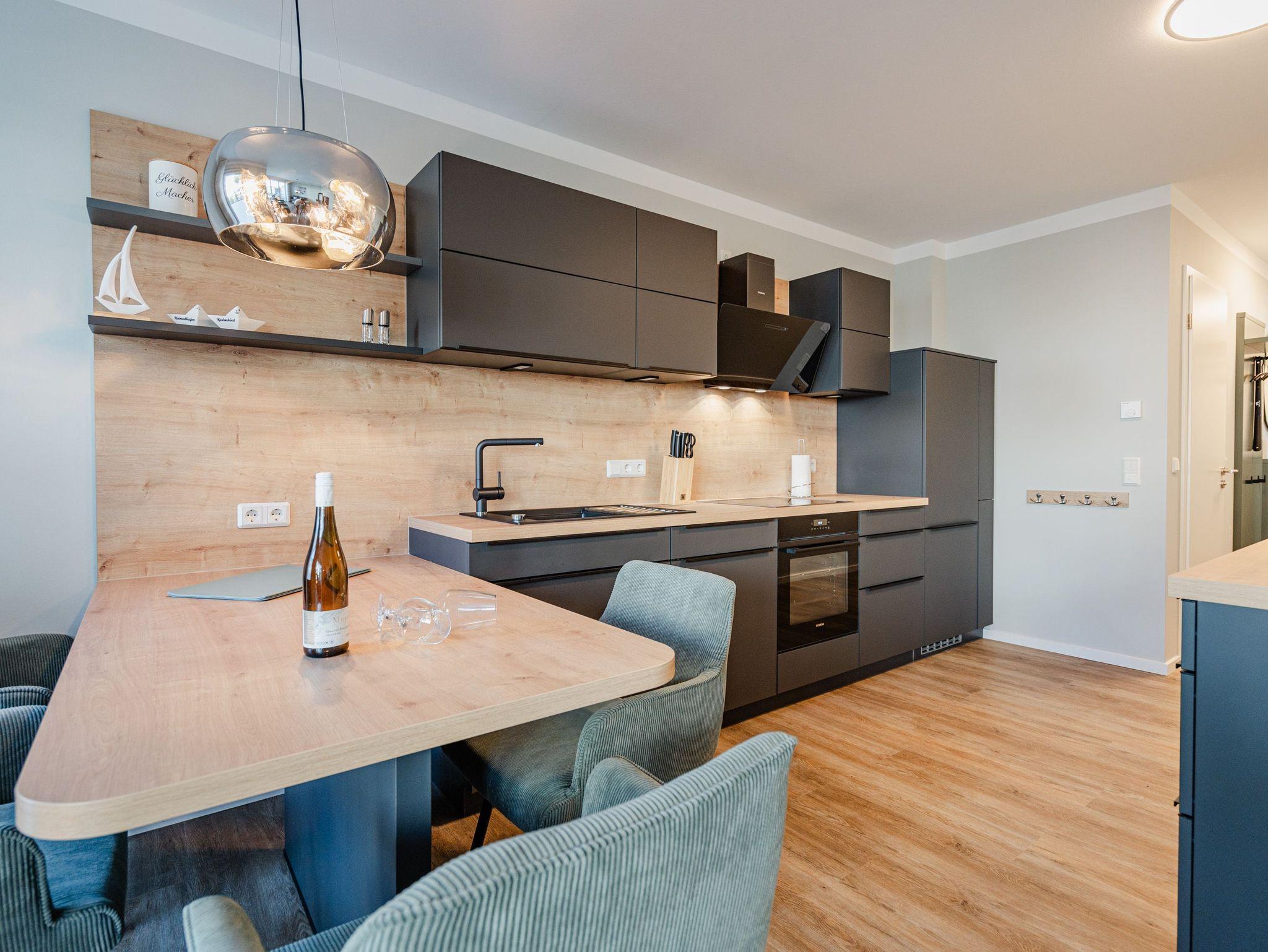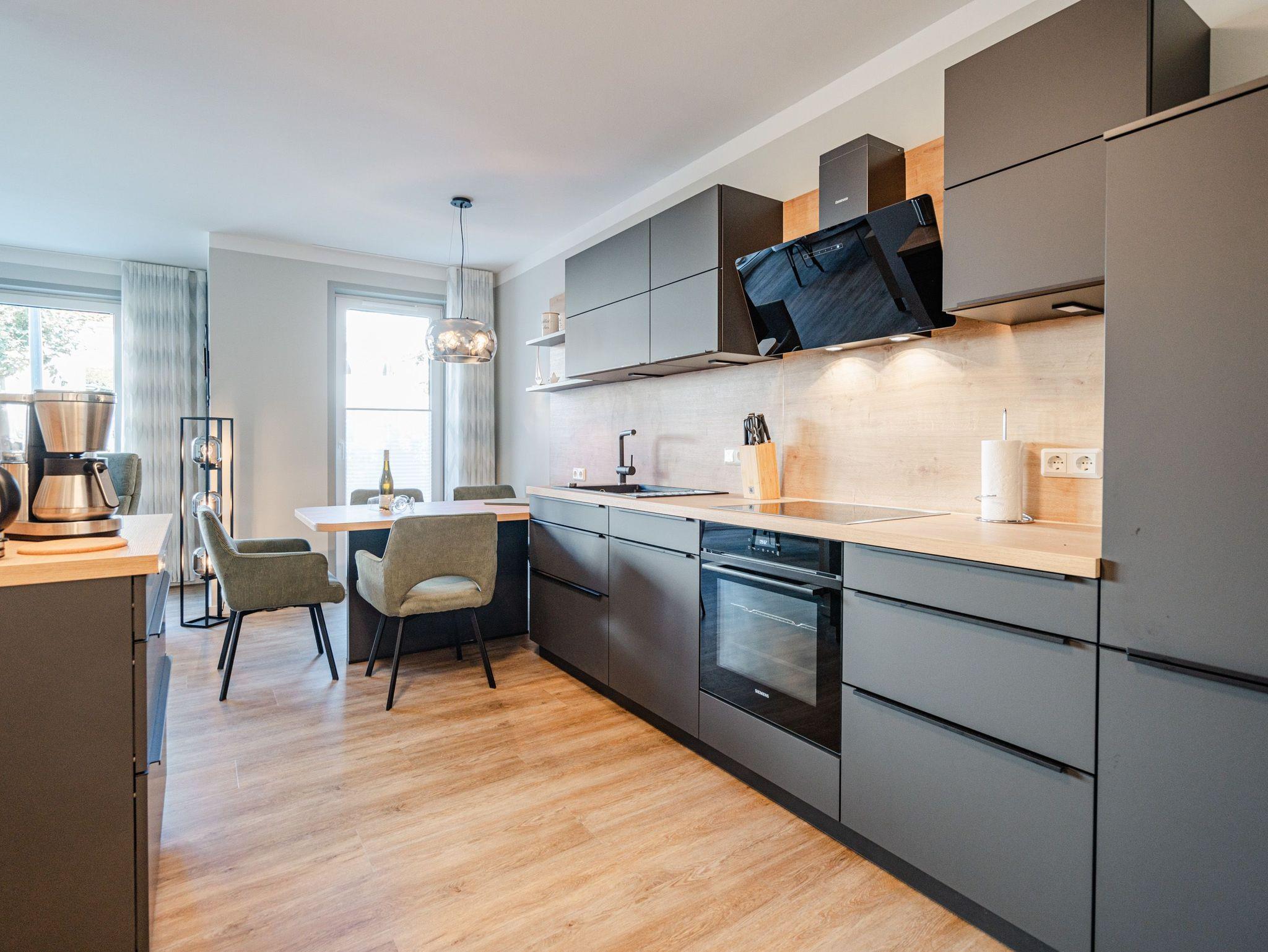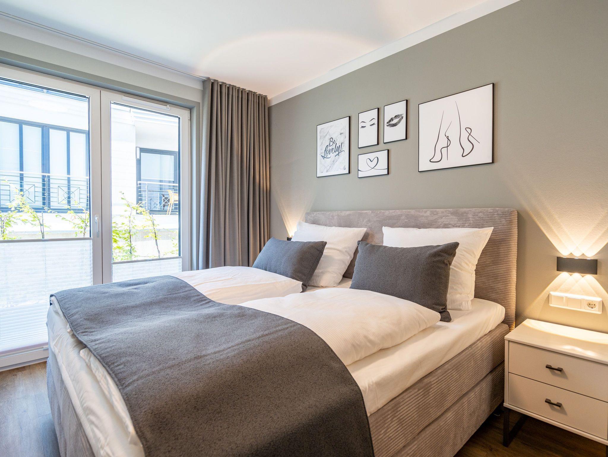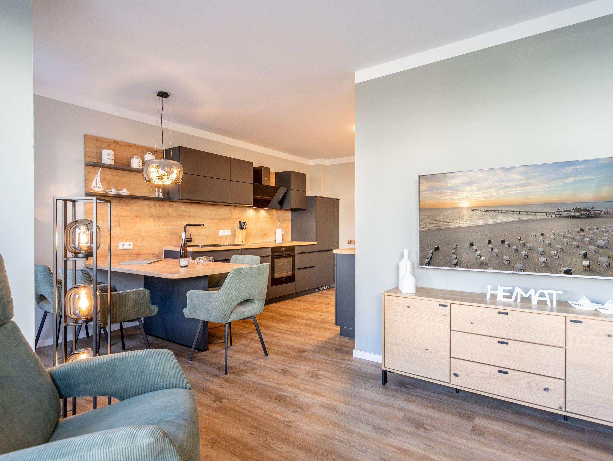 Herzlich willkommen in unserem 3-Raum-Appartement N° 1 im Erdgeschoss des Quartier 6! Auf 72 Quadratmetern bietet dieses gemütliche Domizil Platz für bis zu 4 Personen. Der offene Wohnbereich lädt mit einer voll ausgestatteten Küchenzeile, einem Essplatz für 4 Personen und einer gemütlichen Sitzgruppe zum Verweilen ein. Ein Flat-TV mit 50 Zoll und ein Gas-Kamin mit Fernbedienung sorgen für entspannte Abende. Von hier aus haben Sie direkten Zugang zur Nord-West-Terrasse, die mit Gartenmöbeln und einem Strandkorb ausgestattet ist. Die beiden Schlafzimmer sind mit komfortablen Boxspringdoppelbetten (1,80 m x 2,00 m), Kleiderschränken und weiteren Flat-TVs ausgestattet und garantieren erholsamen Schlaf. Für Ihr Wohlbefinden sorgen zudem zwei moderne Duschbäder, eines davon mit einer Finnischen Sauna ? ideal für entspannte Stunden nach einem ereignisreichen Tag. Zu Ihrer Unterkunft gehört ein PKW-Stellplatz in der Tiefgarage sowie ein eigener Abstellraum für Fahrräder. Selbstverständlich steht Ihnen kostenfreies WLAN zur Verfügung, sodass Sie auch im Urlaub stets verbunden bleiben können. Wir freuen uns darauf, Sie in unserem Appartement willkommen zu heißen!